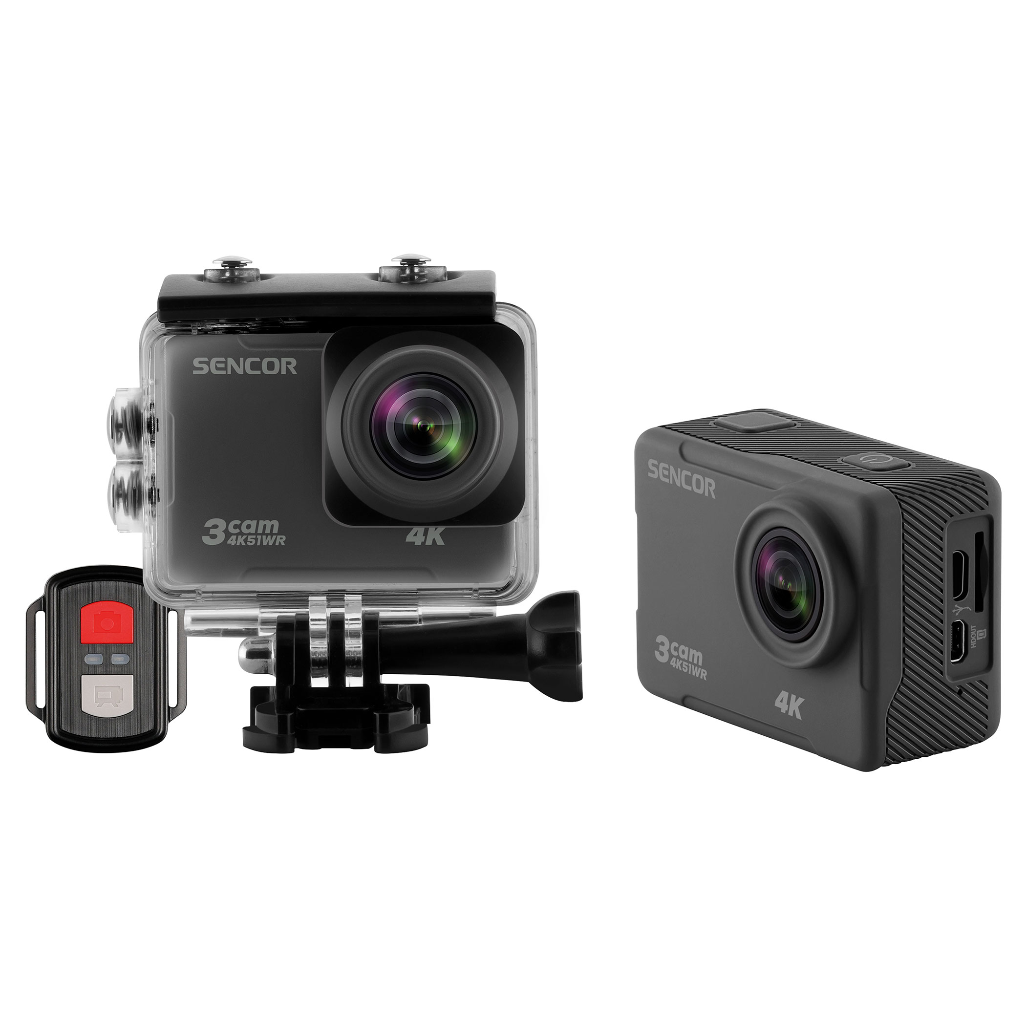 Špičková kamera 3CAM 4K51WR dokáže natáčet videa ve vysokém rozlišení až 4K (3840x2160) při 30 snímcích za sekundu pomocí výkonného čipsetu HISILICON Hi3559. Ostrého a vyváženého obrazu docílí pomocí CMOS SONY 458 senzoru a 6vrstvé skleněné čočky. Pro dokonalý záznam můžete volit mezi kodeky H.265 (HEVC) a H.264 (AVC). Voděodolné pouzdro, se kterým můžete natáčet pod vodou až do 30 metrů, lze využít pro všechny aktivity ve vodě nebo při nepříznivém počasí. Na 2" displeji si můžete nastavit svůj ideální mód natáčení nebo si prohlížet již pořízené videa či fotografie. Kamera disponuje WiFi modulem pro snadné ovládání a ukládání videí a fotek z kamery do Vašeho mobilního telefonu či tabletu a pro ovládání kamery pomocí dálkového ovládání , které je součástí balení. V balení nechybí ani uchycení na helmu nebo za opasek a spousta dalšího příslušenství, které Vám umožní si kameru uchytit, jak potřebujete v dané situaci.