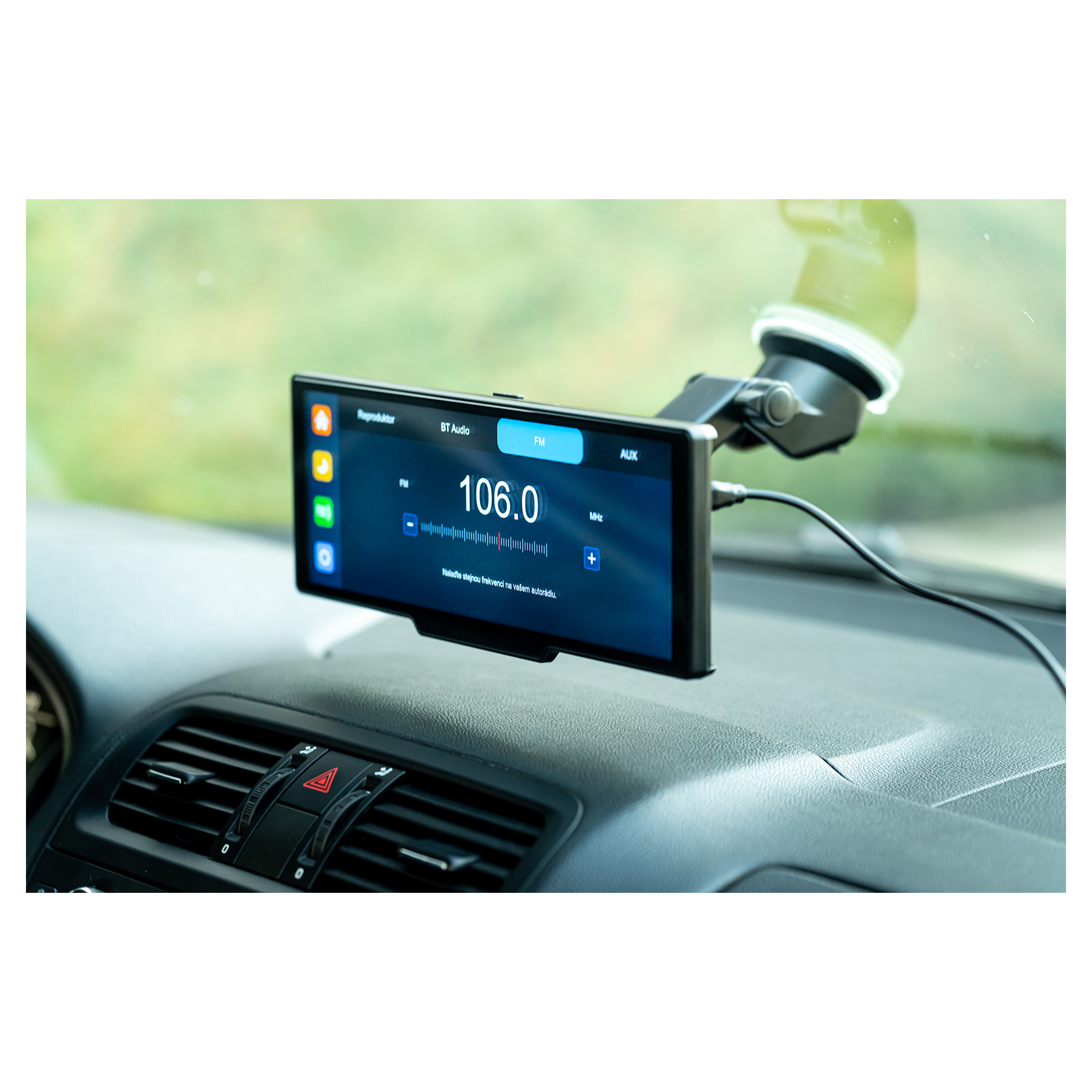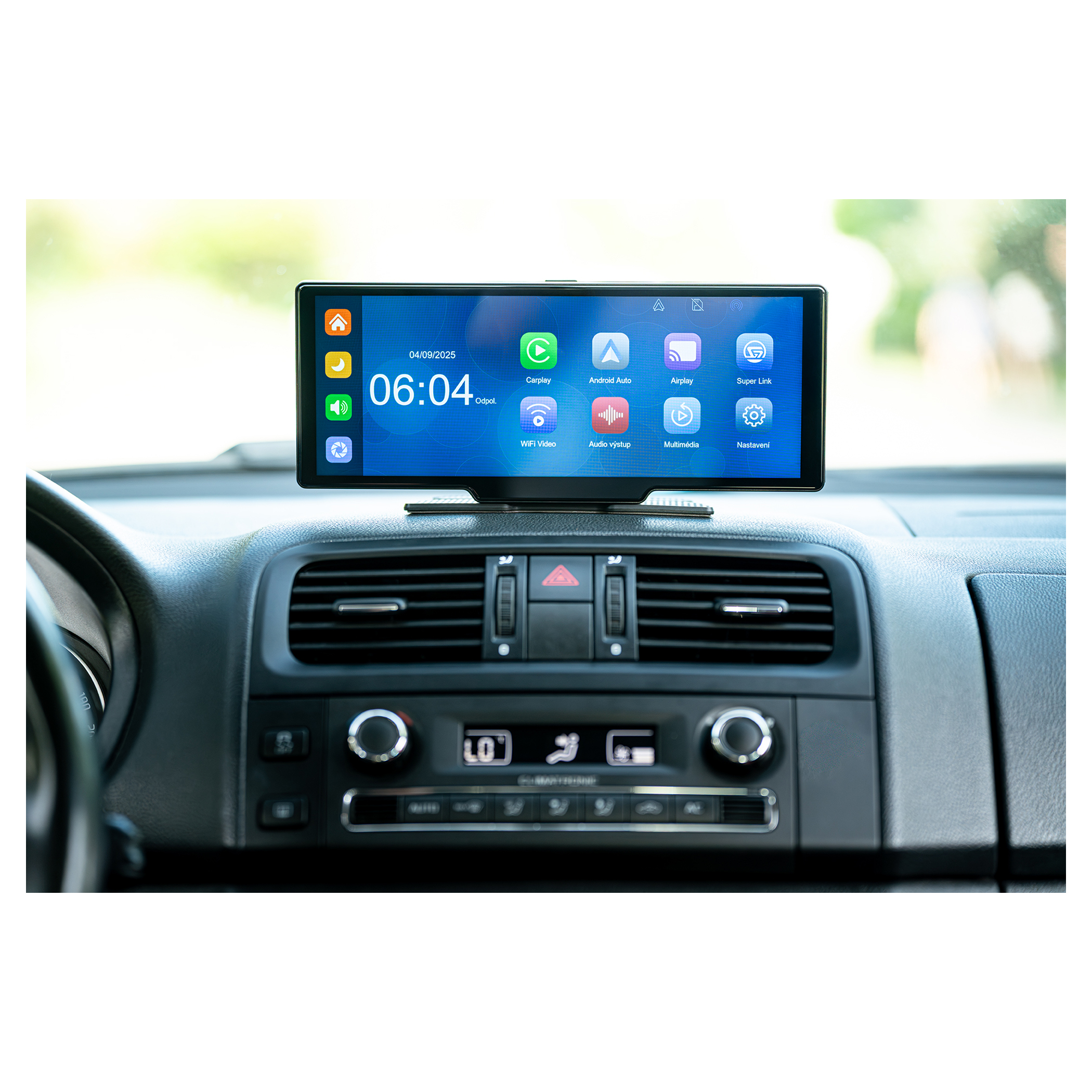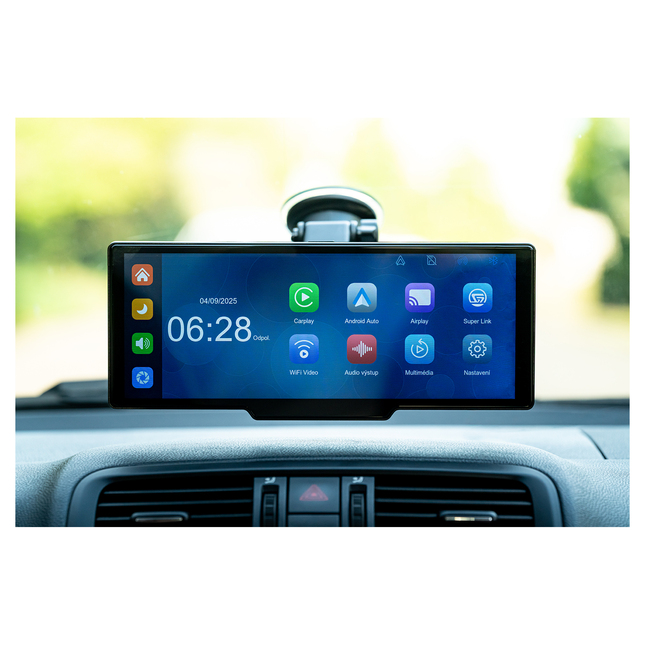 SCT M1060BWT je 10,26 "" obrazovka s podporou bezdrátového Apple CarPlay / Android Auto pro plnohodnotné zrcadlení vašeho smartphonu. Po připojení můžete pohodlně používat navigaci Google Maps, Waze nebo Mapy.cz, poslouchat hudbu ze svého telefonu, Spotify či Apple Music a nebo pohodlně telefonovat či odpovídat na zprávy přes hlasové ovládání.Již nemusíte řešit složitou vestavbu nového multifunkčního autorádia do palubní desky auta. S modelem SCT M1060BWT se stačí propojit přes FM frekvenci s aktuálním autorádiem pro perfektní bezdrátový přenos zvuku do reproduktorů auta. Součástí balení je i couvací kamera s rozlišením 1080P s automatickou detekcí couvání.