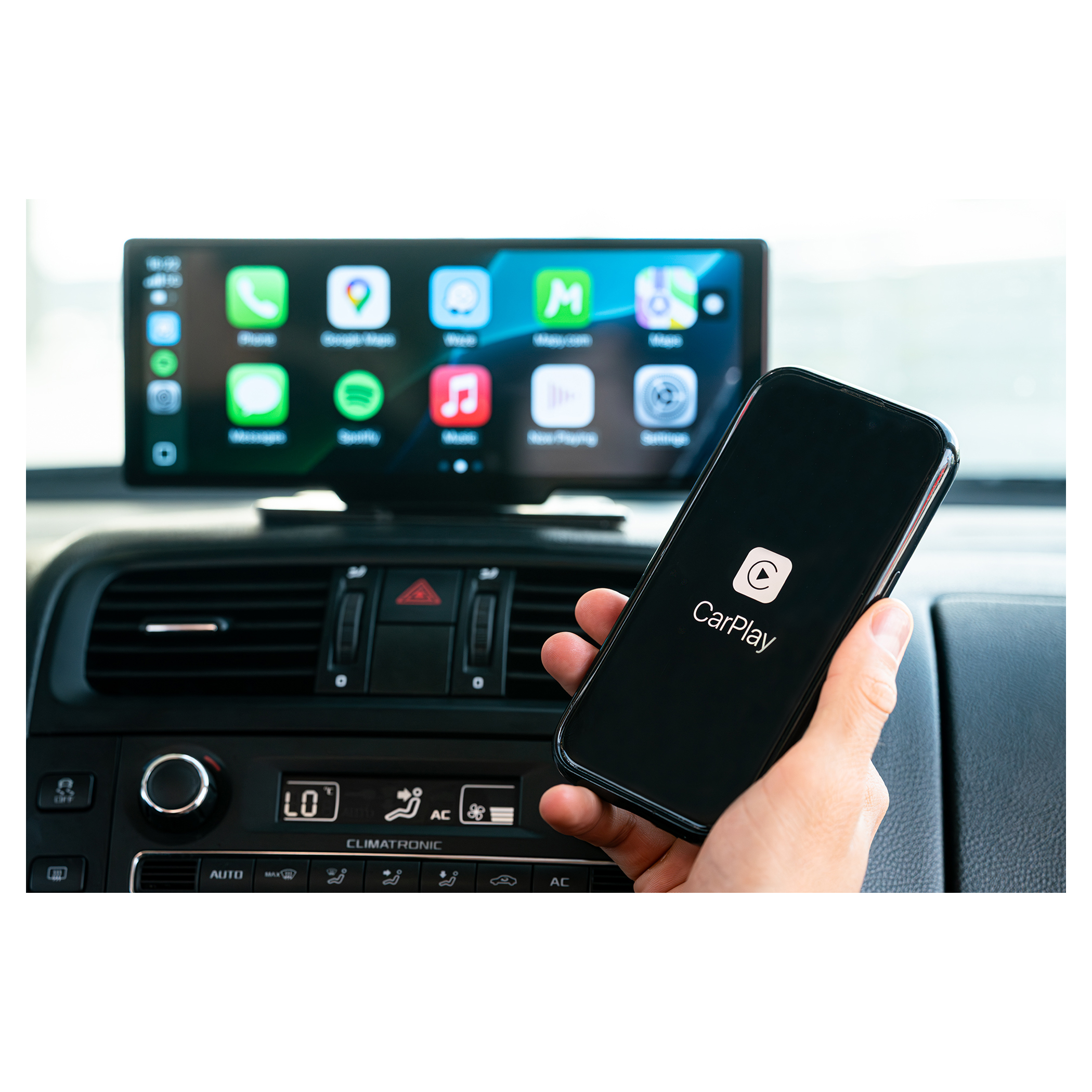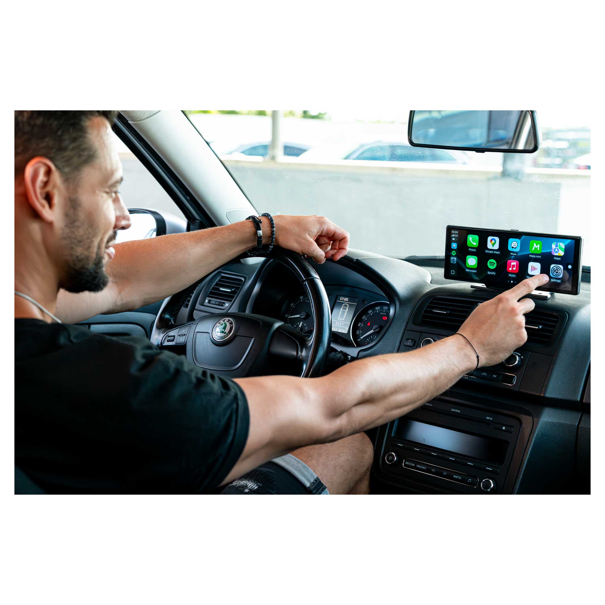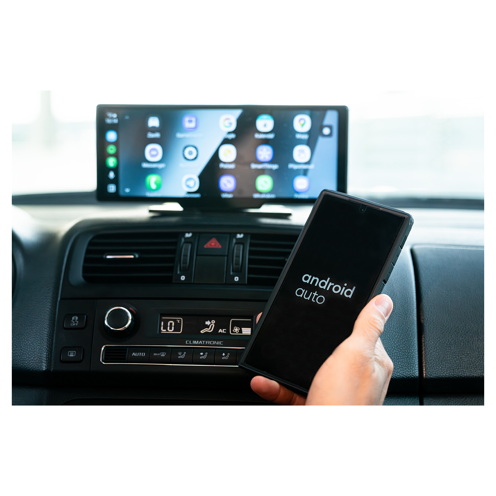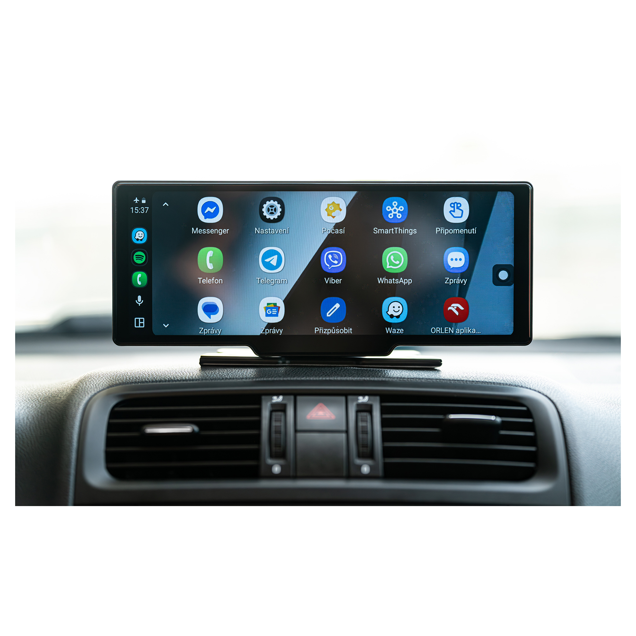SCT M1060BWT je 10,26 "" obrazovka s podporou bezdrátového Apple CarPlay / Android Auto pro plnohodnotné zrcadlení vašeho smartphonu. Po připojení můžete pohodlně používat navigaci Google Maps, Waze nebo Mapy.cz, poslouchat hudbu ze svého telefonu, Spotify či Apple Music a nebo pohodlně telefonovat či odpovídat na zprávy přes hlasové ovládání.Již nemusíte řešit složitou vestavbu nového multifunkčního autorádia do palubní desky auta. S modelem SCT M1060BWT se stačí propojit přes FM frekvenci s aktuálním autorádiem pro perfektní bezdrátový přenos zvuku do reproduktorů auta. Součástí balení je i couvací kamera s rozlišením 1080P s automatickou detekcí couvání.