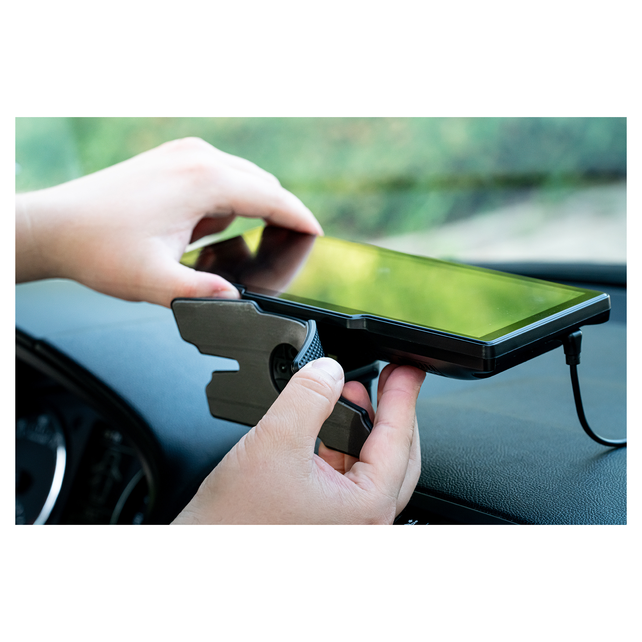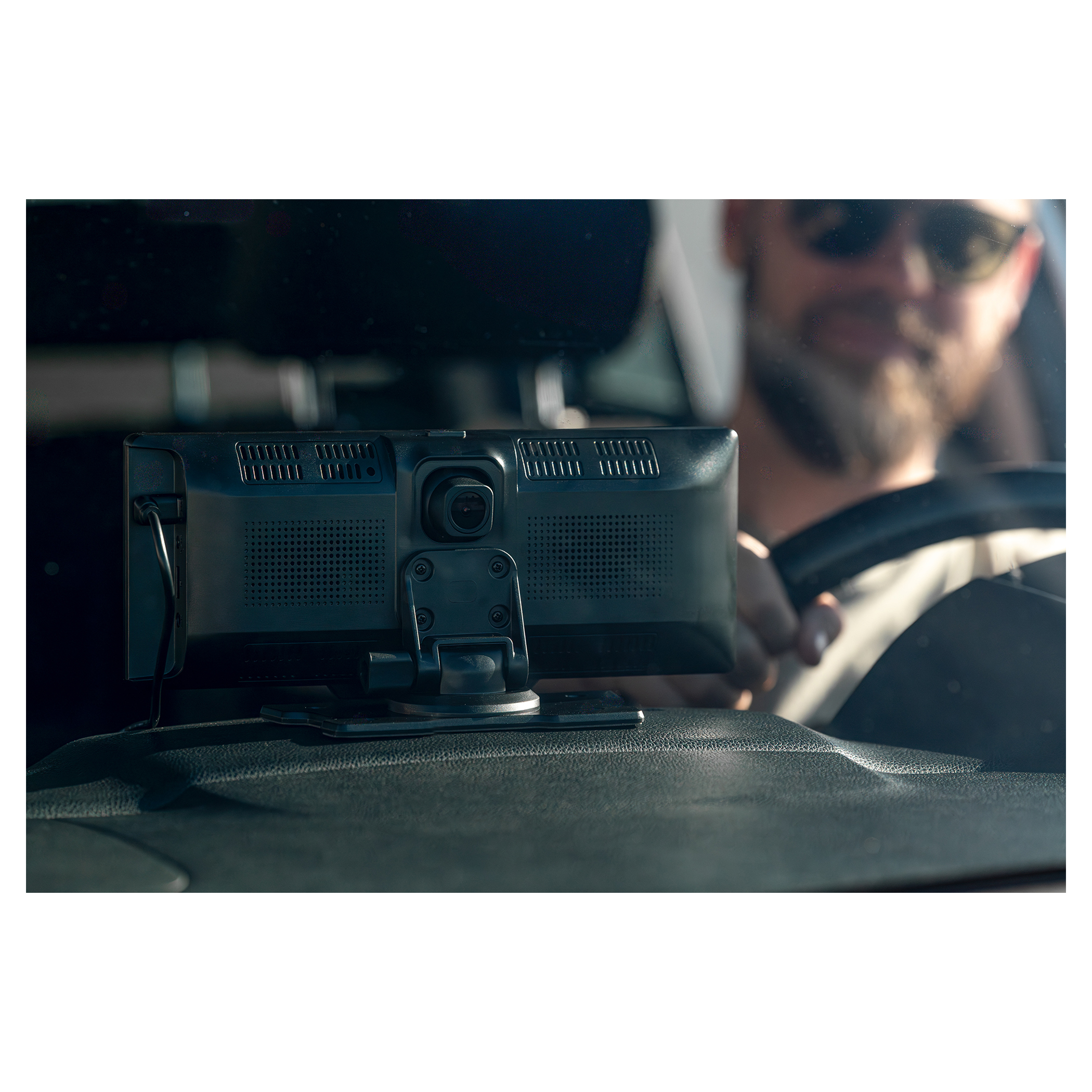 Pomocí slotu pro SD karty můžete přehrávat filmy, videa nebo poslouchat hudbu. Všestranné uchycení nabídne 360° držák s možností uchycení na čelní sklo nebo dva držáky na palubní desku auta. Balení obsahuje také 12-24 V adaptér, Jack 3,5 mm kabel a couvací kameru.