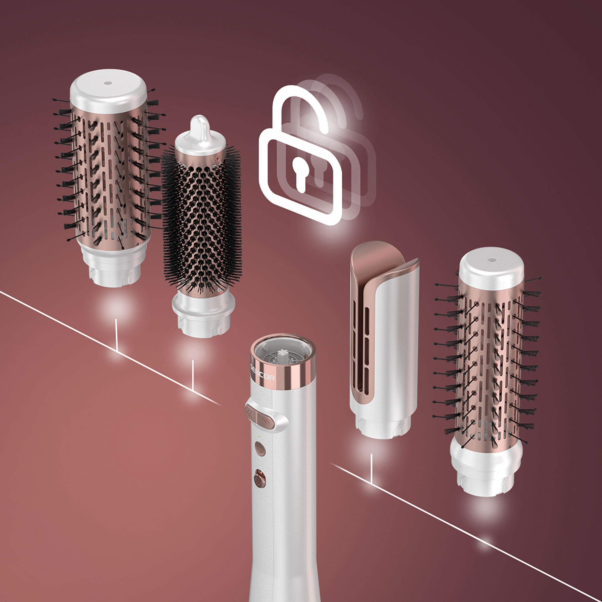 Díky bohatému příslušenství zvládne rotační kulmofén Artemiss vlasy vysoušet, narovnávat, vytvářet lokny i vlny nebo dodat vlasům objem. Snadné nasazení nástavců umožňuje rychlou změnu stylu během úpravy. Ideální řešení pro každodenní i slavnostní účesy.Stylové a bezpečné uložení