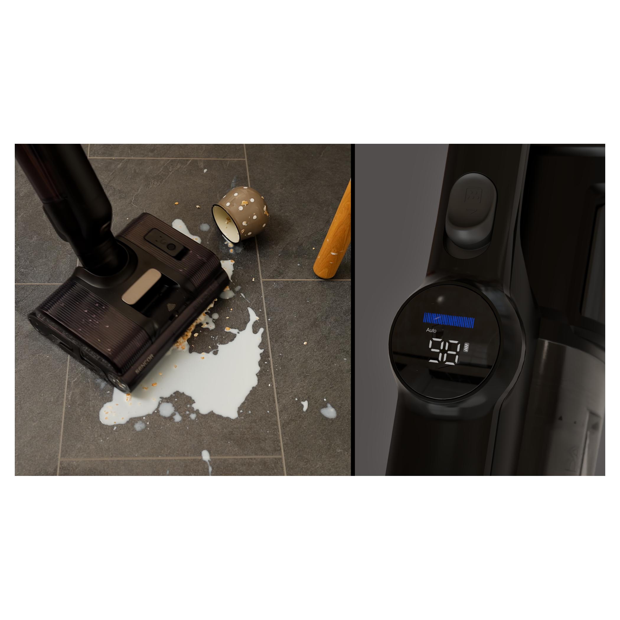 Systém Dual Power Mop s dvěma rotačními kartáči, které se otáčejí proti sobě, zvyšuje účinnost čištění a zároveň umožňuje, aby se vysavač po podlaze pohyboval téměř sám – stačí ho jen vést.Výkonný voděodolný motor
