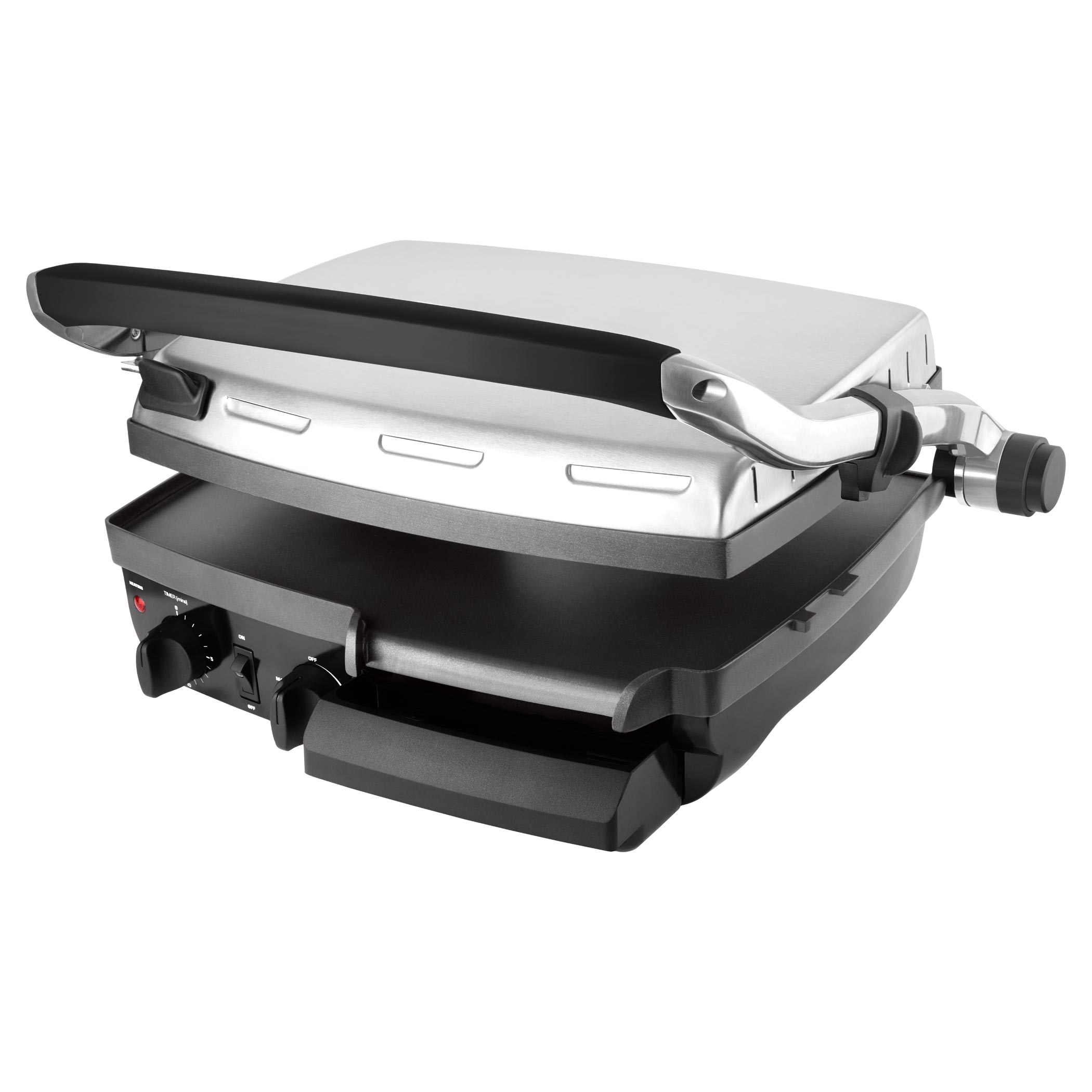 3 provozní polohy (zavřeno / otevřeno 90° / otevřeno 180°)Nepřilnavý povrch grilovacích desek