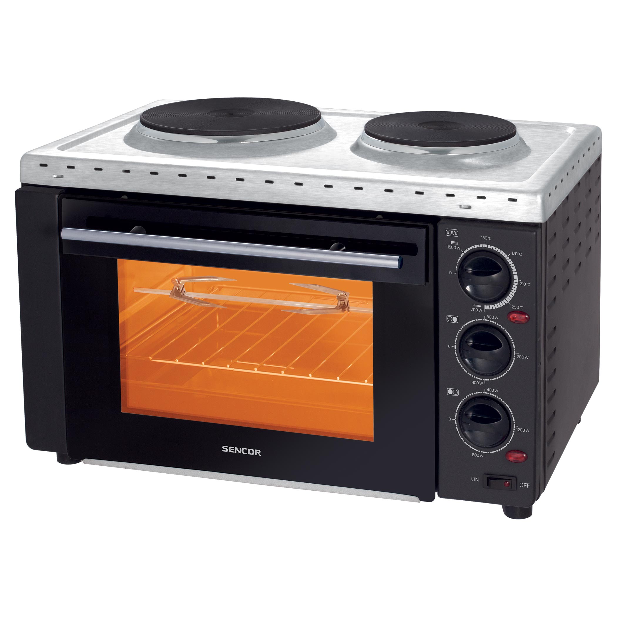 Volně stojící trouba s plotýnkami a grilem s otočnou jehlou je ideální do malých kuchyní, víkendových chat a chalup.