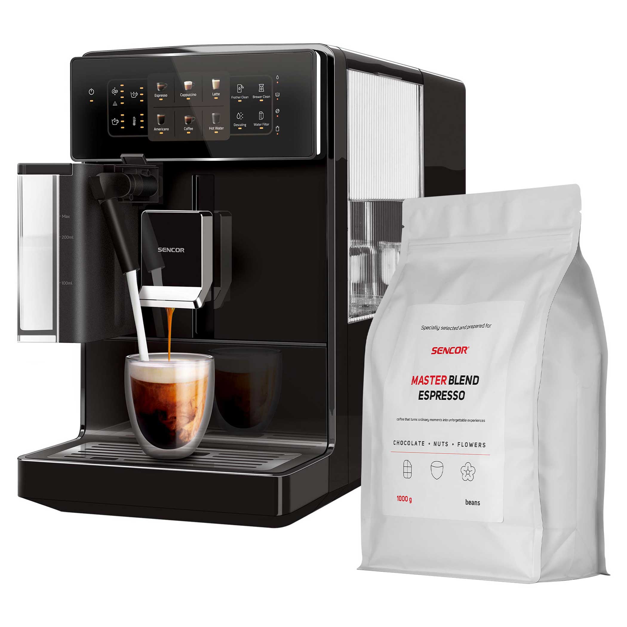 Dopřejte si snadnou přípravu skvělé kávy s plně automatickým kávovarem Sencor SES 9300BK.