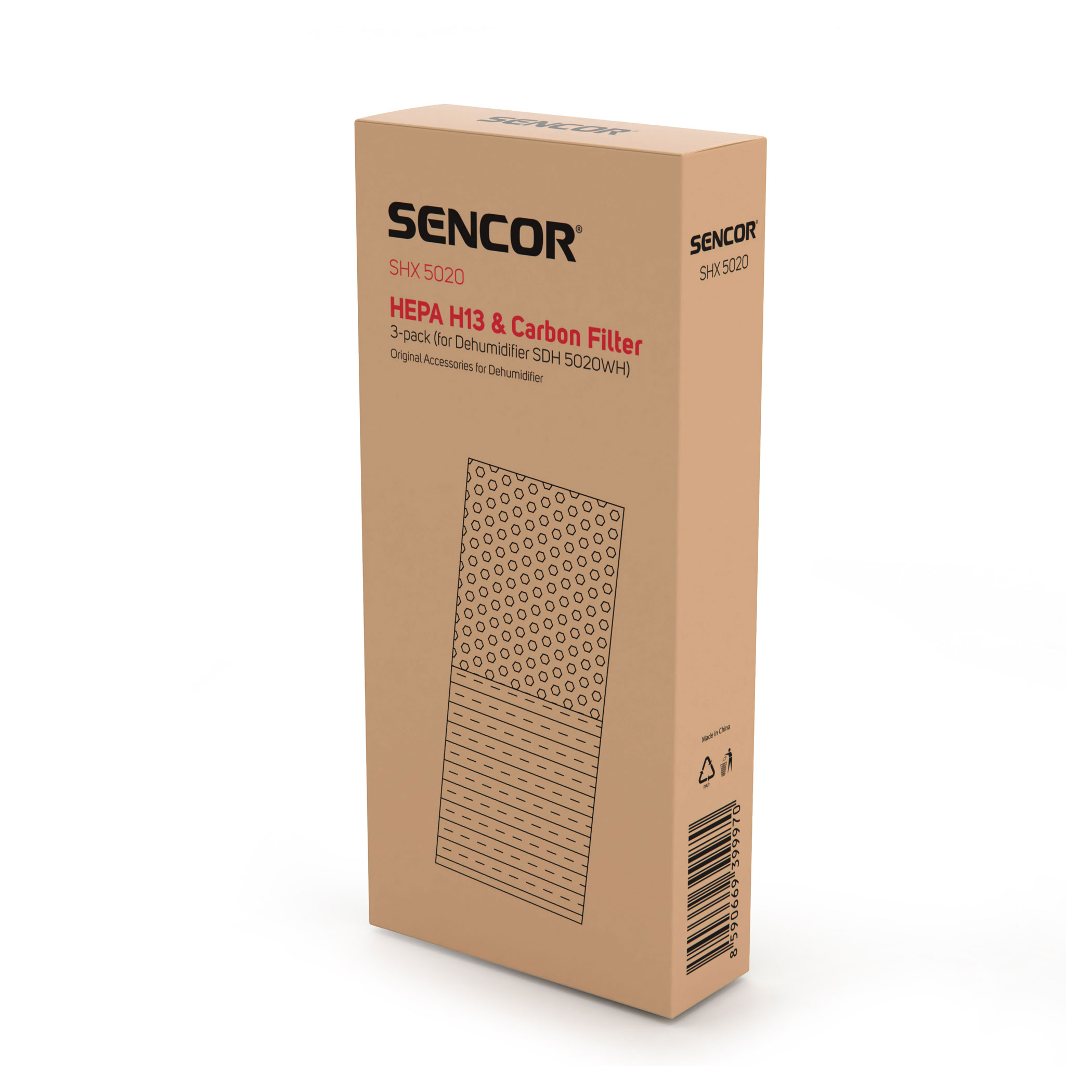 - Balení obsahuje 3 kusy SHX 5020 HEPA H13 filtru s aktivním uhlíkem pro mobilní odvlhčovač Sencor SDH 5020WH PumpIt 50l Wi-Fi.
