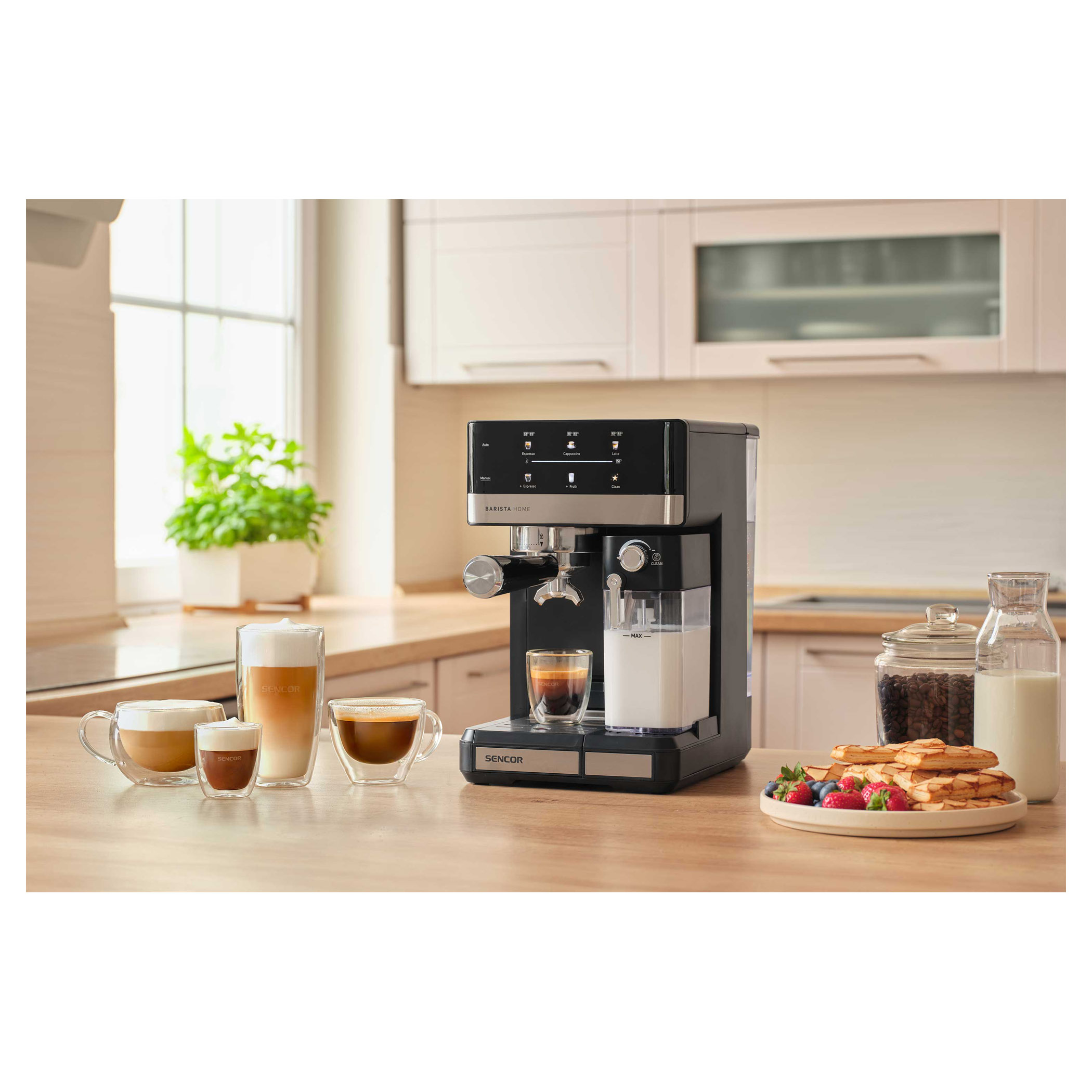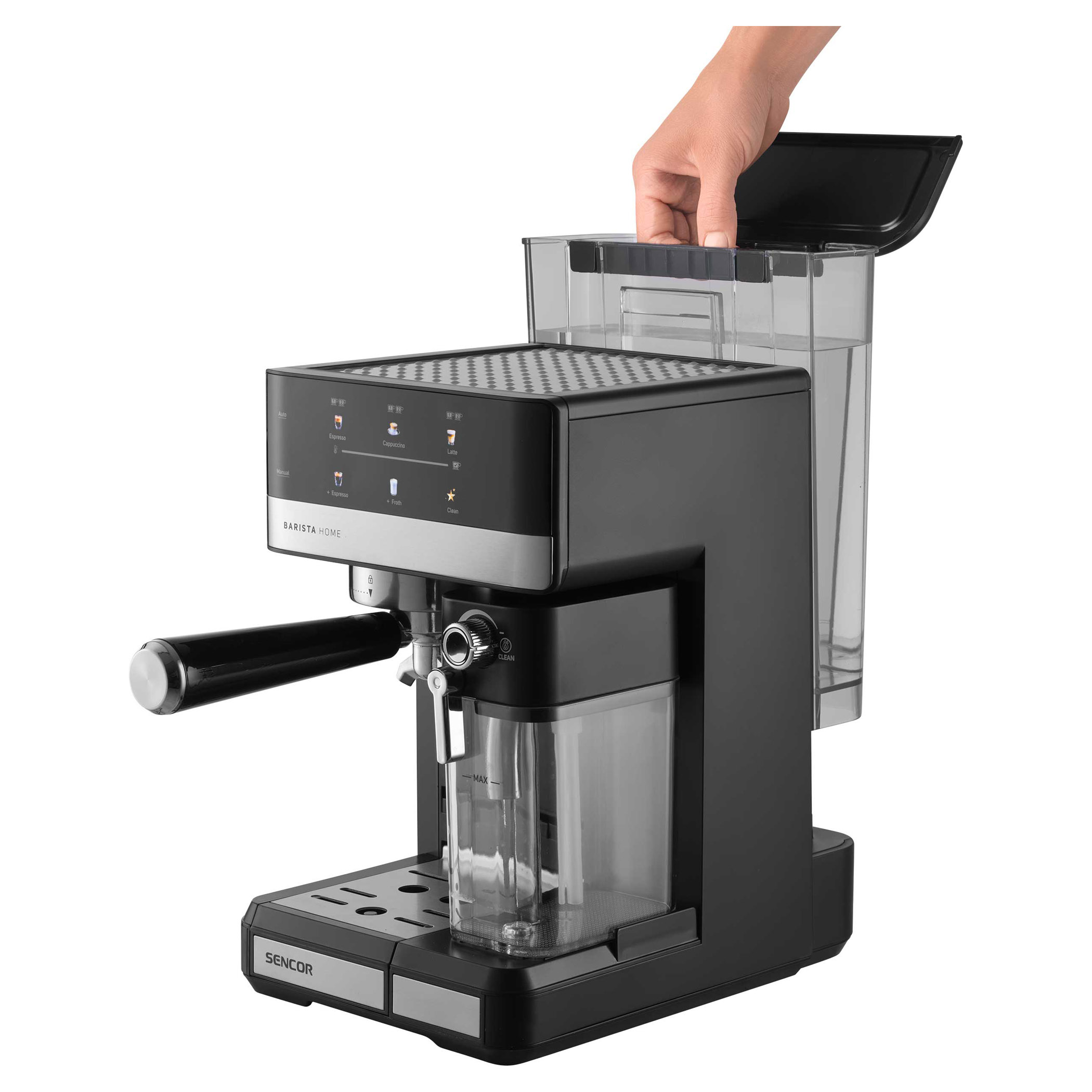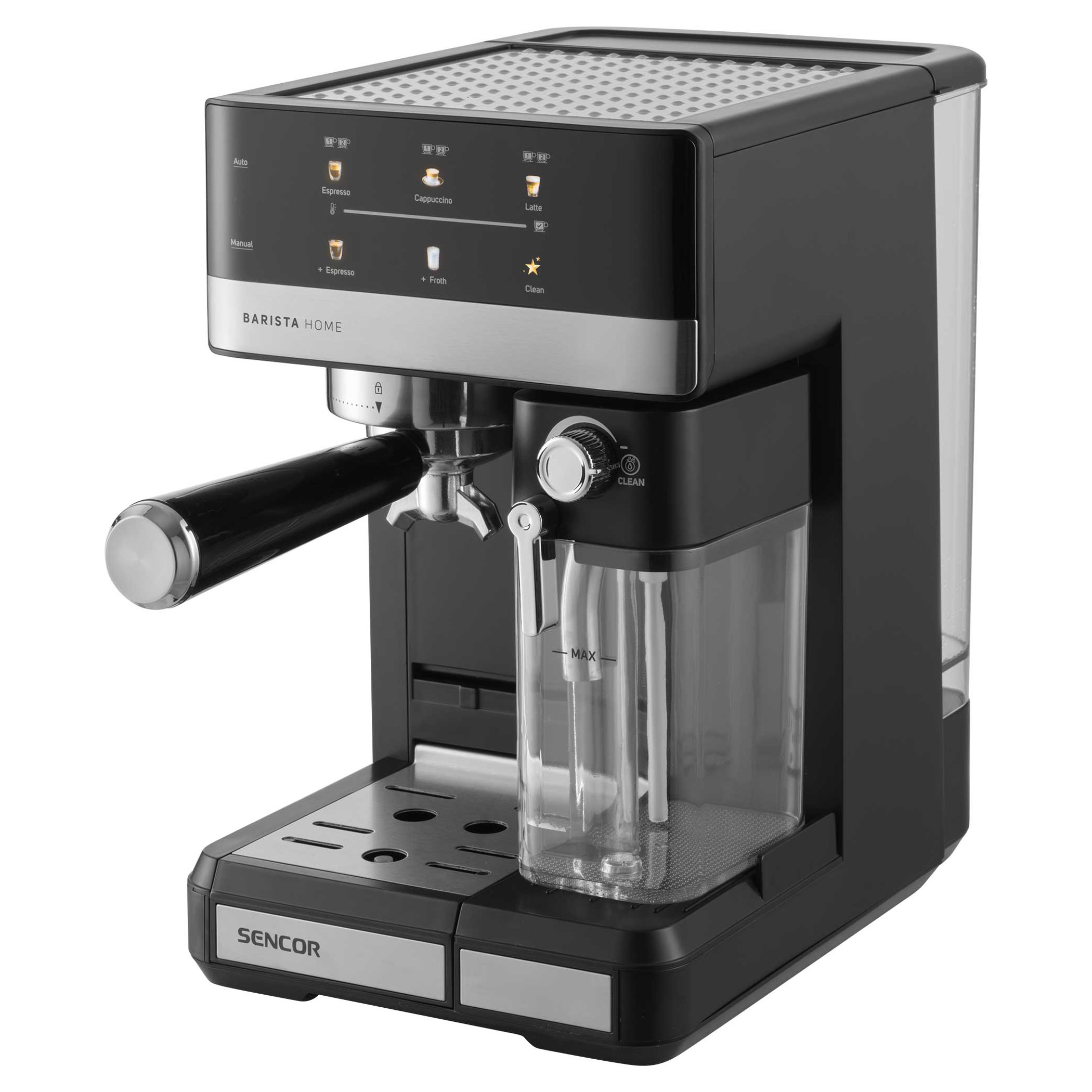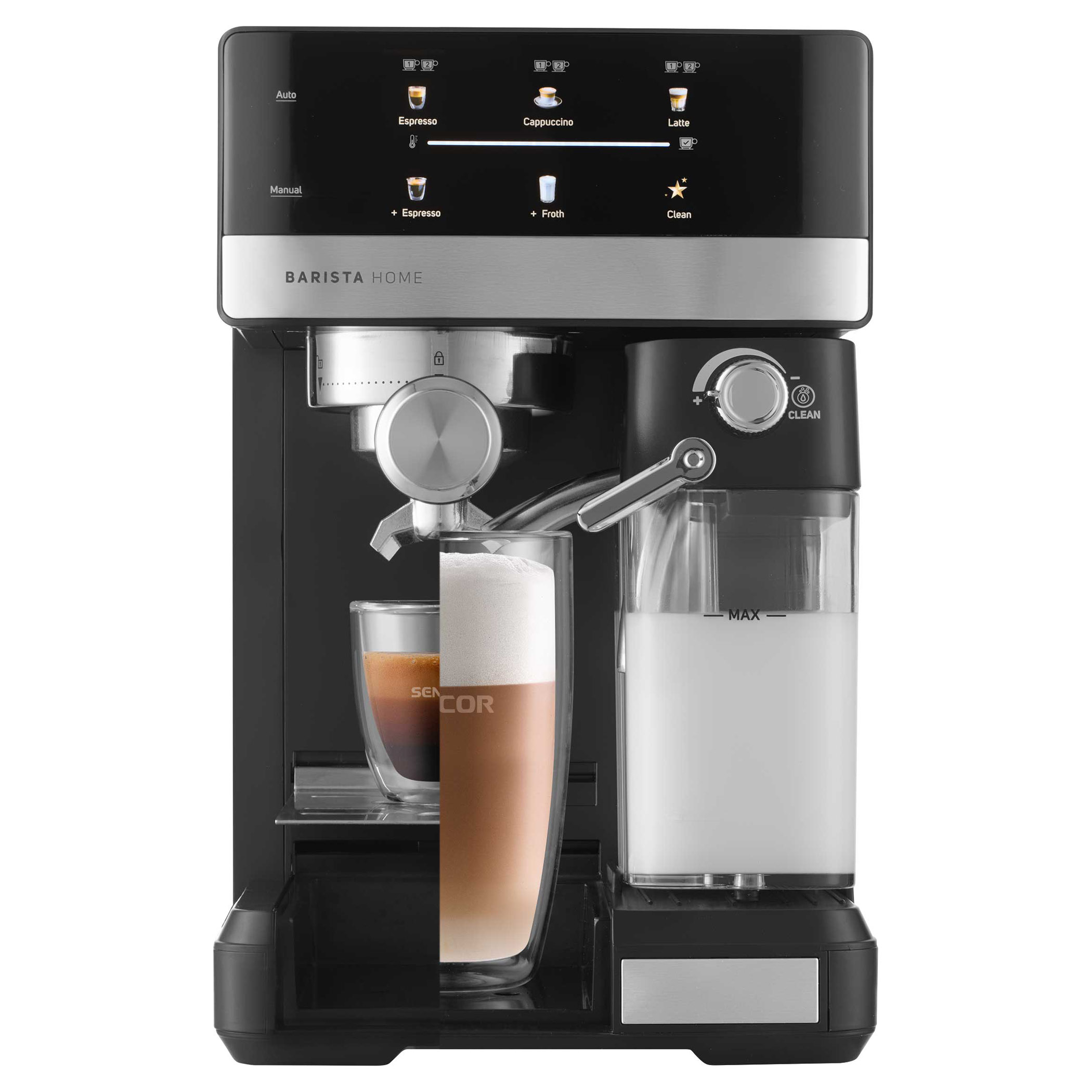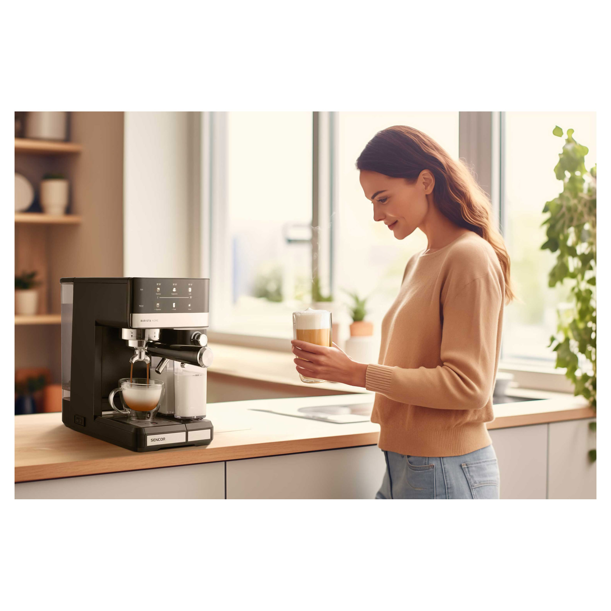 Pákový Espresso kávovar s automatickým napěňováním mléka Sencor SES 4060BK se postará o přípravu chutné kávy s mlékem i bez díky čerpadlu s tlakem 20 barů a automatickým systémem pěnění mléka. Snadná obsluha vašeho domácího baristy je samozřejmostí zásluhou odnímatelné nádržky na mléko a barevného dotykového displeje.