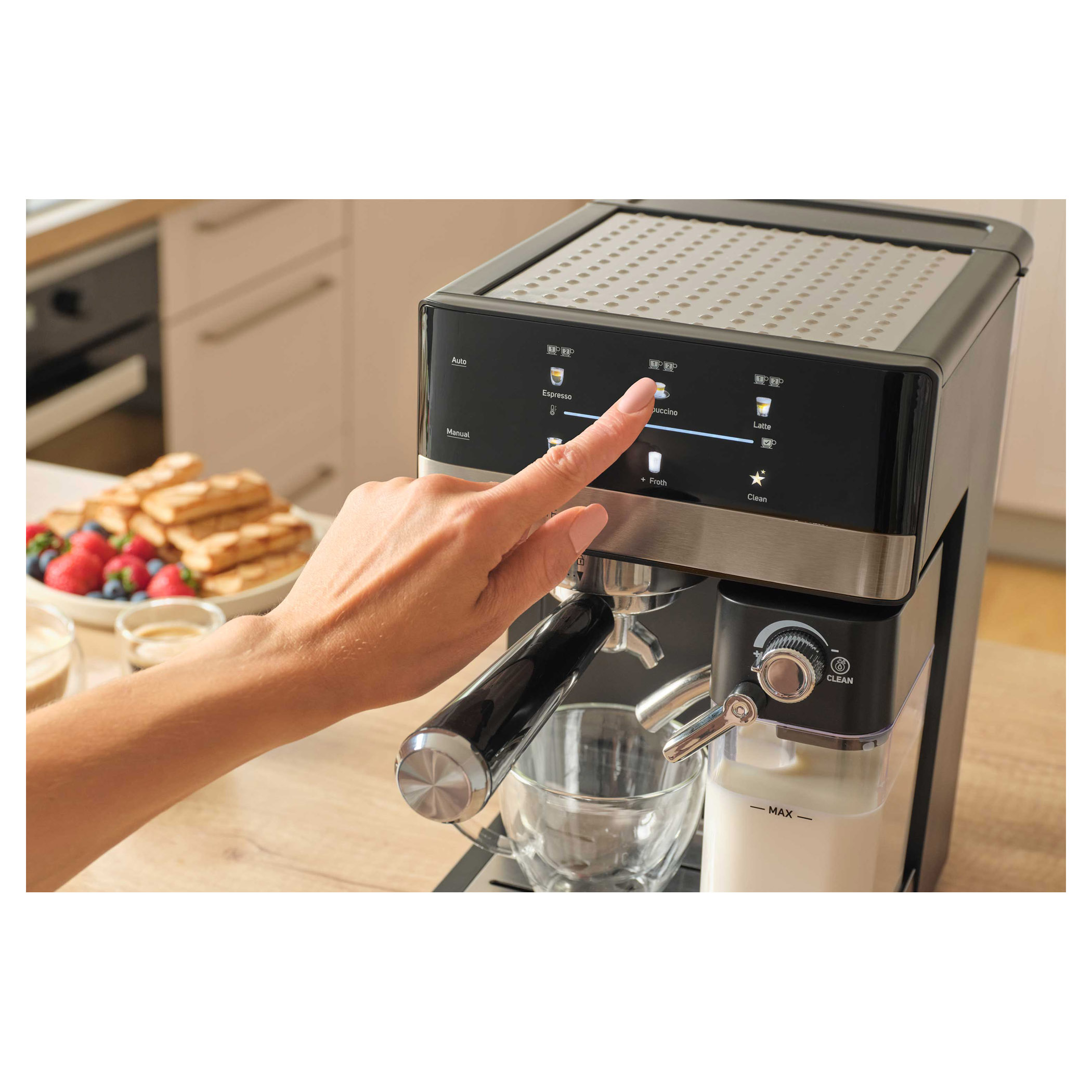 Vysoce výkonné čerpadlo s tlakem 20 barů zvládne díky rychlému ohřevu vody a funkci předspaření uvařit kávu tak, že perfektně zachová její bohatou chuť a intenzivní aroma. Dokáže také připravit dva šálky najednou, což je ideální pro domácnost s dvojicí milovníků kávy.Snadná obsluha s dotykovým displejem
