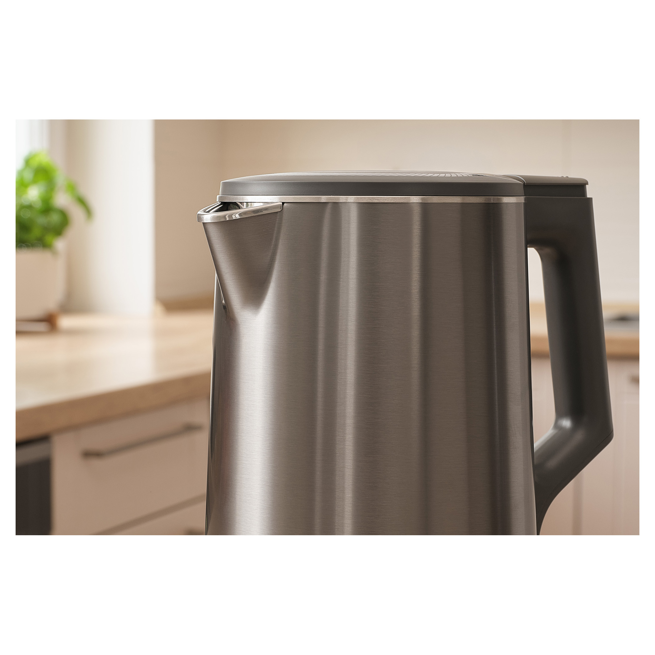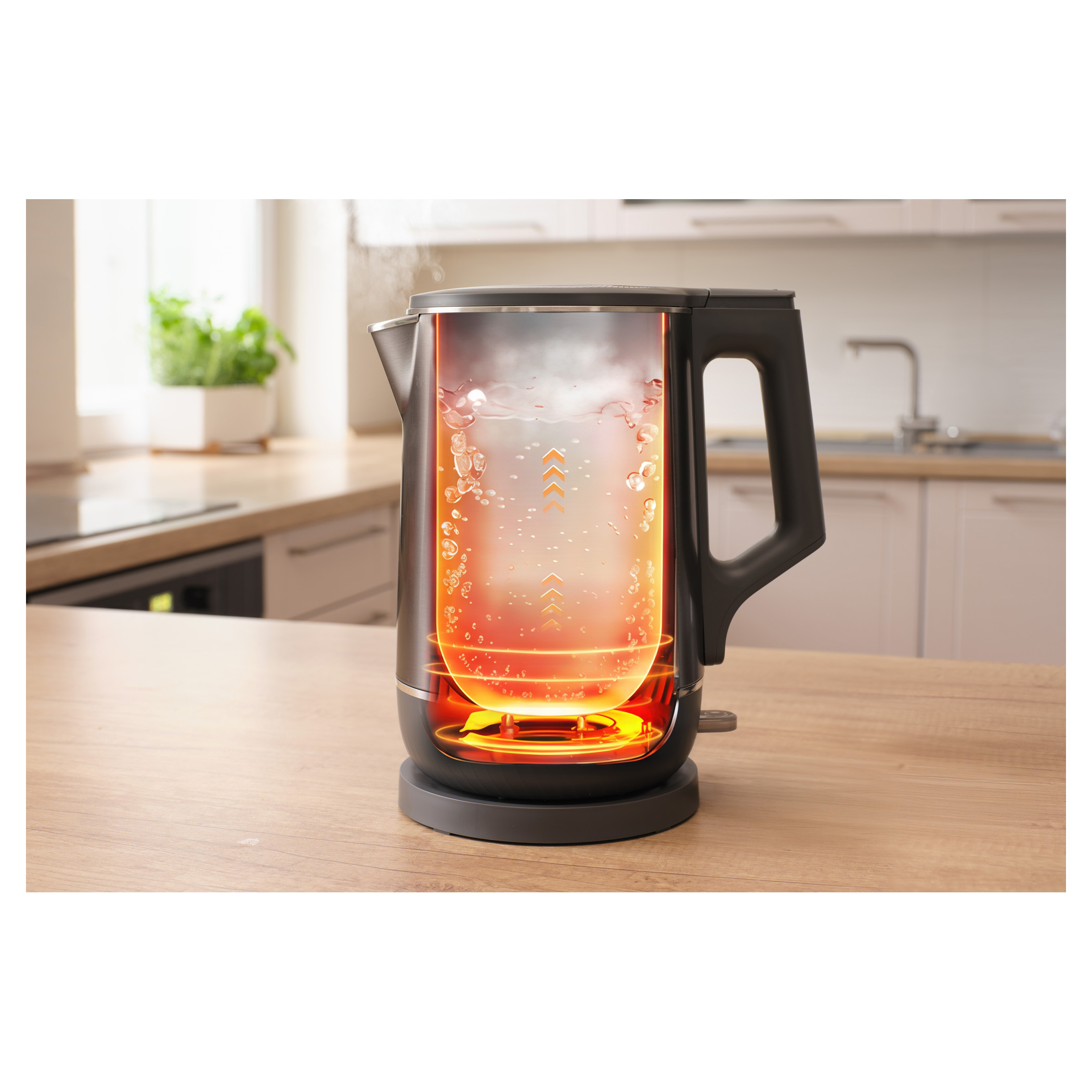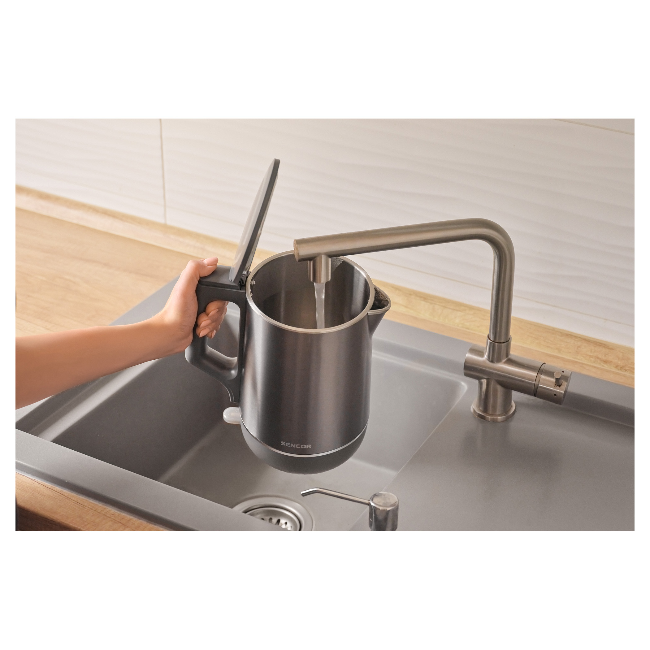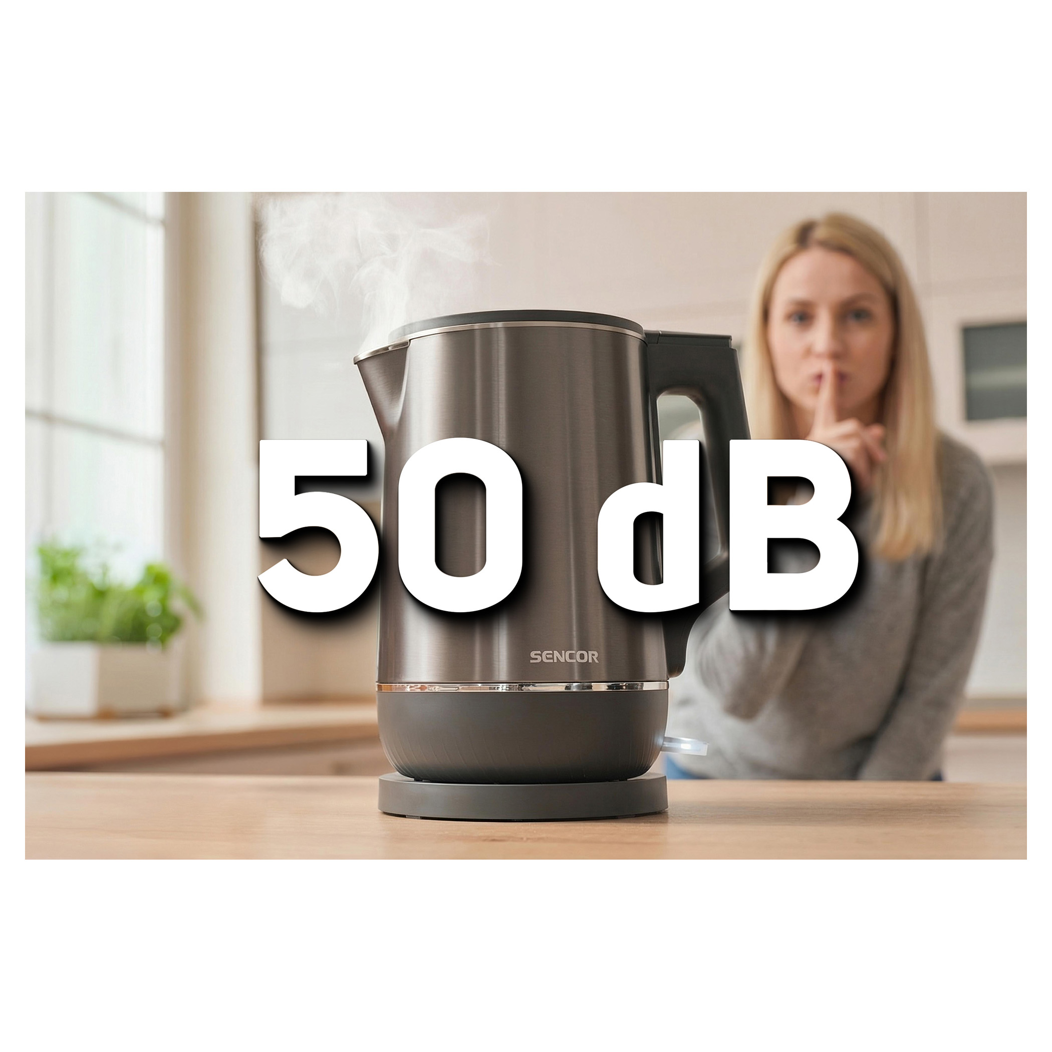 Zažijte nový standard tichého komfortu s elektrickou konvicí U-Shape, navrženou tak, aby bylo každodenní vaření vody klidné, snadné a efektivní. S hlučností pouhých 50 dB je tato konvice mimořádně tichá — ideální pro poklidná rána, noční přípravu čaje nebo použití ve sdílených prostorech. Unikátně navržené zaoblené dno ve tvaru U snižuje hluk a podporuje plynulé, nerušené ohřívání. Díky velkorysé kapacitě 1,7 l je ideální pro rodinné použití, návštěvy nebo přípravu několika nápojů najednou. Konvice je promyšleně zkonstruována pro dlouhou životnost a čistotu — vnější část je z broušené nerezové oceli a vnitřní komora je vyrobena z prémiové nerezové oceli SUS 316, známé svou odolností a nízkou tvorbou vodního kamene. Dvojitá stěna poskytuje skvělou izolaci, udržuje vodu déle teplou a zároveň zajišťuje, že vnější povrch zůstává chladný a bezpečný na dotek. Čištění a údržba jsou mimořádně snadné díky hladkému vnitřku a vyjímatelnému, omyvatelnému filtru proti nečistotám a vodnímu kameni. Pro maximální pohodlí při každodenním používání konvice nabízí plnění jednou rukou s automatickým otevíráním víka na stisk tlačítka, spolu s nerezovou topnou základnou a krytou topnou spirálou pro rovnoměrný přenos tepla a delší životnost. Vestavěné bezpečnostní prvky — včetně ochrany proti chodu naprázdno, přehřátí, automatického vypnutí a kontrolky zapnutí — zajišťují bezstarostný provoz. Základna také obsahuje úložný prostor pro kabel, díky čemuž zůstane vaše kuchyňská linka čistá a minimalistická. Díky efektivnímu topnému systému s příkonem 1 800 W konvice poskytuje rychlý ohřev vody, aniž by narušila klid vašeho domova.