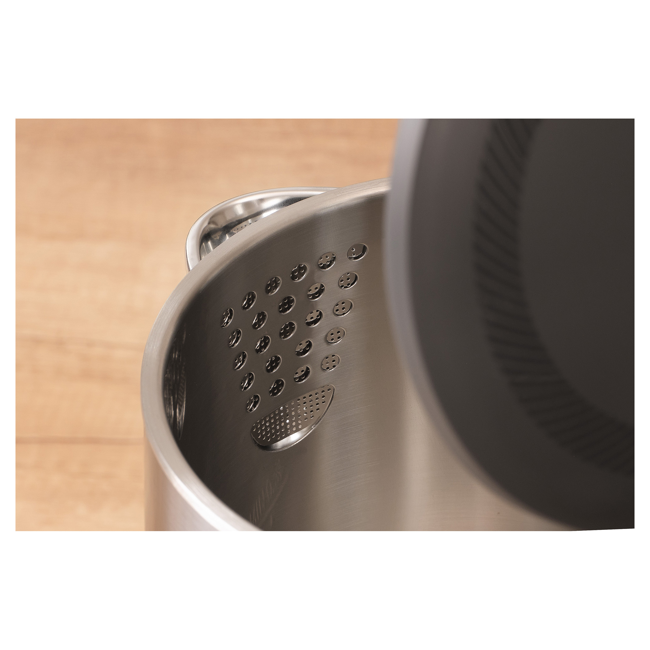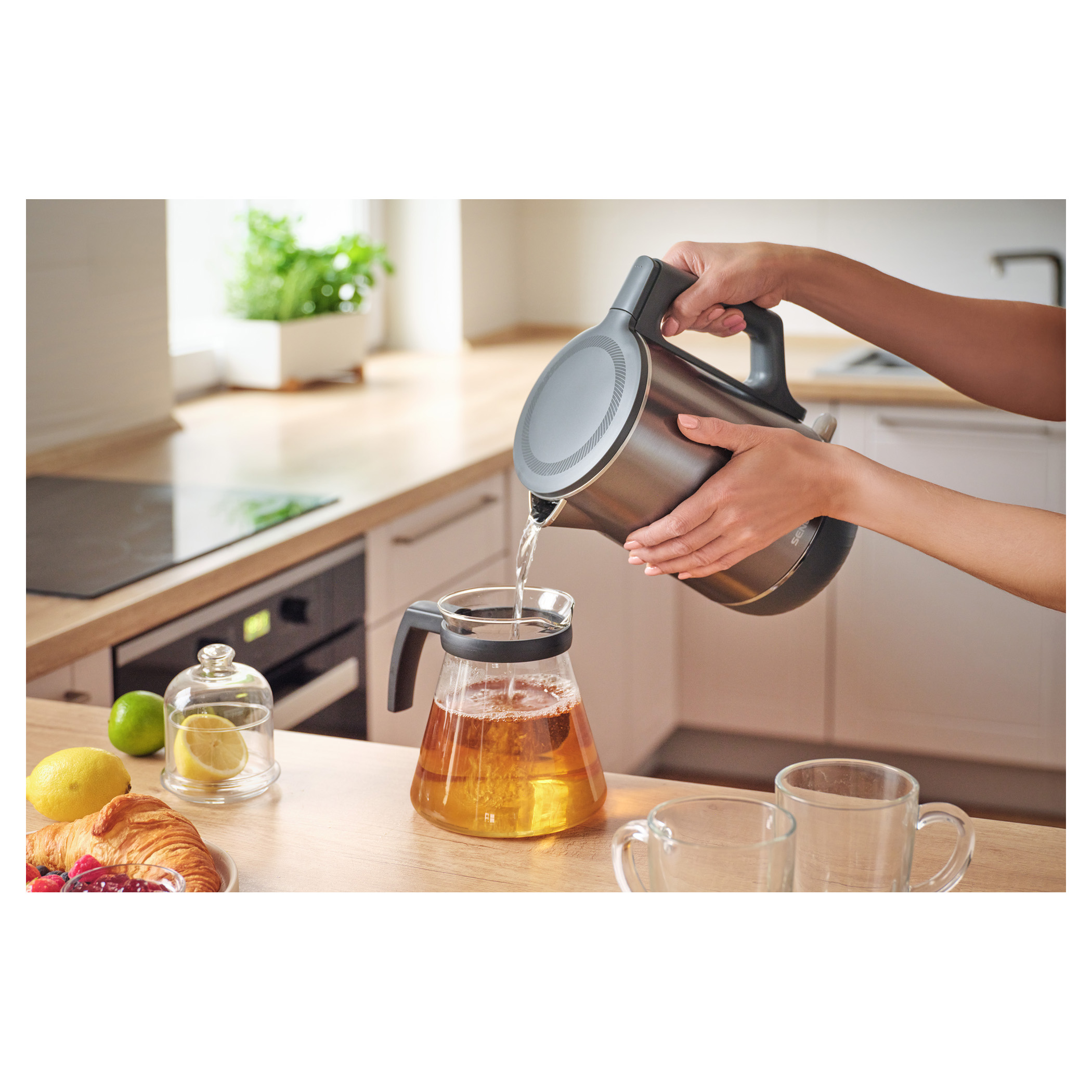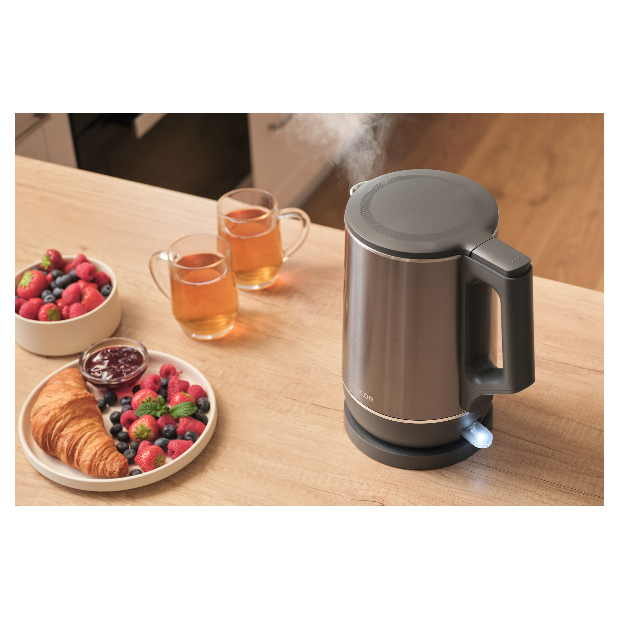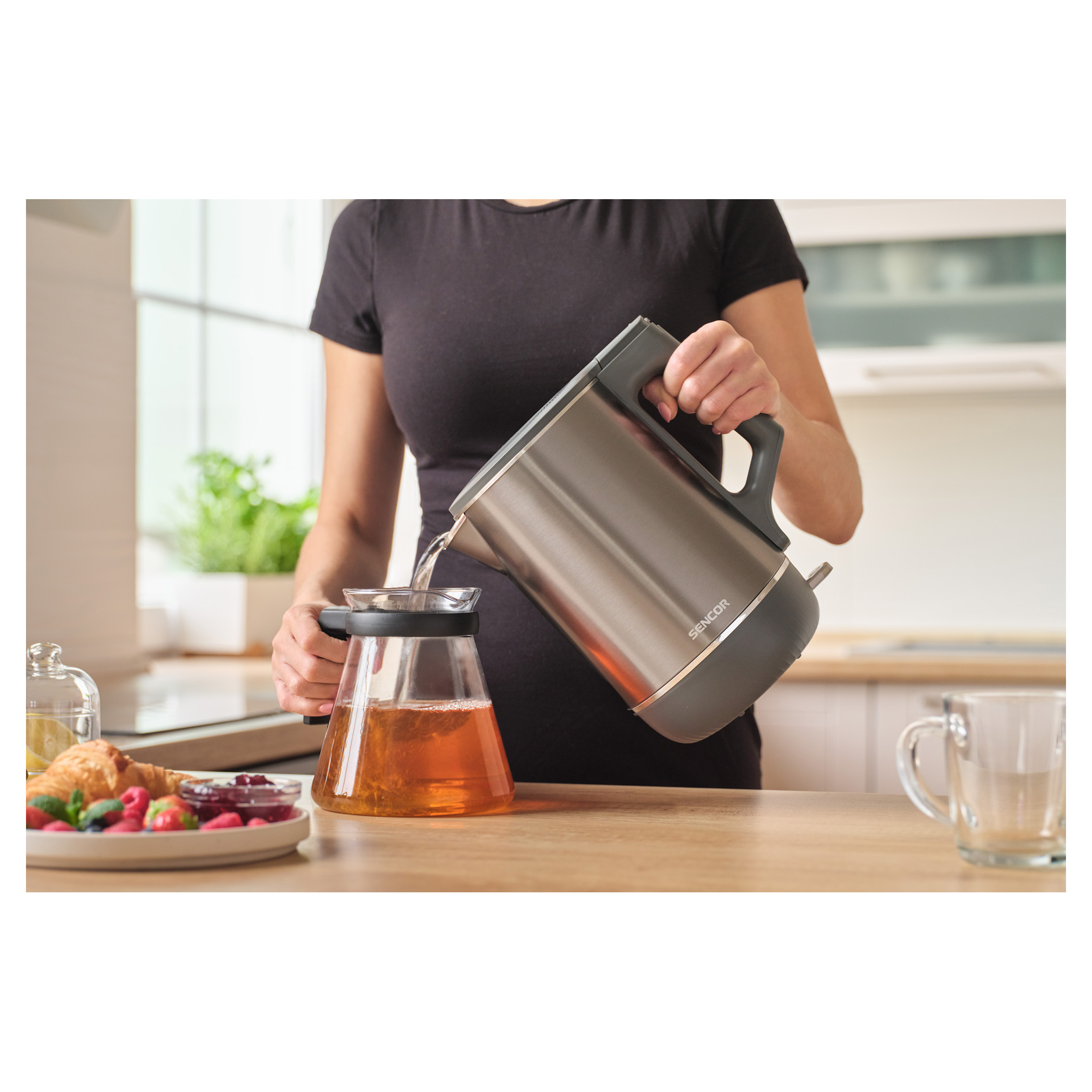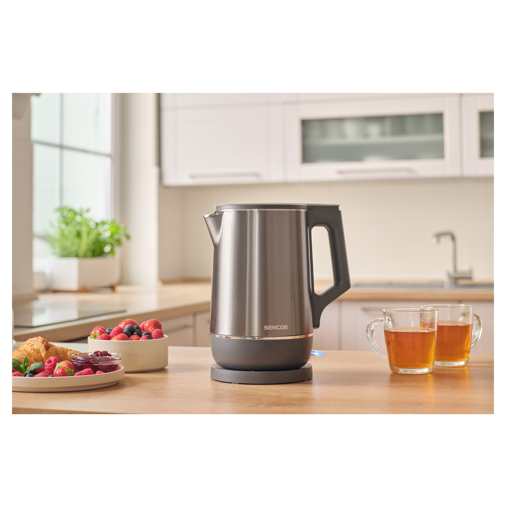 Zažijte nový standard tichého komfortu s elektrickou konvicí U-Shape, navrženou tak, aby bylo každodenní vaření vody klidné, snadné a efektivní. S hlučností pouhých 50 dB je tato konvice mimořádně tichá — ideální pro poklidná rána, noční přípravu čaje nebo použití ve sdílených prostorech. Unikátně navržené zaoblené dno ve tvaru U snižuje hluk a podporuje plynulé, nerušené ohřívání. Díky velkorysé kapacitě 1,7 l je ideální pro rodinné použití, návštěvy nebo přípravu několika nápojů najednou. Konvice je promyšleně zkonstruována pro dlouhou životnost a čistotu — vnější část je z broušené nerezové oceli a vnitřní komora je vyrobena z prémiové nerezové oceli SUS 316, známé svou odolností a nízkou tvorbou vodního kamene. Dvojitá stěna poskytuje skvělou izolaci, udržuje vodu déle teplou a zároveň zajišťuje, že vnější povrch zůstává chladný a bezpečný na dotek. Čištění a údržba jsou mimořádně snadné díky hladkému vnitřku a vyjímatelnému, omyvatelnému filtru proti nečistotám a vodnímu kameni. Pro maximální pohodlí při každodenním používání konvice nabízí plnění jednou rukou s automatickým otevíráním víka na stisk tlačítka, spolu s nerezovou topnou základnou a krytou topnou spirálou pro rovnoměrný přenos tepla a delší životnost. Vestavěné bezpečnostní prvky — včetně ochrany proti chodu naprázdno, přehřátí, automatického vypnutí a kontrolky zapnutí — zajišťují bezstarostný provoz. Základna také obsahuje úložný prostor pro kabel, díky čemuž zůstane vaše kuchyňská linka čistá a minimalistická. Díky efektivnímu topnému systému s příkonem 1 800 W konvice poskytuje rychlý ohřev vody, aniž by narušila klid vašeho domova.