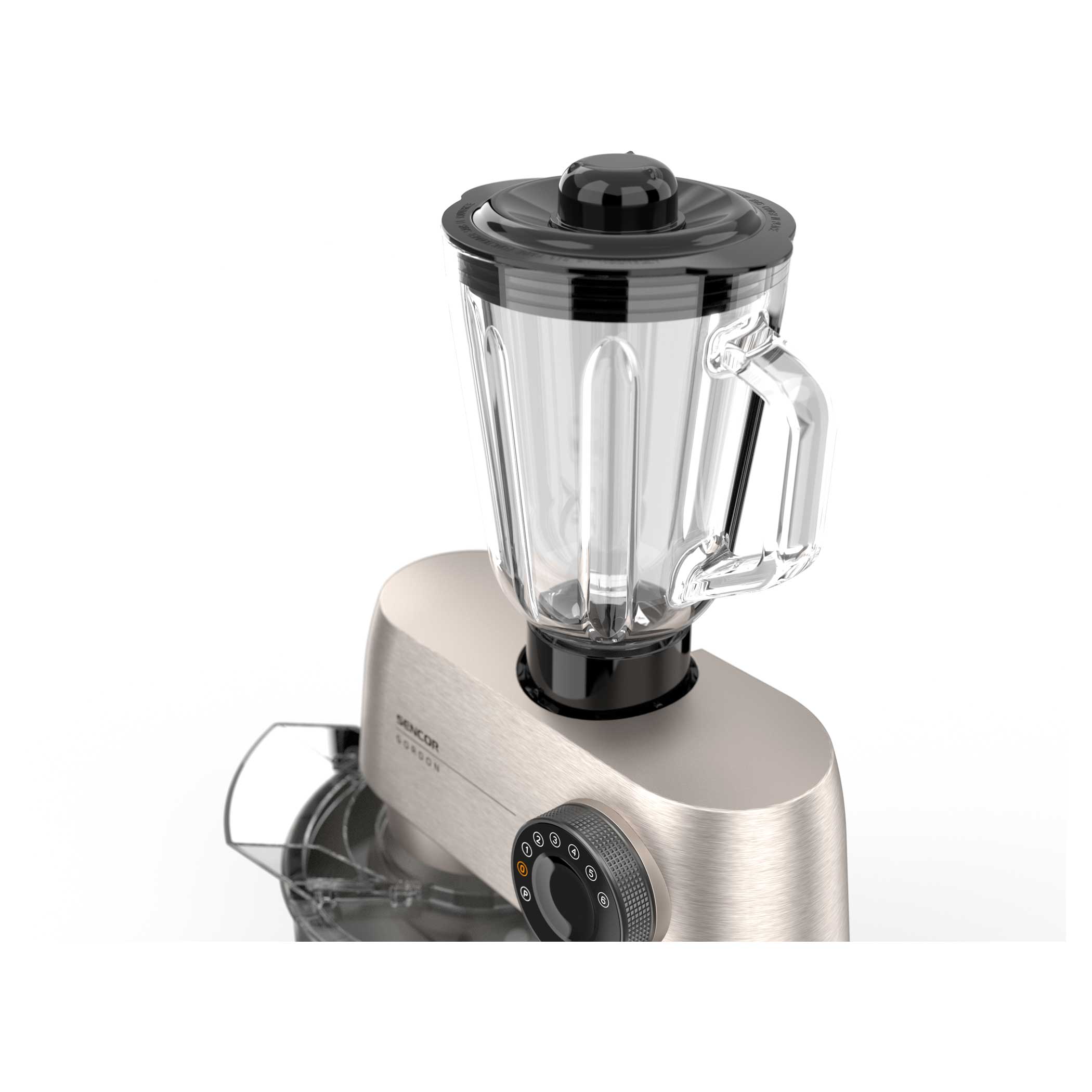 - Nádoba z nerezavějící oceli s měřicí stupnicí o objemu 5,5 litru a vodorovná rukojeť