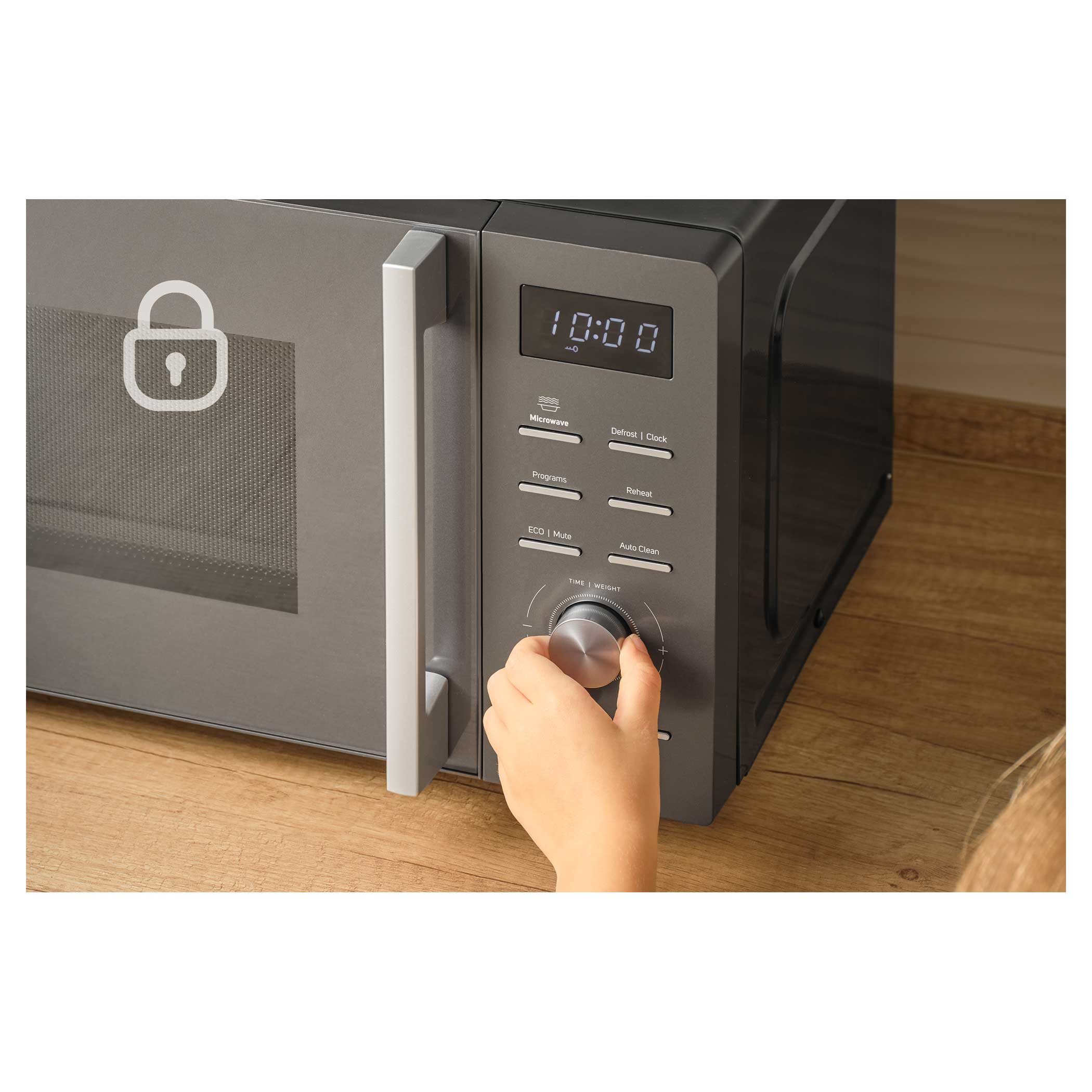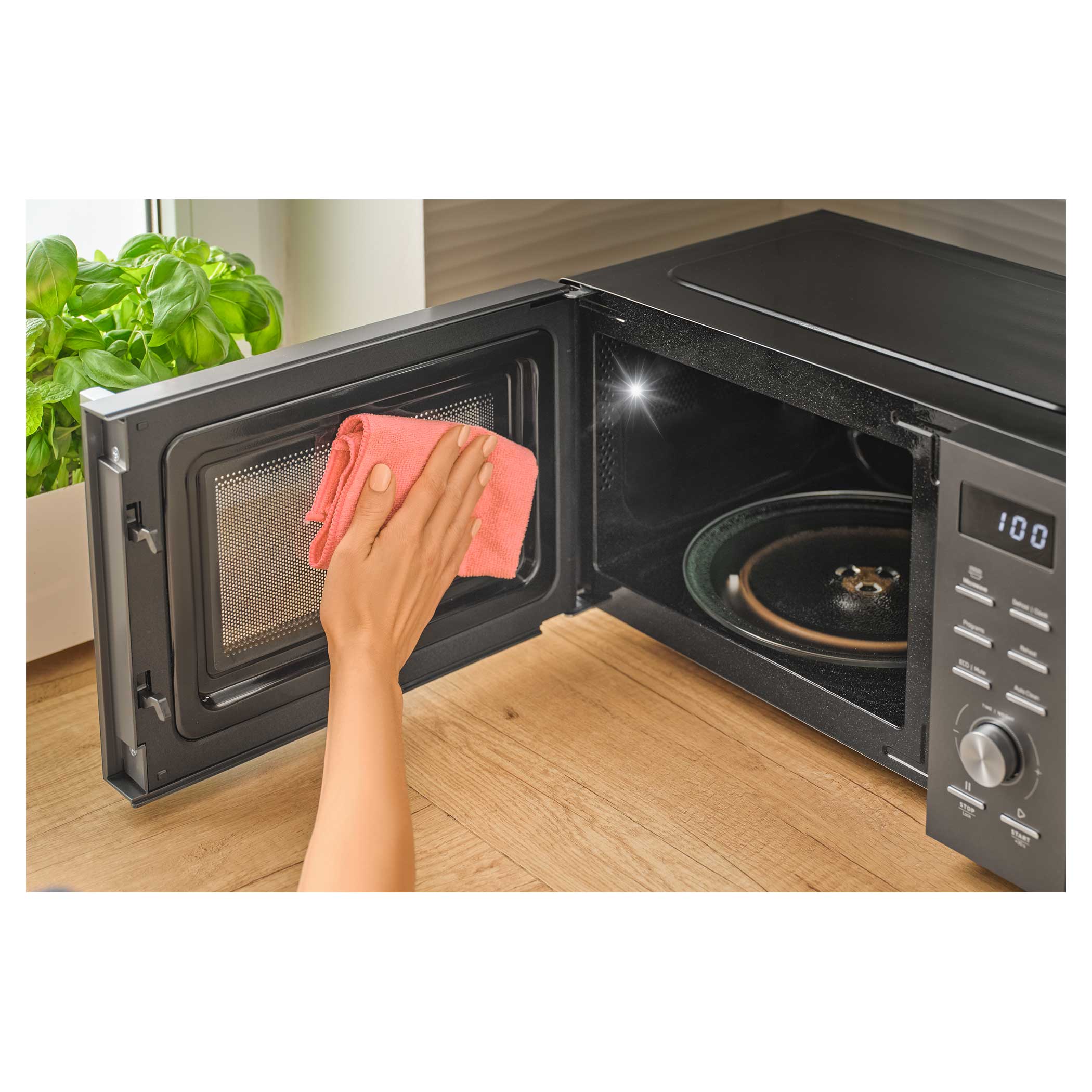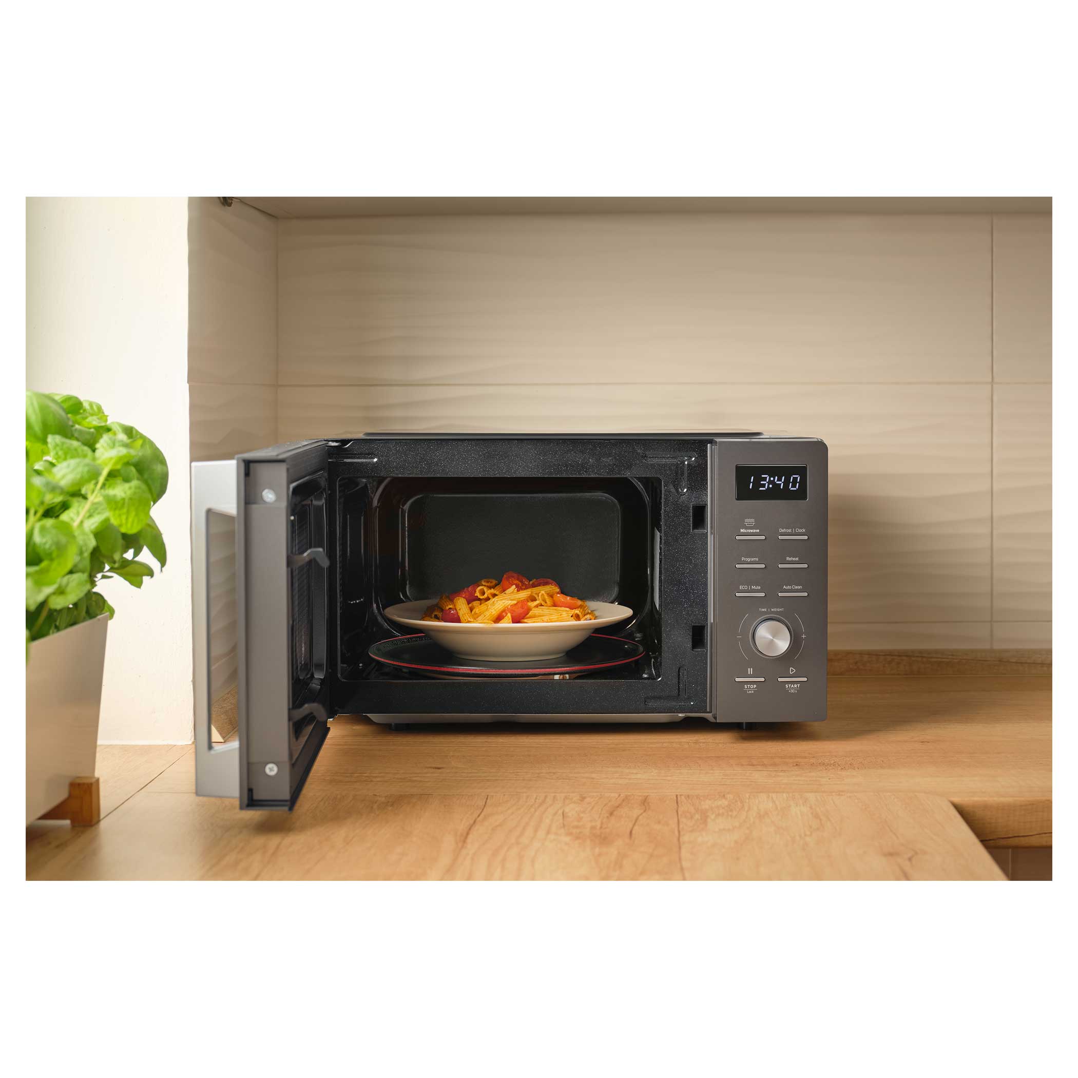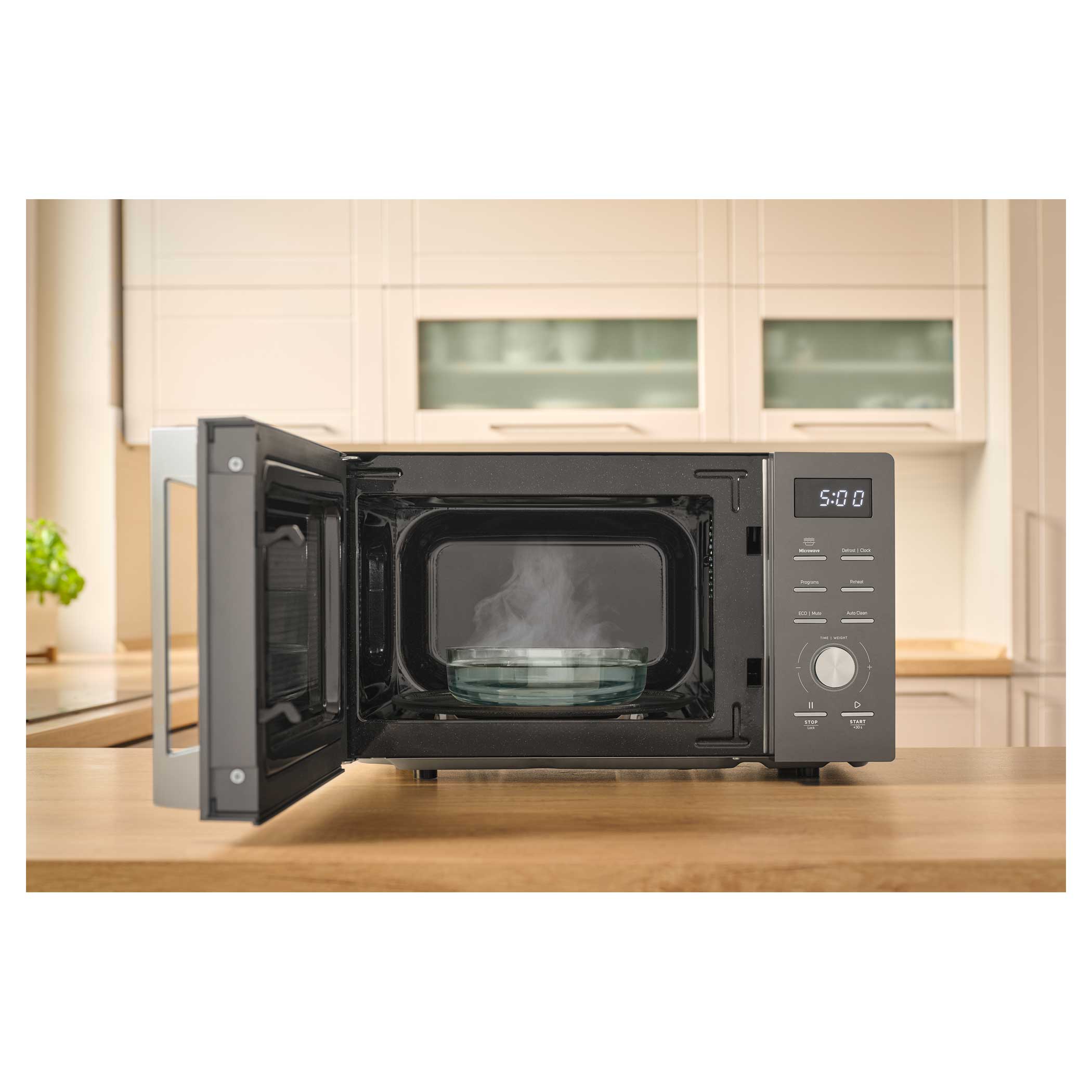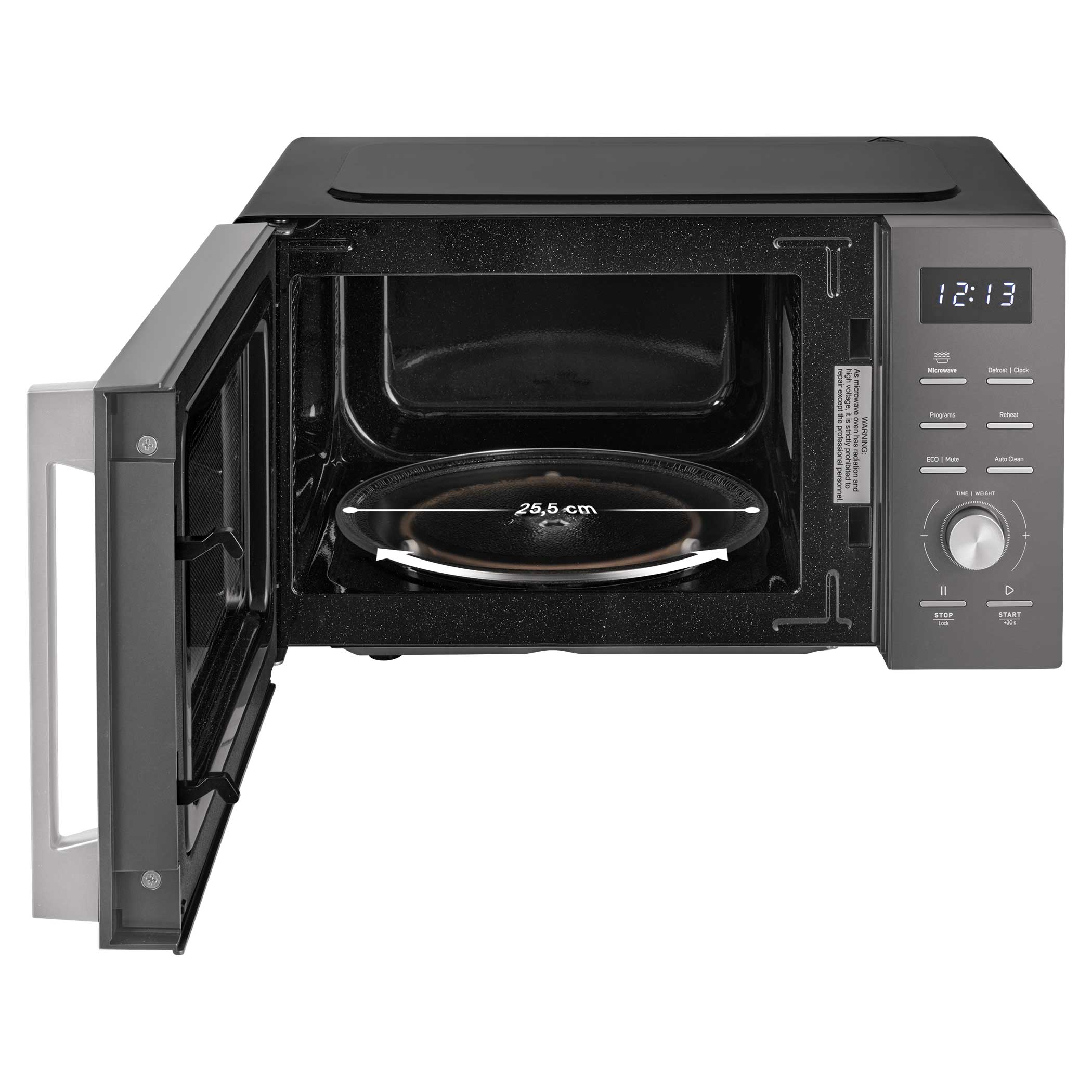 Trouba má kompaktní rozměry, díky nimž se vejde i do menších kuchyní. Její objem 20 l však poskytuje dostatek prostoru pro ohřev jakéhokoli jídla. Na otočný talíř o průměru 25,5 cm bez problému vložíte talíře běžné velikosti i větší nádoby.