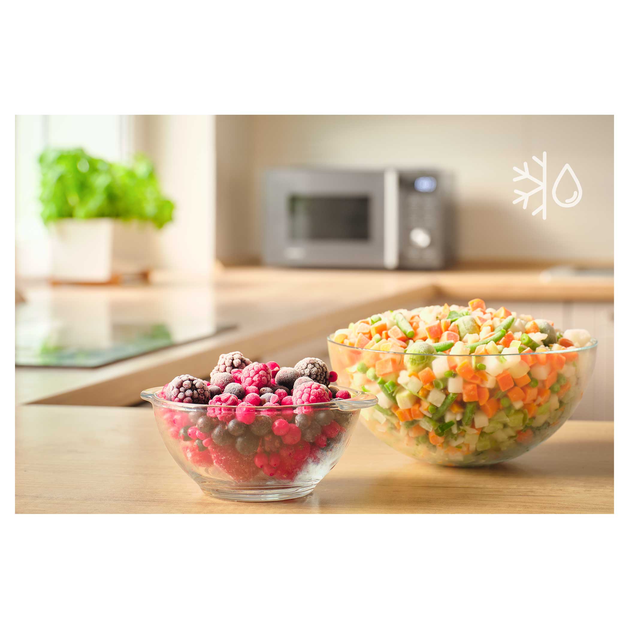 Pokud troubu využijete na mražené potraviny, můžete zvolit režim rozmrazování podle váhy, u něhož zadáte hmotnost potraviny a mikrovlnná trouba podle toho sama přizpůsobí výkon a dobu ohřevu. Nebo zvolíte rozmrazování podle času, v němž je výkon nastaven na rychlé a šetrné rozmrazení.