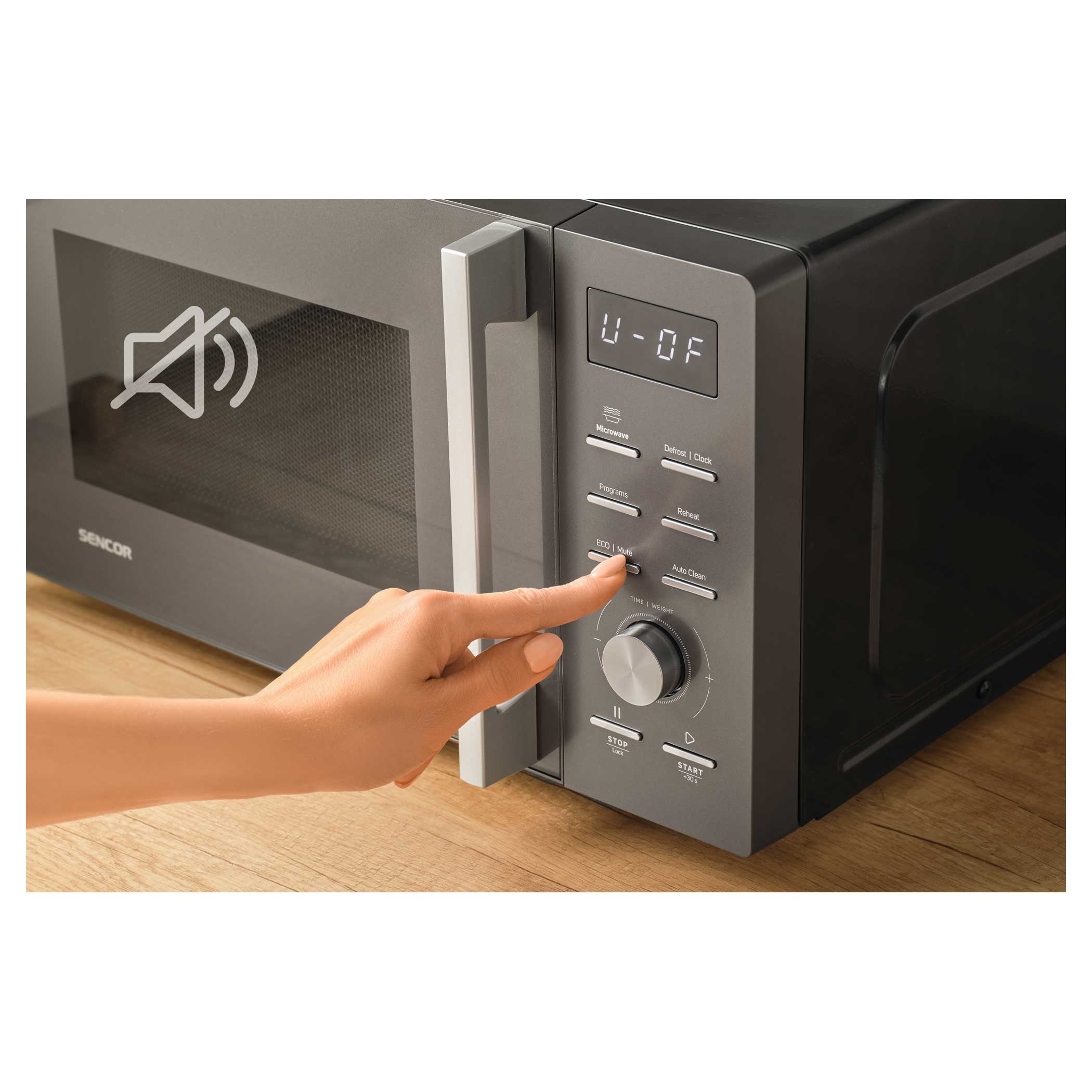 Mikrovlnná trouba je vybavena funkcemi ECO nebo MUTE, které umožňují její úspornější provoz a zároveň přispívají k uživatelsky přívětivému provozu pro bezstarostnou a ničím nerušenou domácnost.