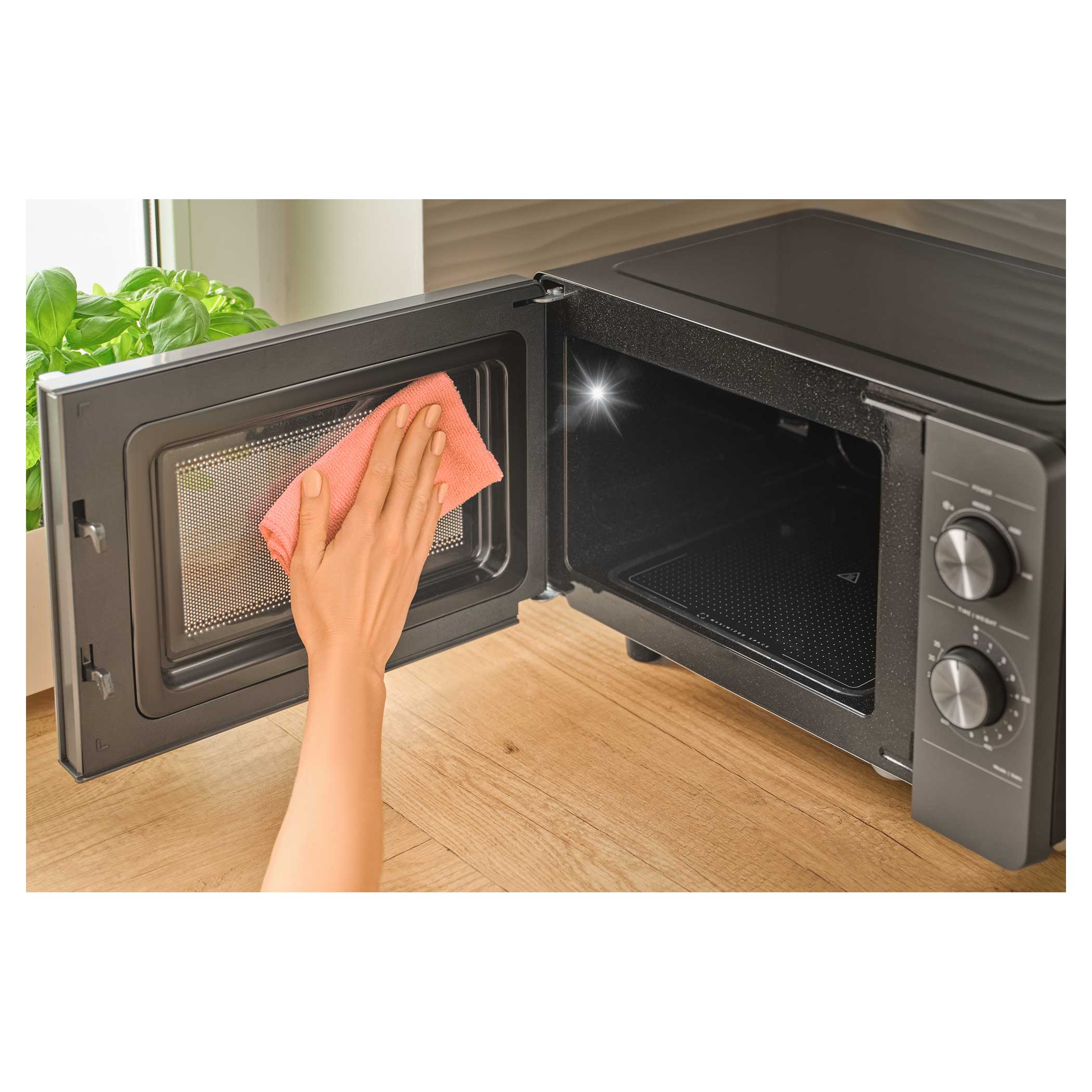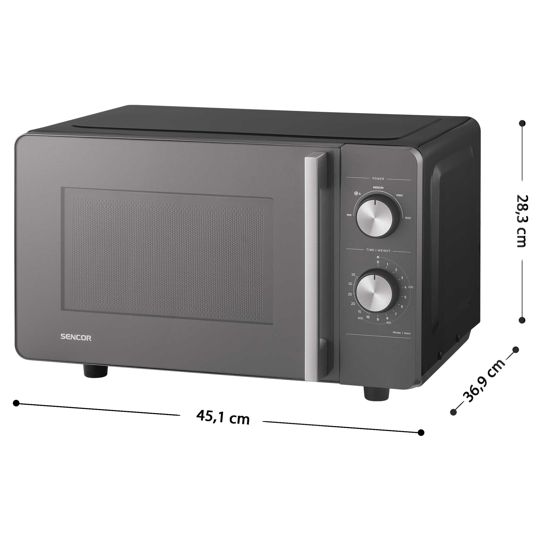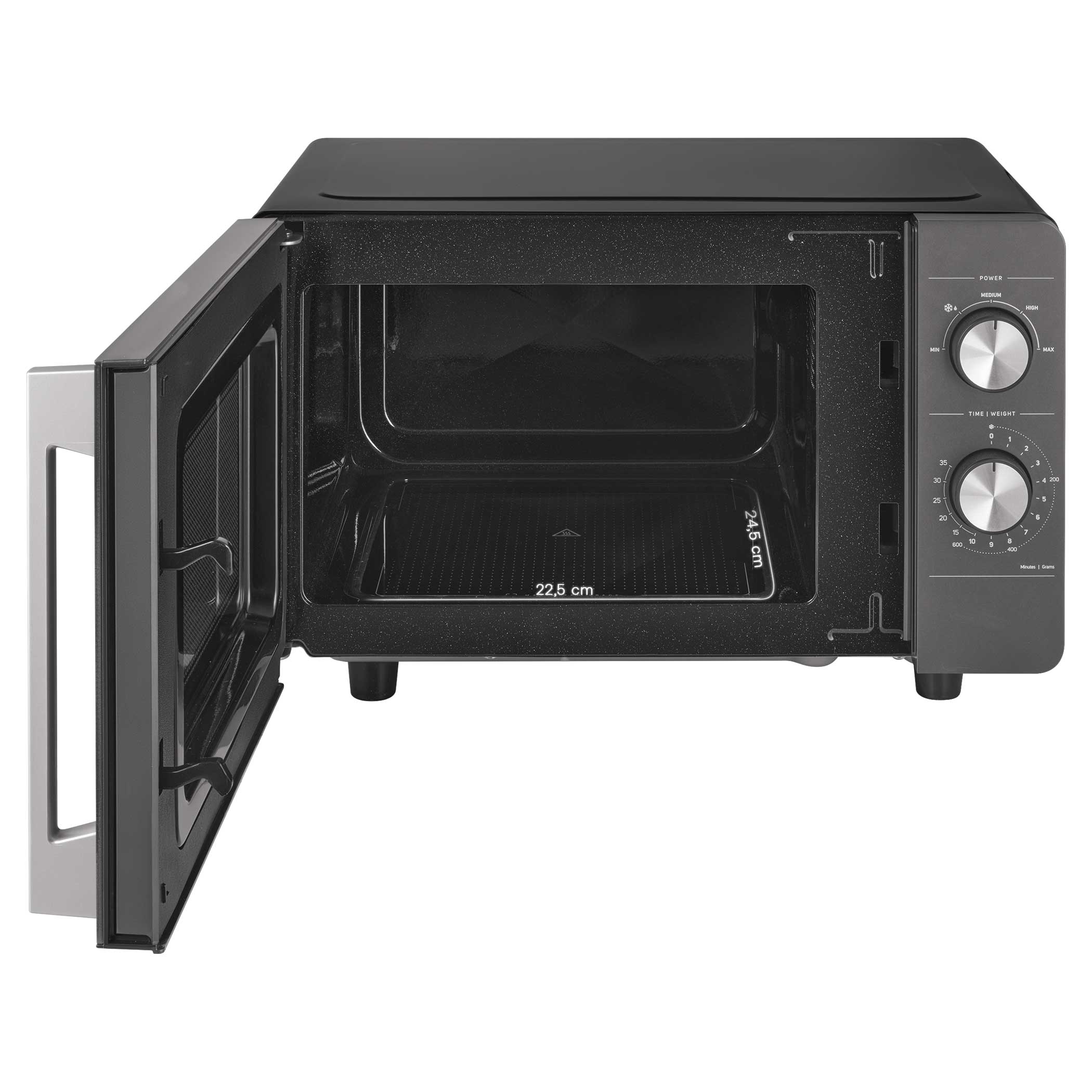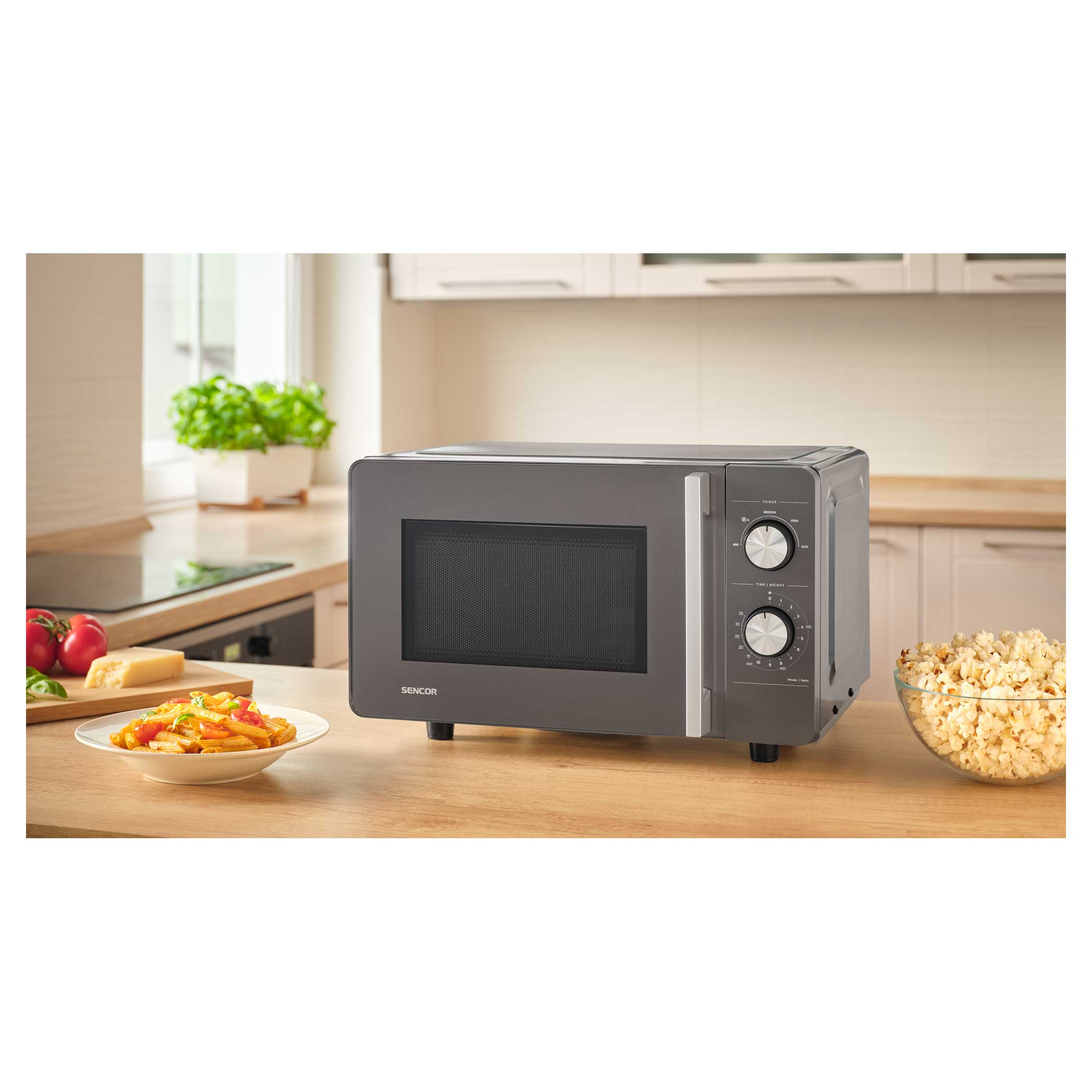 Ovládání je díky dvojici otočných knoflíků intuitivní – první knoflík slouží k nastavení jedné z 5 úrovní výkonu, druhý k nastavení času až na 35 minut. Už žádné složité programy, jednoduše stačí otočit a vařit, ohřívat nebo rozmrazovat.