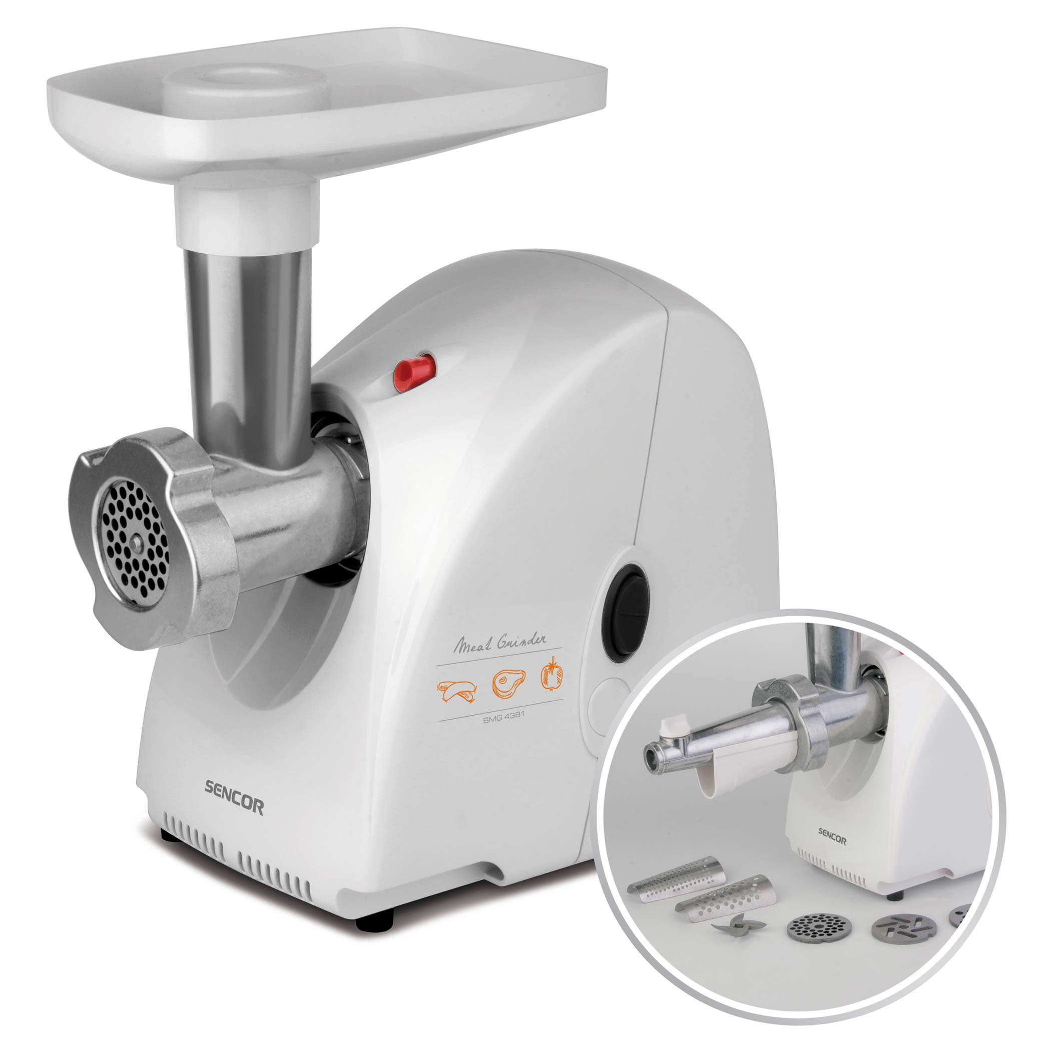3 mlecí disky - hrubý (oválné otvory), střední 7,4 mm, jemný 4,2 mmNástavec na odšťavňování měkkého ovoce (bobuloviny a citrusové plody)/zeleniny