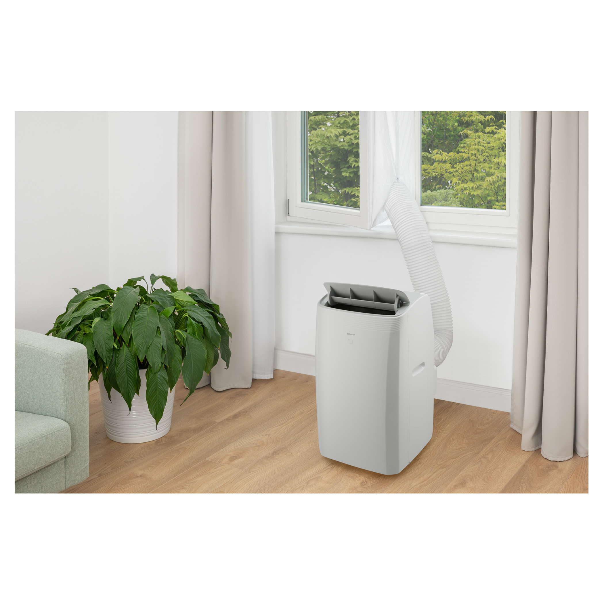 Mobilní klimatizace Sencor SAC MT9078CH je skvělý pomocník v každém počasí. V létě chladí, v zimě topí a ve všech ročních období odvlhčuje. Tento produkt se během chlazení řadí do energetické třídy A++ , a když topí do třídy A+++. Na trhu patří mezi úspornější zařízení. Pro jeho chladící výkon 9 000 BTU/h jej ideálně využijete v místnostech všeho druhu o velikosti 31-35 m². Klimatizace se dá ovládat na dálku díky propojení vašeho mobilního telefonu s Wi-Fi a aplikací Sencor HOME. Doma nebo v kanceláři Sencor SAC MT9078CH pohodlně obsloužíte na intuitivním dotykovém ovládacím panelu s diplejem či dálkovým ovladačem. Zařízení nabízí 5 režimů: Chlazení, Odvlhčování, Ventilace, Topení, Smart i funkce Časovače, režim Spánku a další.