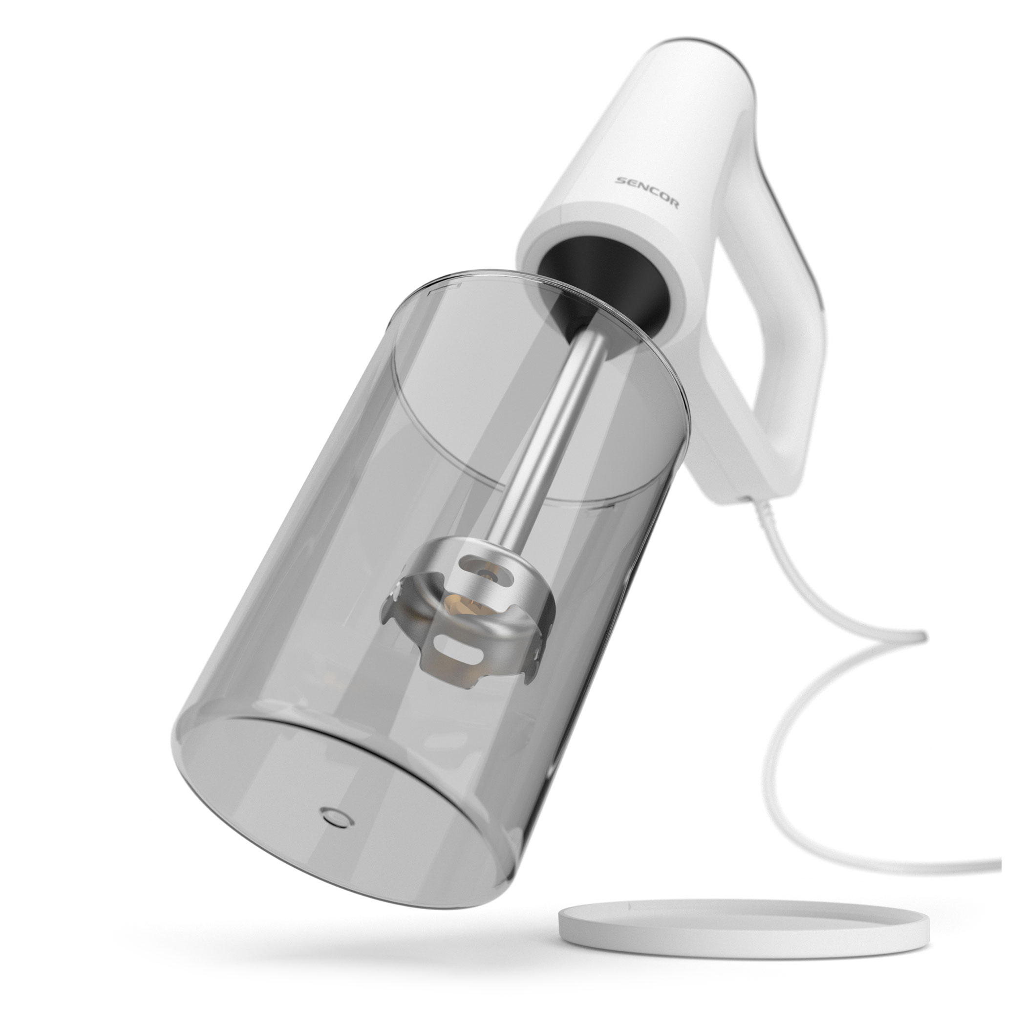 - Tyčový mixér s mixovací nádobou 1,5 l, víkem a dvěma čepelemi s titanovým povrchem