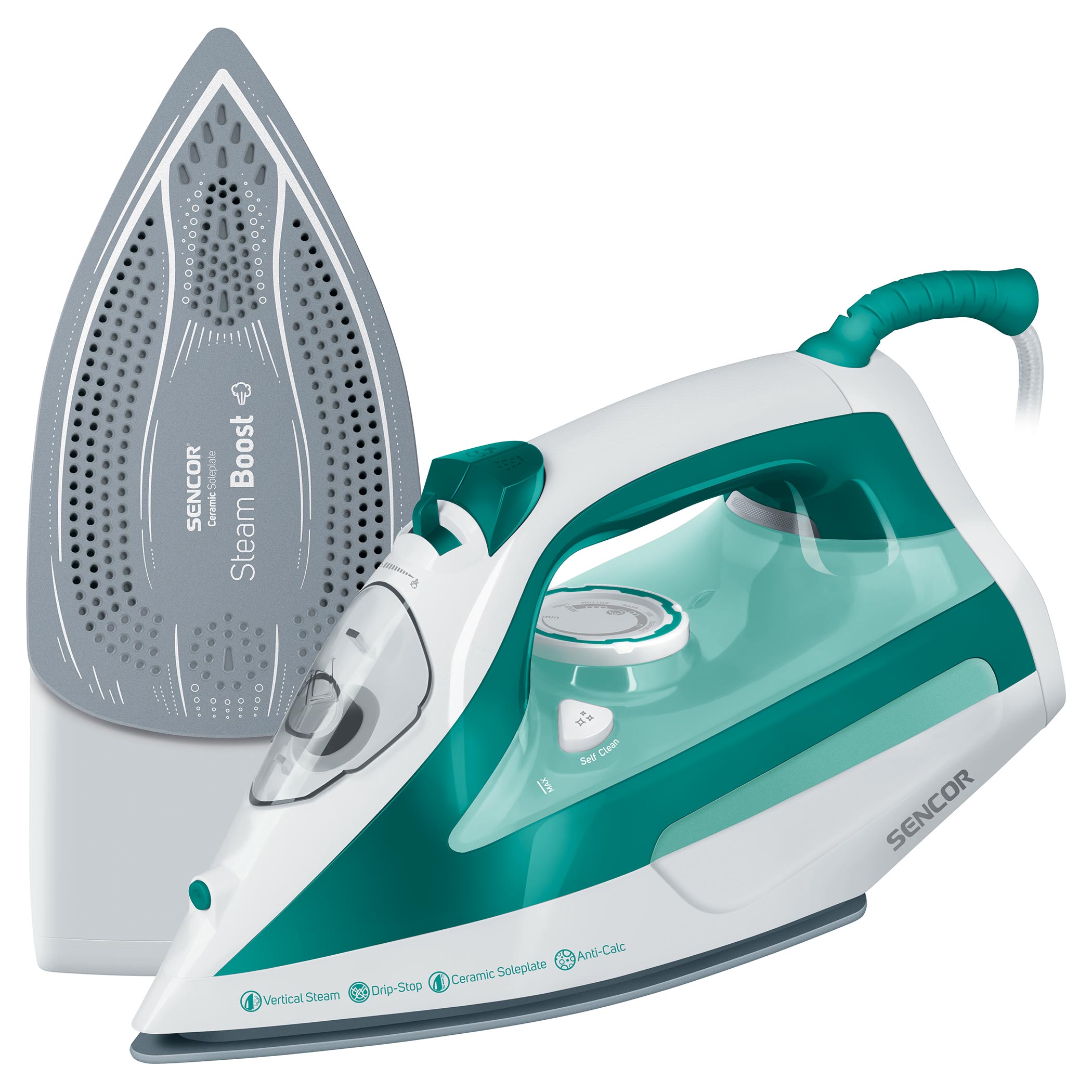 Aby byly veškeré minerální usazeniny z vaší žehličky odstraněny, a její životnost tím pádem co nejvíce prodloužena, aplikovali v Sencor do tohoto produktu samočisticí systém Self-Clean. Pokud ho praktikujete pravidelně, bude vnitřek vašeho zařízení zbaven veškerých vápenatých nánosů. Jakmile na žehličce spustíte režim Self-Clean, začne se z otvorů uvolňovat horká voda a pára společně s nežádoucími minerály.