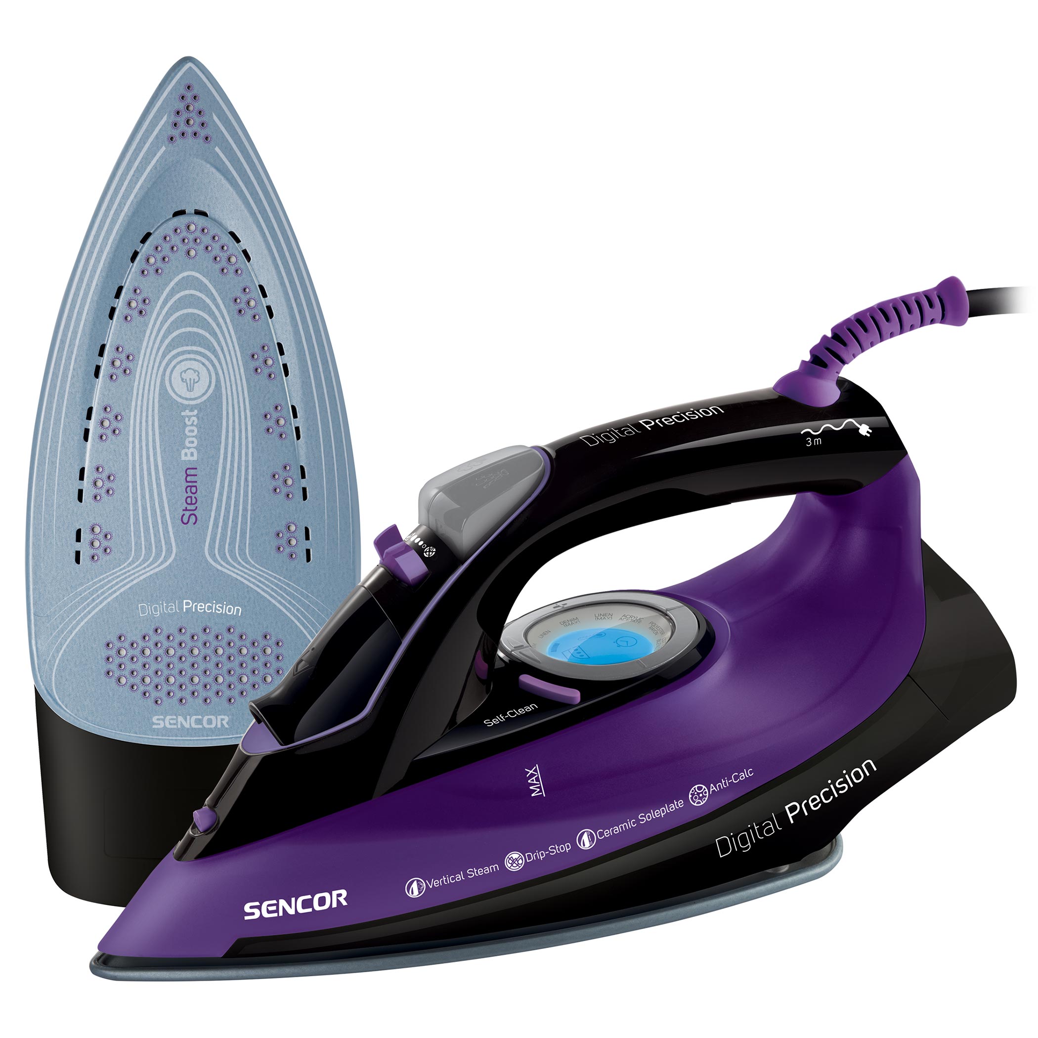 Ušetřete svůj čas a usnadněte si práci! Sencor mě vyrobil jako napařovací žehličku SSI 9000BK. Na první pohled zaujmu propracovaným designem, který ukrývá super vlastnosti. Jsem vybavena přehledným digitálním displejem se skvělými pozorovacími úhly. S ním dokážu přizpůsobit teplotu všem materiálům. Navíc, mám perfektní výkon 2700 W!Objevte výhody keramické žehlící plochy