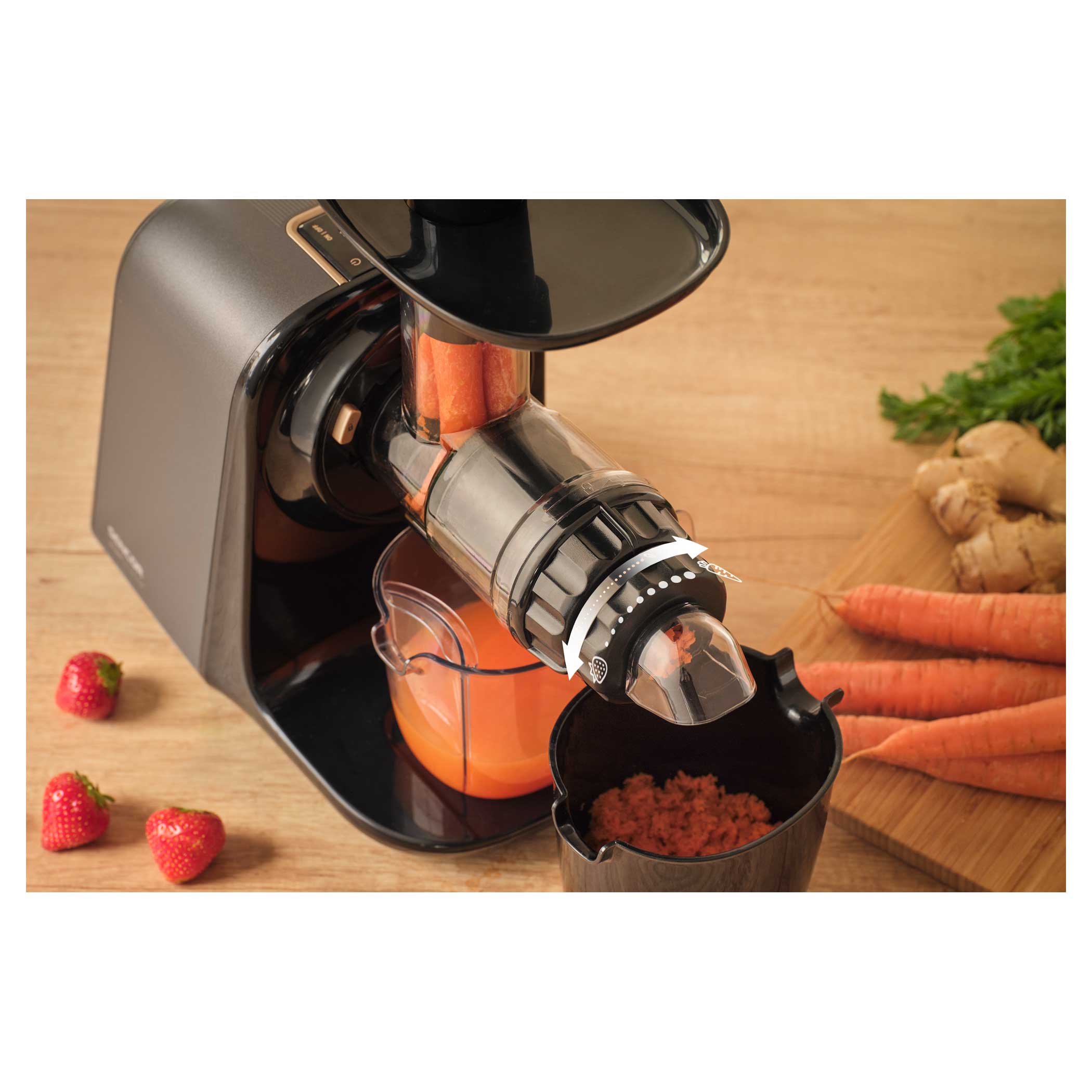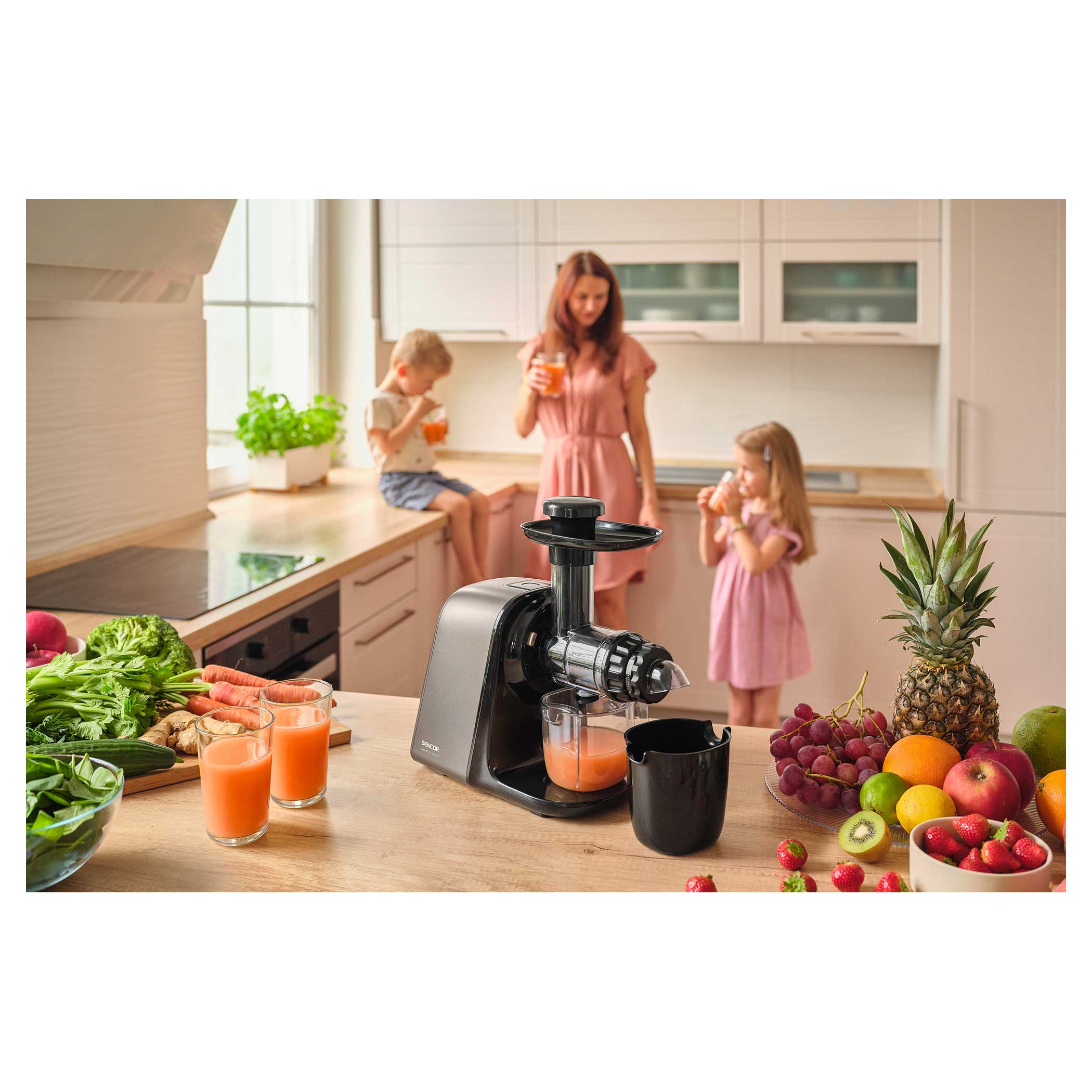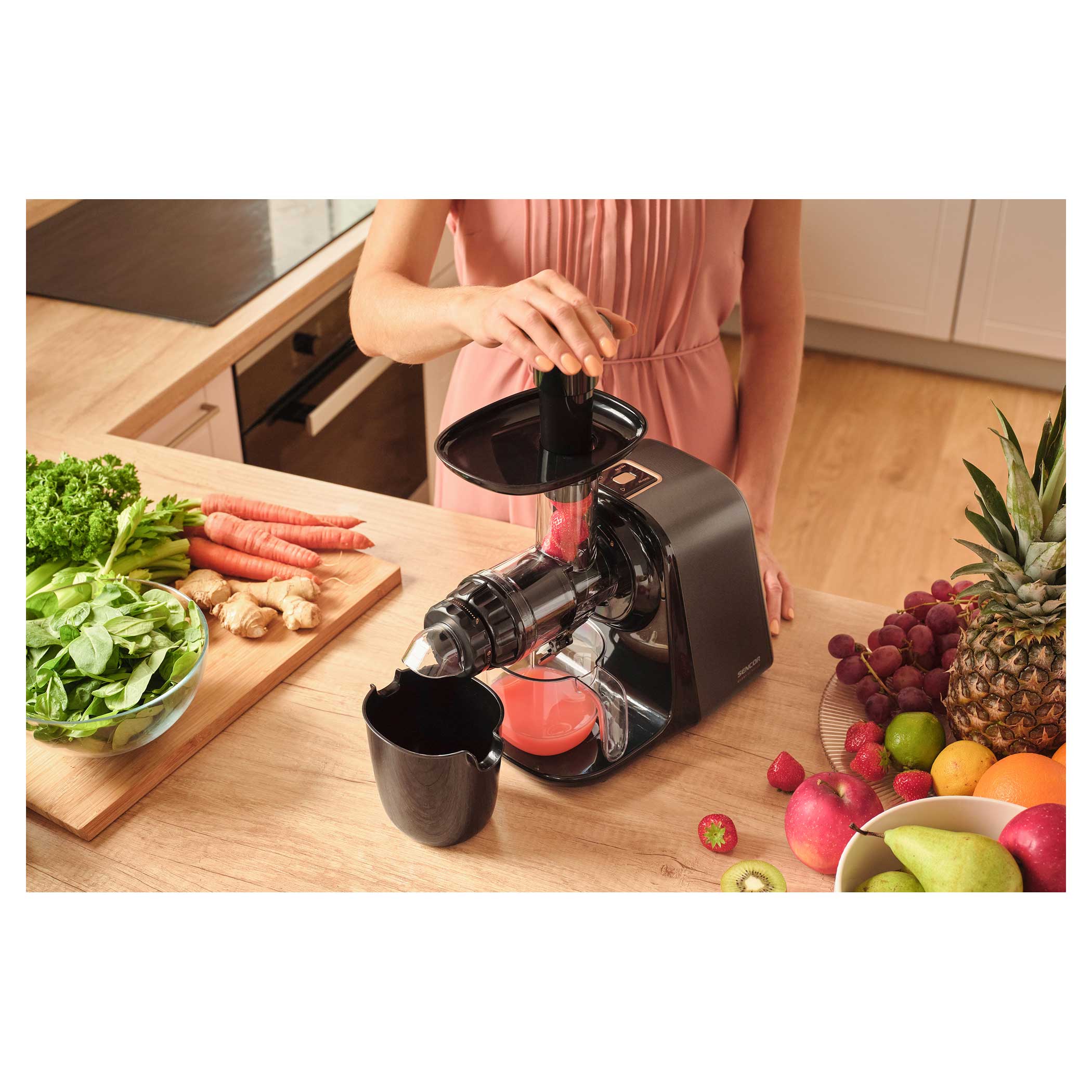 Šťávu pečlivě a bez problému vylisuje z jablek, citrusů, exotických plodů, rybízu, mrkve, listové zeleniny, bylinek a dalších druhů ovoce a zeleniny. Díky 65–80 ot./min získá ze surovin čerstvou šťávu plnou vitamínů a chuti.Tichý výkonný motor