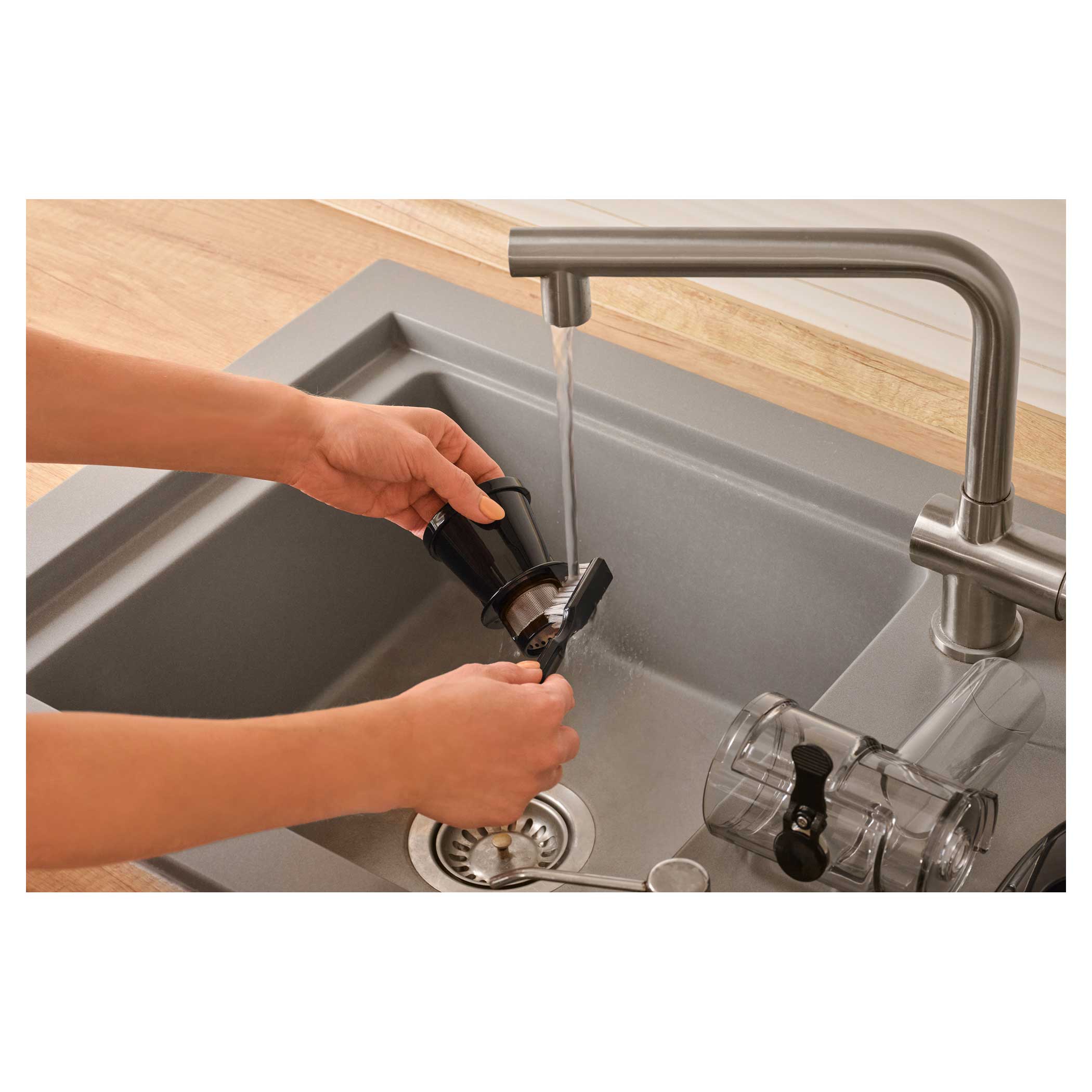 Po použití odšťavňovač rychle a bez námahy rozeberete. Plastové díly můžete umýt v myčce a ostatní komponenty stačí opláchnout teplou vodou. Pro důkladné odstranění nečistot můžete použít i praktický čisticí kartáček, který je součástí balení.Zdravý životní styl s odšťavňovačem