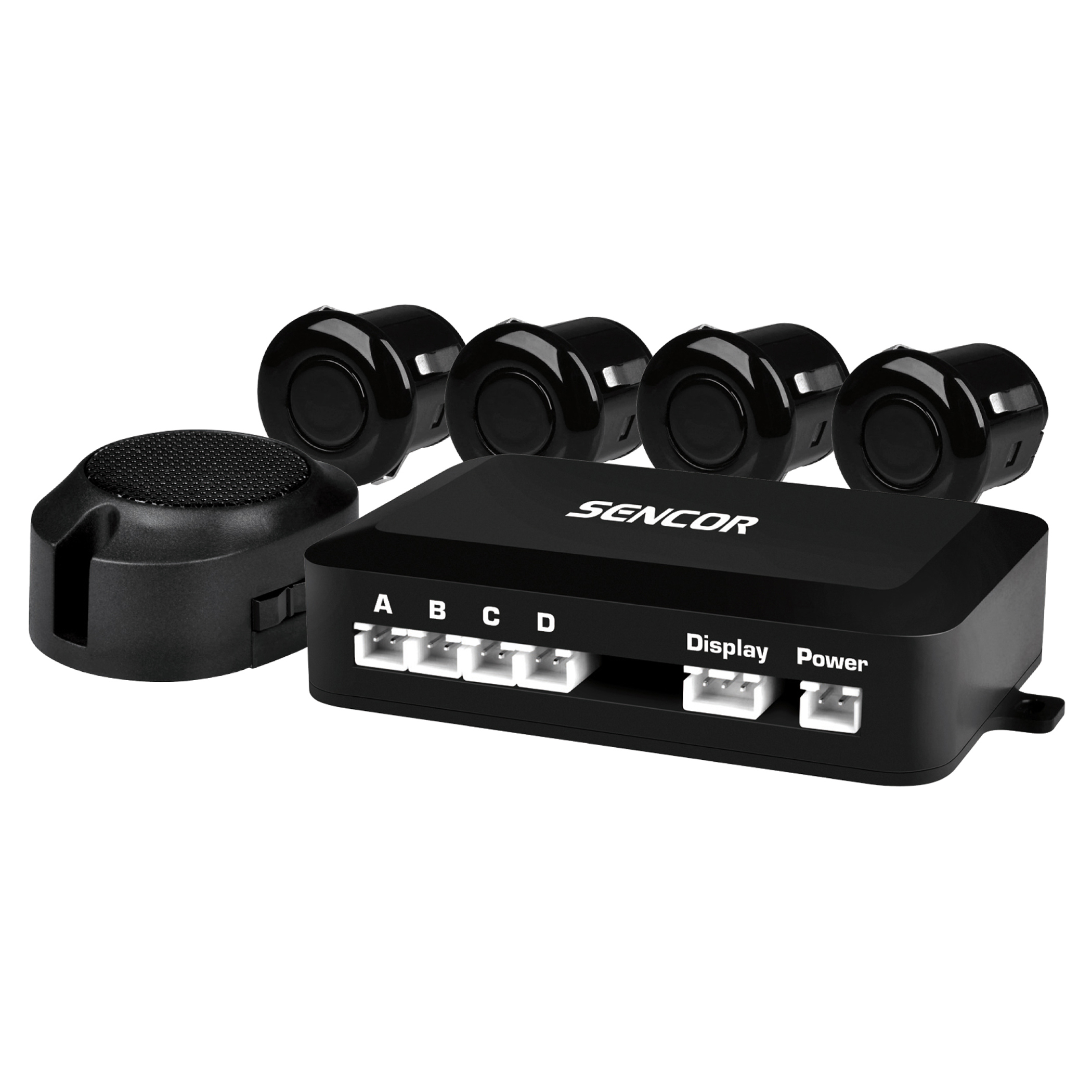- Balení obsahuje: 1 řídící modul, 4 ultrazvukové senzory (leskle černé), 1 akustický indikátor, 1 napájecí kabel,
