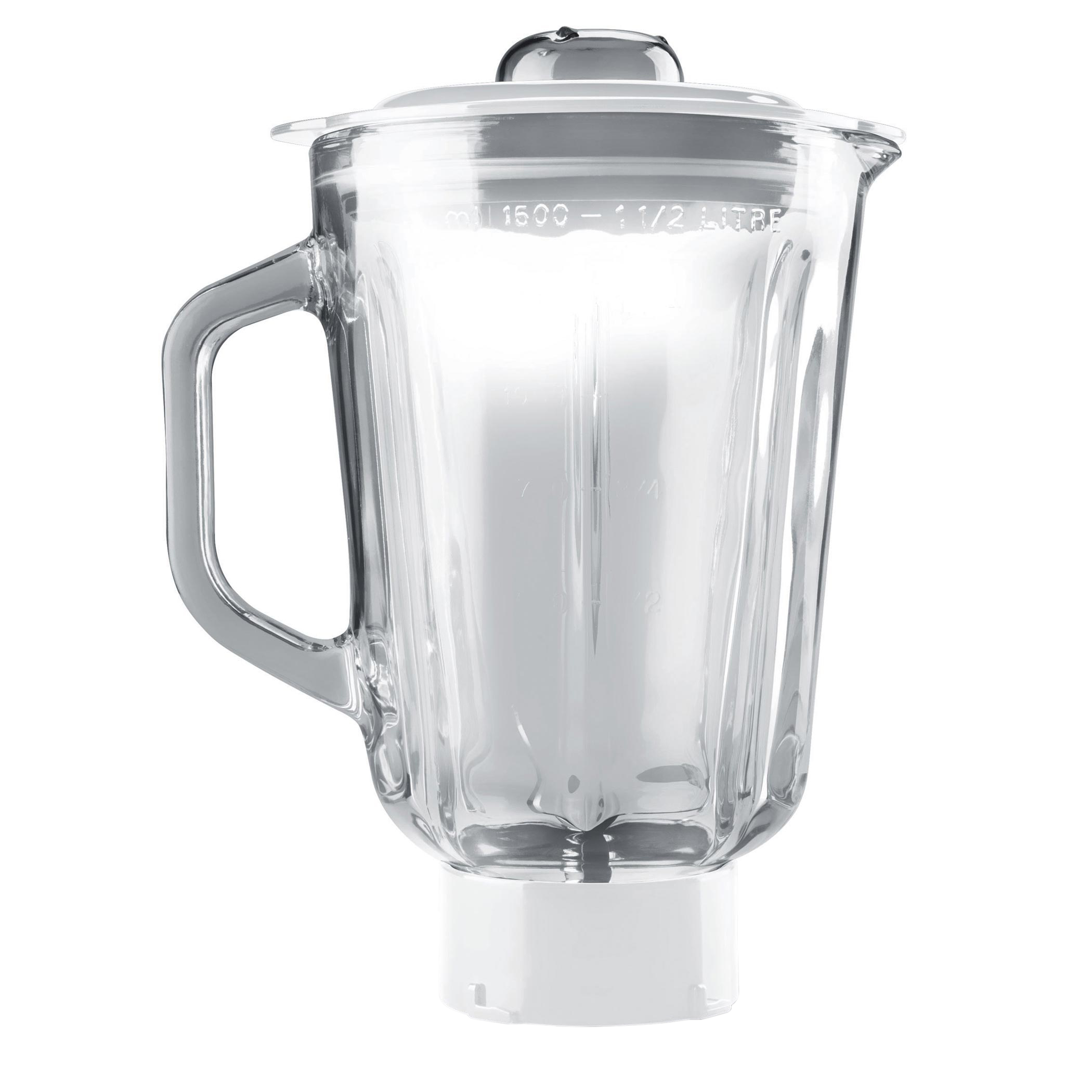 Skleněný 1,5 l mixér pro kuchyňské roboty.