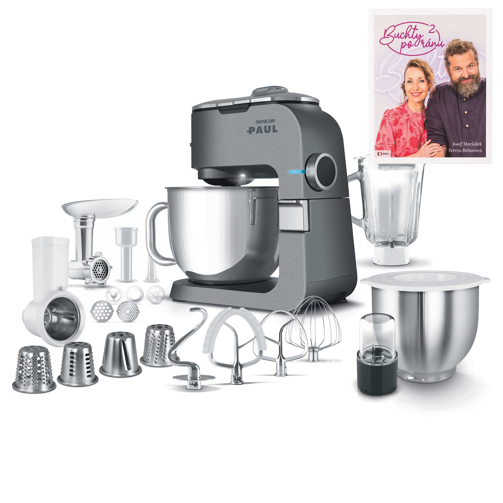 Hledáte kuchyňského robota, který vám usnadní práci a lehce se ovládá? Výkonný robot Sencor STM 7970 zvládne zpracovat jakýkoliv typ těsta, umí mixovat a pomůže vám s přípravou smoothie, namele maso, nastrouhá suroviny, ale i nadrtí koření. Tělo robota je celokovové včetně kovových převodů, což zaručuje kvalitu i dlouhou životnost přístroje. Navíc silný 1 700W motor, funkce Sencor Smart Power & Energy či planetární systém míchání zajistí plynulé a precizní promíchání ingrediencí a dosažení optimálních otáček pro nejlepší výsledek. K robotu jsou dodávány kvalitní nástavce, 1,5l skleněný mixér i 2 nerezové hnětací nádoby o objemu 6 a 6,5 l pro zpracování velkého množství surovin.Hlavní parametry produktu: