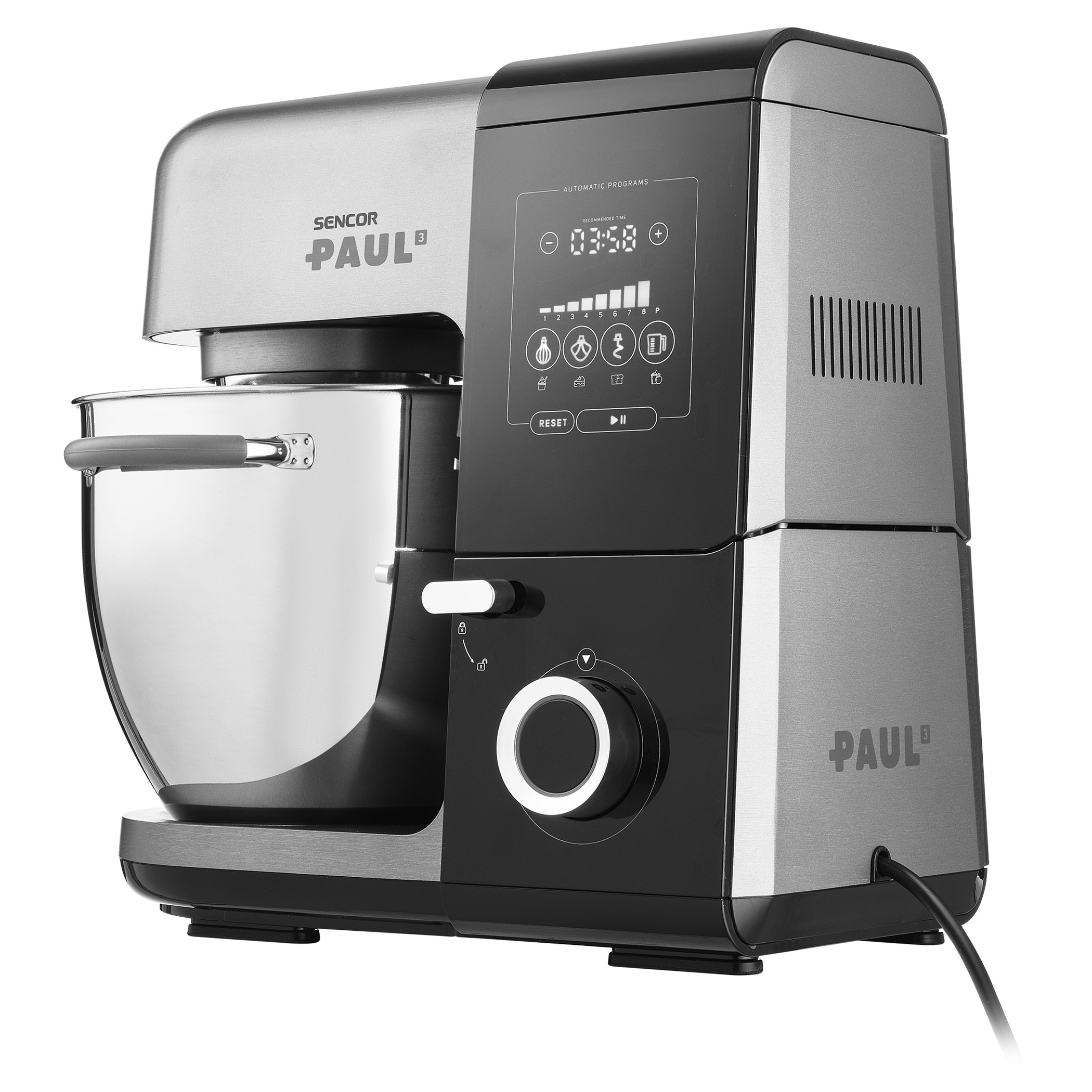 Kuchyňský robot vás překvapí svým všestranným využitím a elegantním provedením. Stane se vaším nepostradatelným pomocníkem při přípravě různých jídel a pečení. Pojme až 1 500 gramů mouky a všechny ingredience k tomu. Moderní ovládací panel vás navede k volbě správného programu snadno a intuitivně. Má planetární systém míchání, díky kterému bude těsto dokonale umíchané a krémy hladké bez hrudek. Je vybaven bohatým příslušenstvím s širokou škálou využití. Rozmixuje, našlehá, uhněte, zamíchá i namele. Je vybaven extra silným motorem o výkonu 1 800 W a celokovovými převody s funkcí Smart Power & Energy pro optimální otáčky.