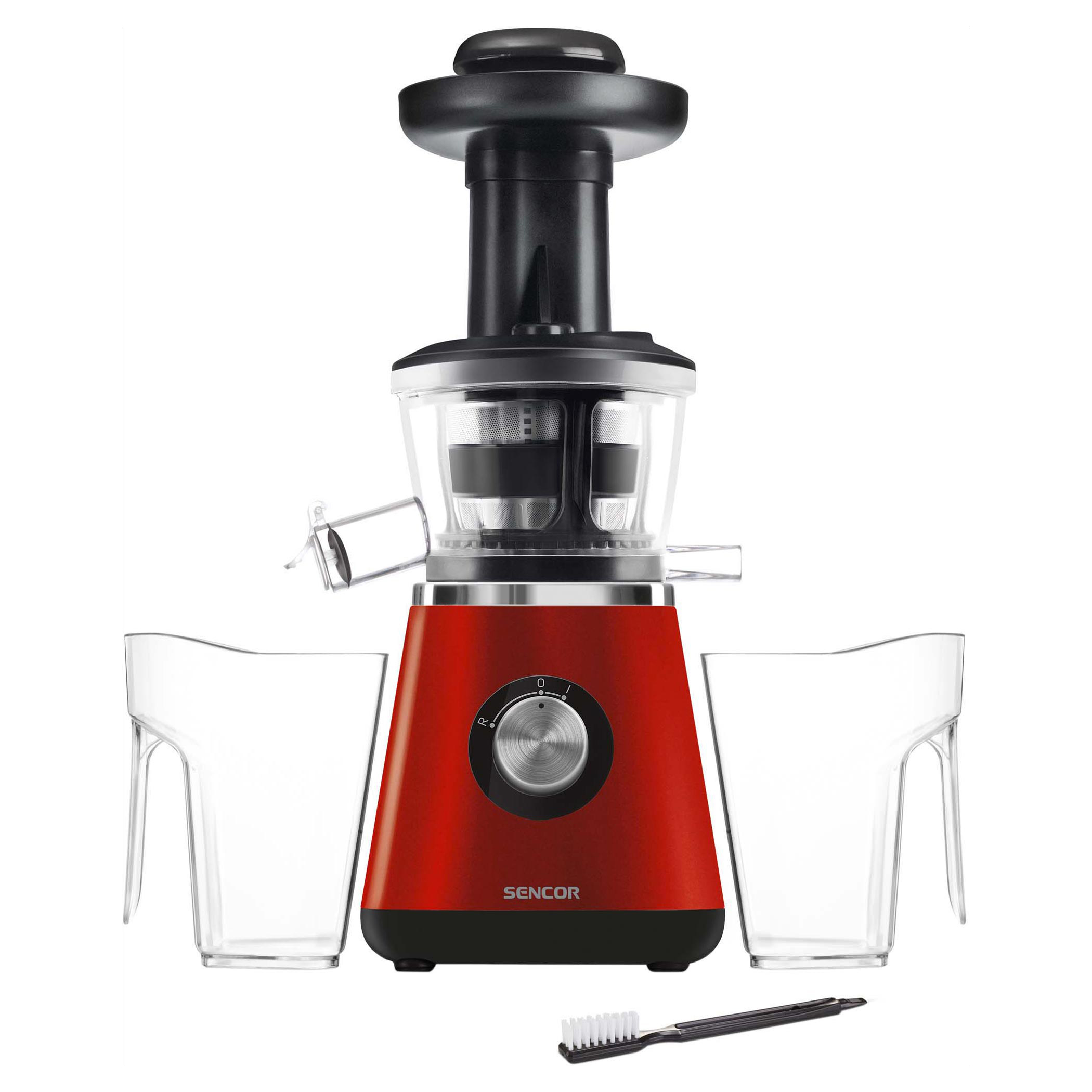 Představuji se vám jako šnekový odšťavňovač SSJ 4042RD od Sencor a mohu se pyšnit robustním motorem o 400 W pro souvislé čtvrthodinové odšťavňování. Rádi sázíte na svěžest a maximum vitamínů? Pak jsem pro vás tou správnou volbou. Řadím se mezi odšťavňovače s vysokou výkonností, efektivním odšťavňováním a vkusným designem. Získáte mě vždy za přijatelnou cenu a navíc ve dvou barvách. Tentokrát jsem se převlékl do červené a černé.