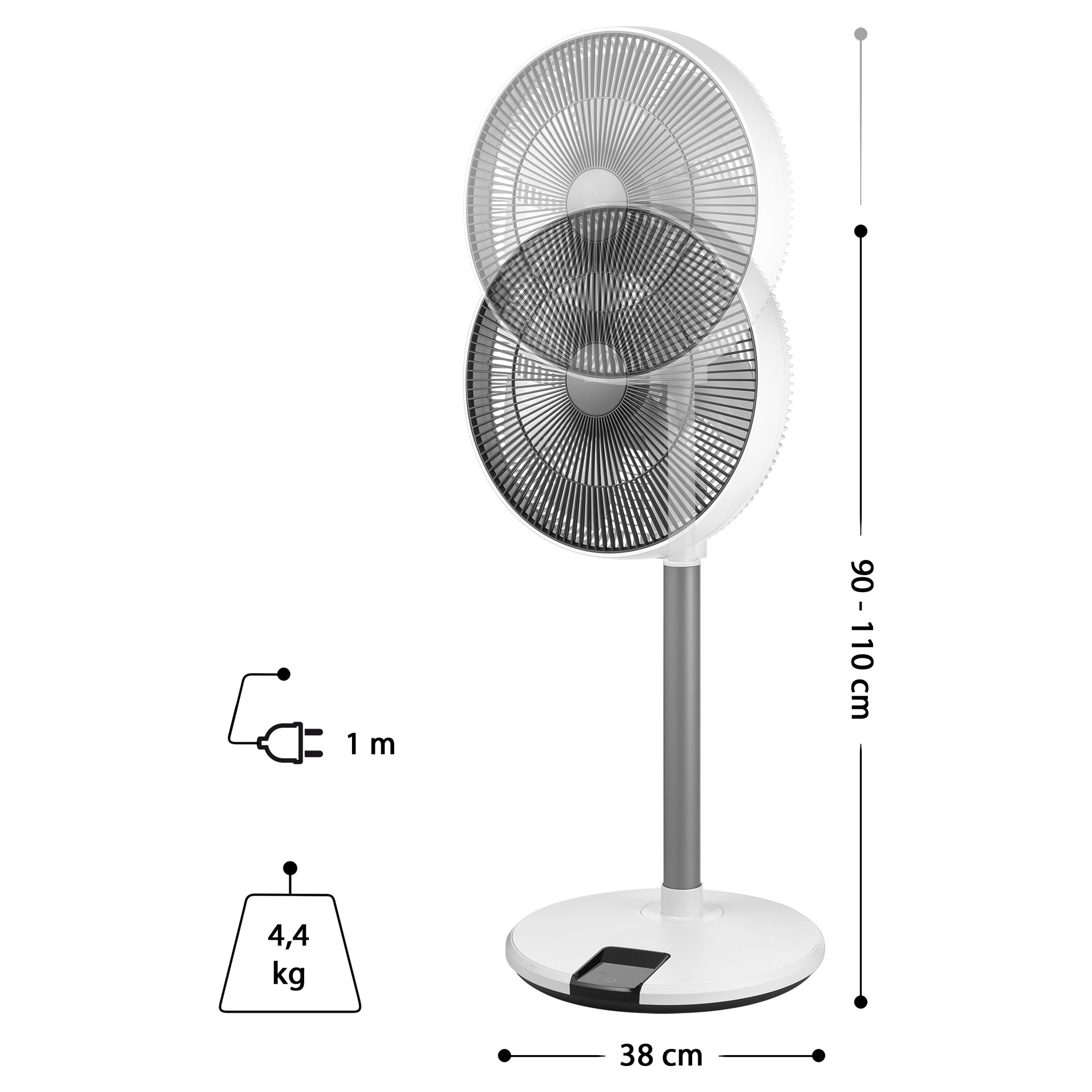 - Průměr podstavce: 38 cm