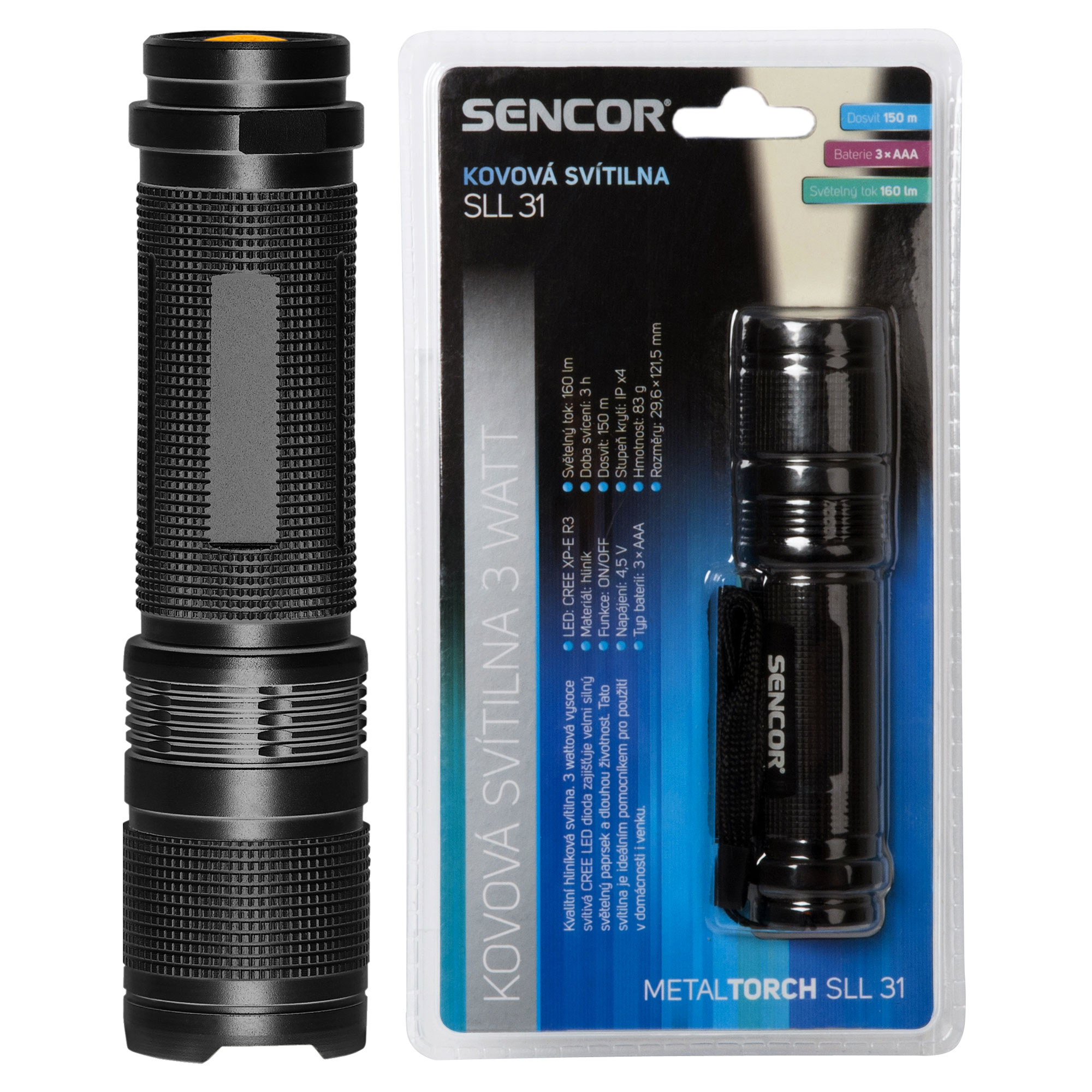3 wattová vysoce svítivá CREE LED dioda zajišťuje velmi silný světelný paprsek a dlouhou životnost