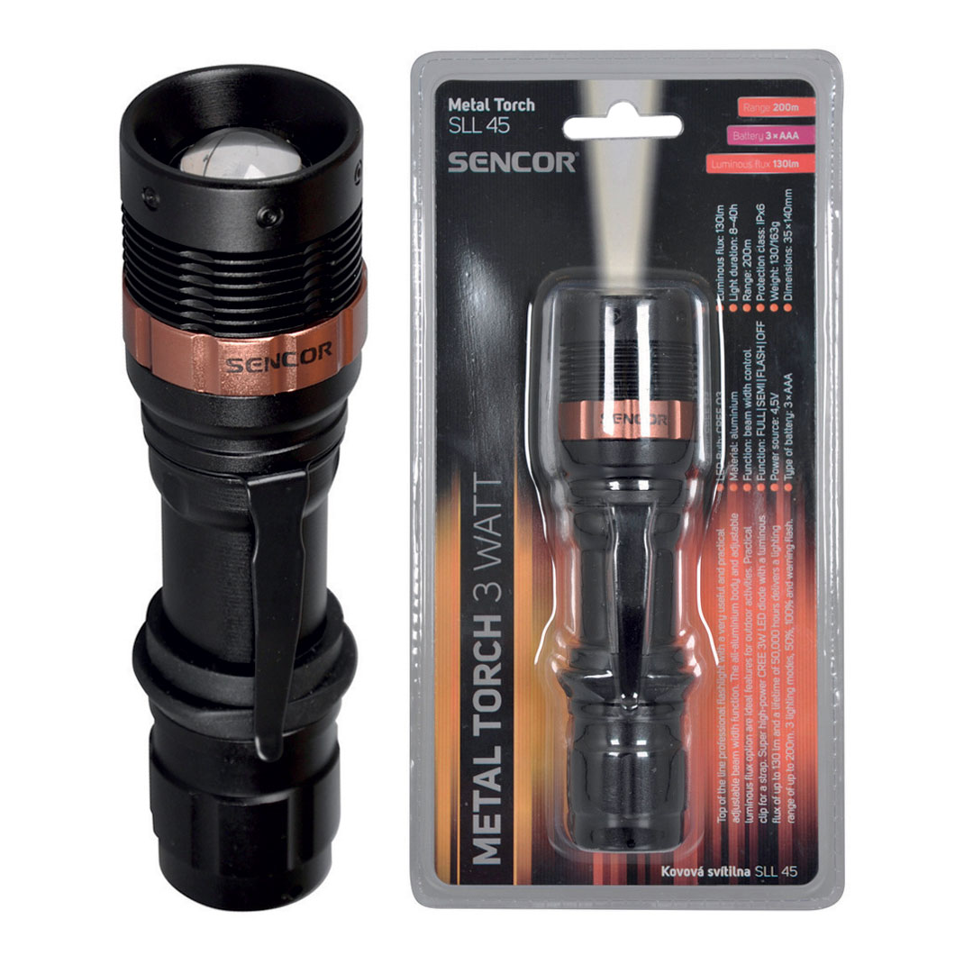 Špičková profesionální svítilna s velmi užitečnou regulací šířky paprsku. Celohliníkové tělo a možnost regulace intenzity světelného toku jsou idealní vlastnosti pro outdoor aktivity. Praktický klip na popruh. Super svítivá 3 W CREE LED dioda se světelným tokem až 130 lm a životností 50 000 hod. zajišťuje dosvit až na 200m. 3 režimy svícení, 50%, 100% a výstražné blikání.