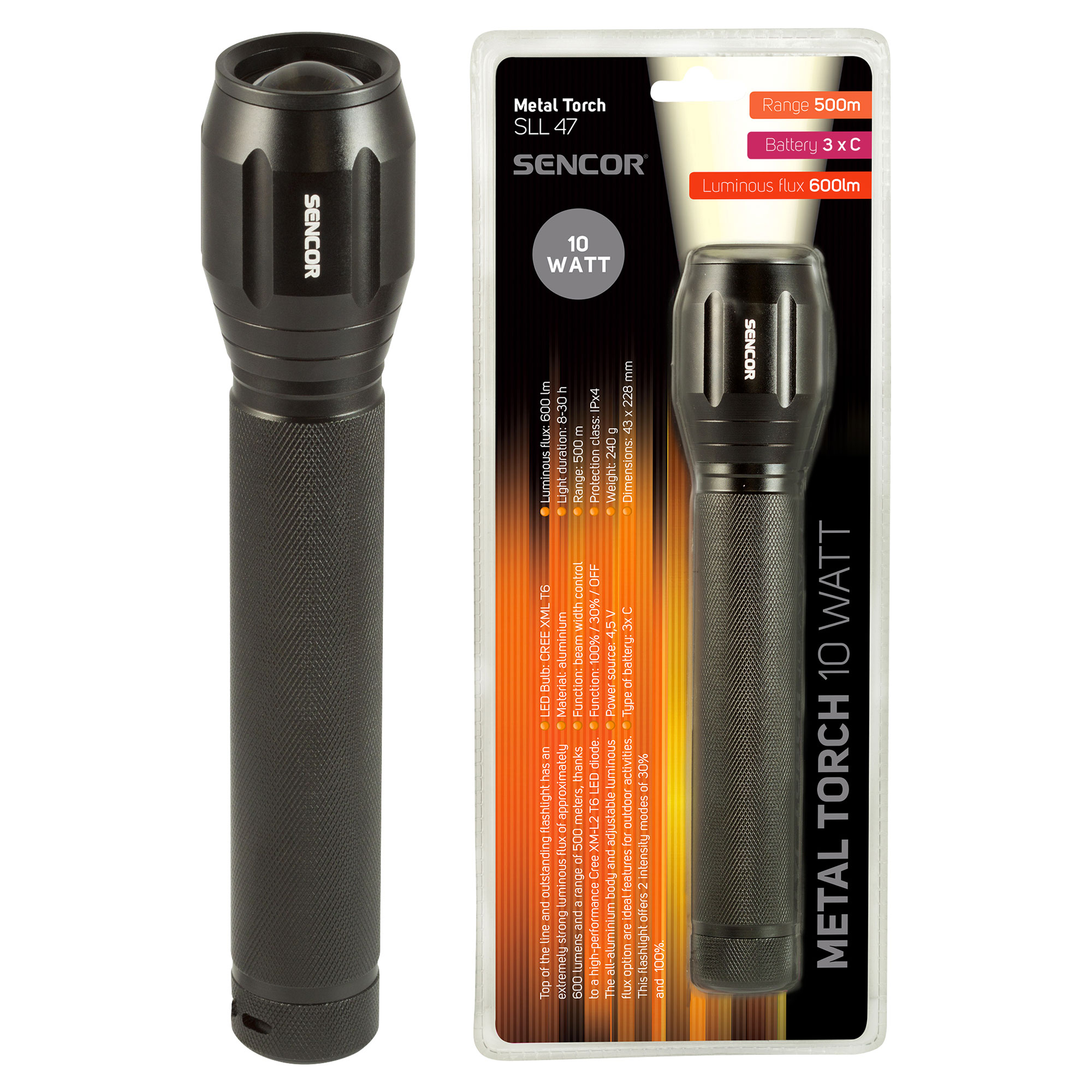 Špičková a nejsilnejší v řadě profesionální svítilna s velmi užitečnou regulací šířky paprsku. Celohliníkové tělo a možnost regulace intenzity světelného toku jsou idealní vlastnosti pro outdoor aktiviny. Praktický klip na popruh. Super svítivá 10 W CREE LED dioda se světelným tokem až 600 lm a životností 50 000 hod. zajišťuje dosvit až na 500m. 2 režimy svícení,100% a 30%.