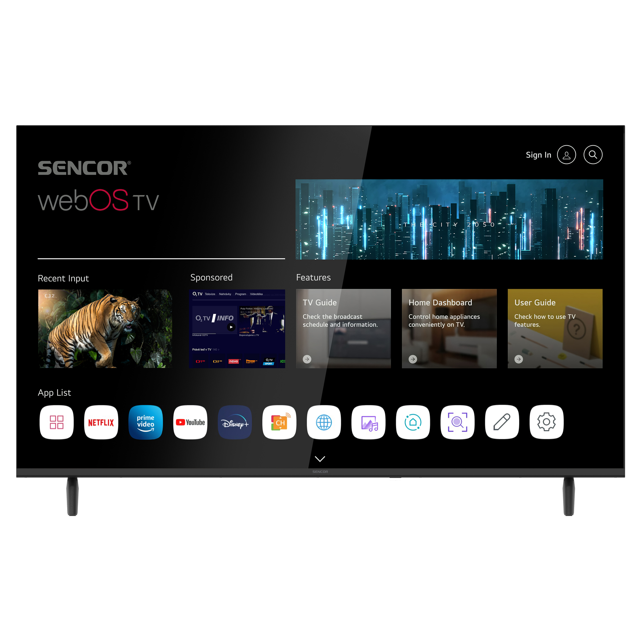 webOS SMART TV rozhraníHBO MAX, DISNEY+, Netflix, Apple TV, Prime Video, Skylink live TV , Youtube, Spotify, Deezer