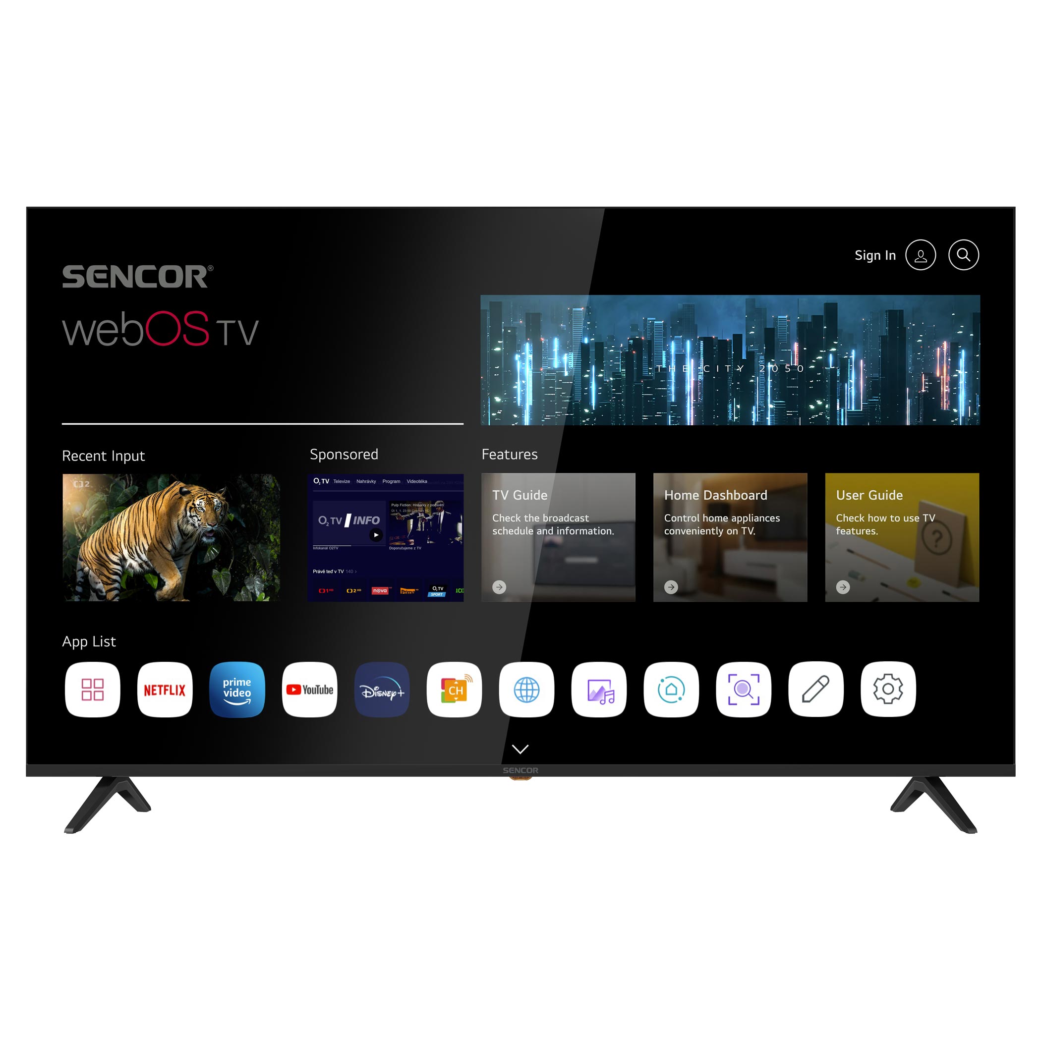Systém WebOS, zkušenostmi ověřený operační systém vyvinutý společností LG, je velice uživatelsky komfortní, svižný a intuitivní. Pokud jde o zastoupení aplikací, ty nejdůležitější v tomto operačním systému nechybí. Rovněž máte přístup do filmoték Netflix či Amazon Prime video, Skylink live TV a nechybí ani přístup ke službám IPTV poskytovatelů. Systém běží na čtyř jádrovém procesoru ARM Cortex.Design i pohodlí s Magickým ovladačem