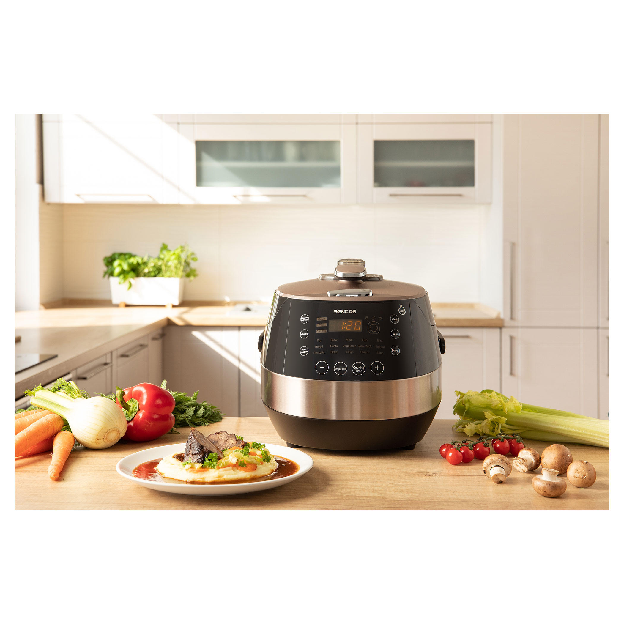 Rozlučte se s několikahodinovým vařením! Jsem Sencor elektrický tlakový hrnec SPR 4000BK, který zastane práci za elektrický, plynový, indukční sporák i troubu. Oproti běžným sporákům jsem o více jak polovinu efektivnější a především rychlejší. Uspořím mnoho času, a to s naprostým minimem spotřebované energie. S objemem 4 l dokážu uspokojit i šestičlennou rodinku. Můžete se na mě spolehnout v každé situaci, nabízím totiž širokou škálu zajímavých funkcí.