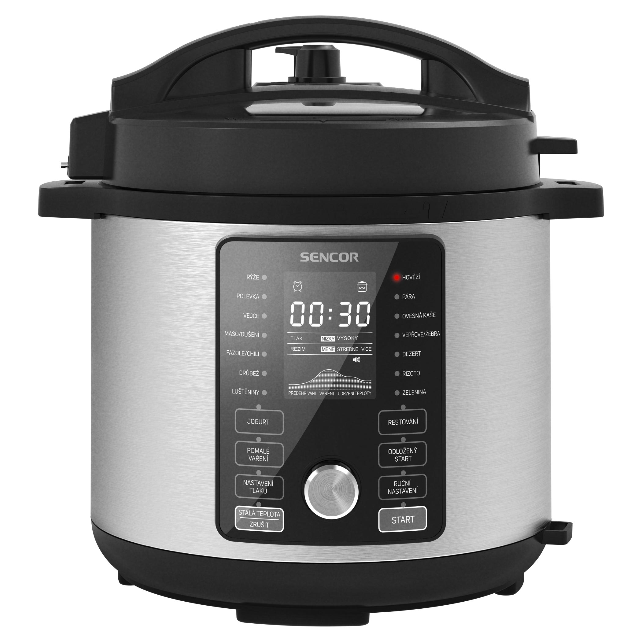 Od přípravy po servírování v rekordním časeZkraťte dobu vaření o polovinu a věnujte se příjemnějším činnostem. Elektrický tlakový hrnec Sencor SPR 6600SS je neocenitelným pomocník do každé kuchyně. Ovládací panel s velkým LCD displejem je kompletně v češtině. Nastavení je tedy intuitivní a velmi jednoduché. Hrnec vyniká vysokým výkonem 1 000 W. Disponuje velkorysým objemem 5,6 litrů, a proto se skvěle hodí i do početnějších rodin. Vyberte si jeden ze 17 přednastavených programů a uvařte nedělní oběd i pro náročné strávníky. Dle pokrmu lze nastavit vysokou nebo nízkou úroveň tlaku. Ochranu během použití zajišťuje vícenásobný bezpečnostní systém s ventilovými uzávěry.