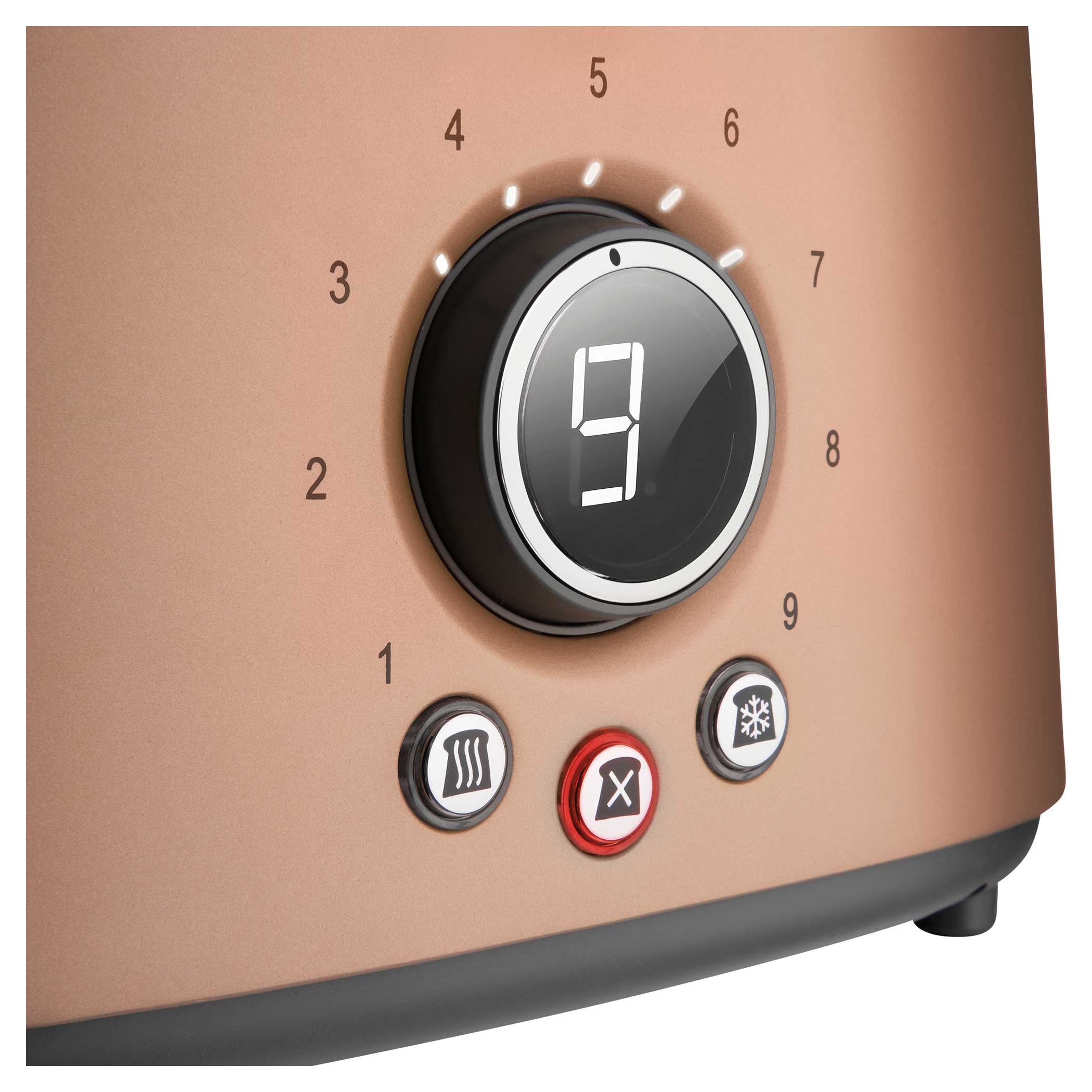 Vše snadno navolíte pomocí ovládání na přední straně topinkovače, které je navíc obohaceno o LED displej s indikátorem provozu. Přehledně tak vidíte stupeň intenzity opékání a zvolený program.