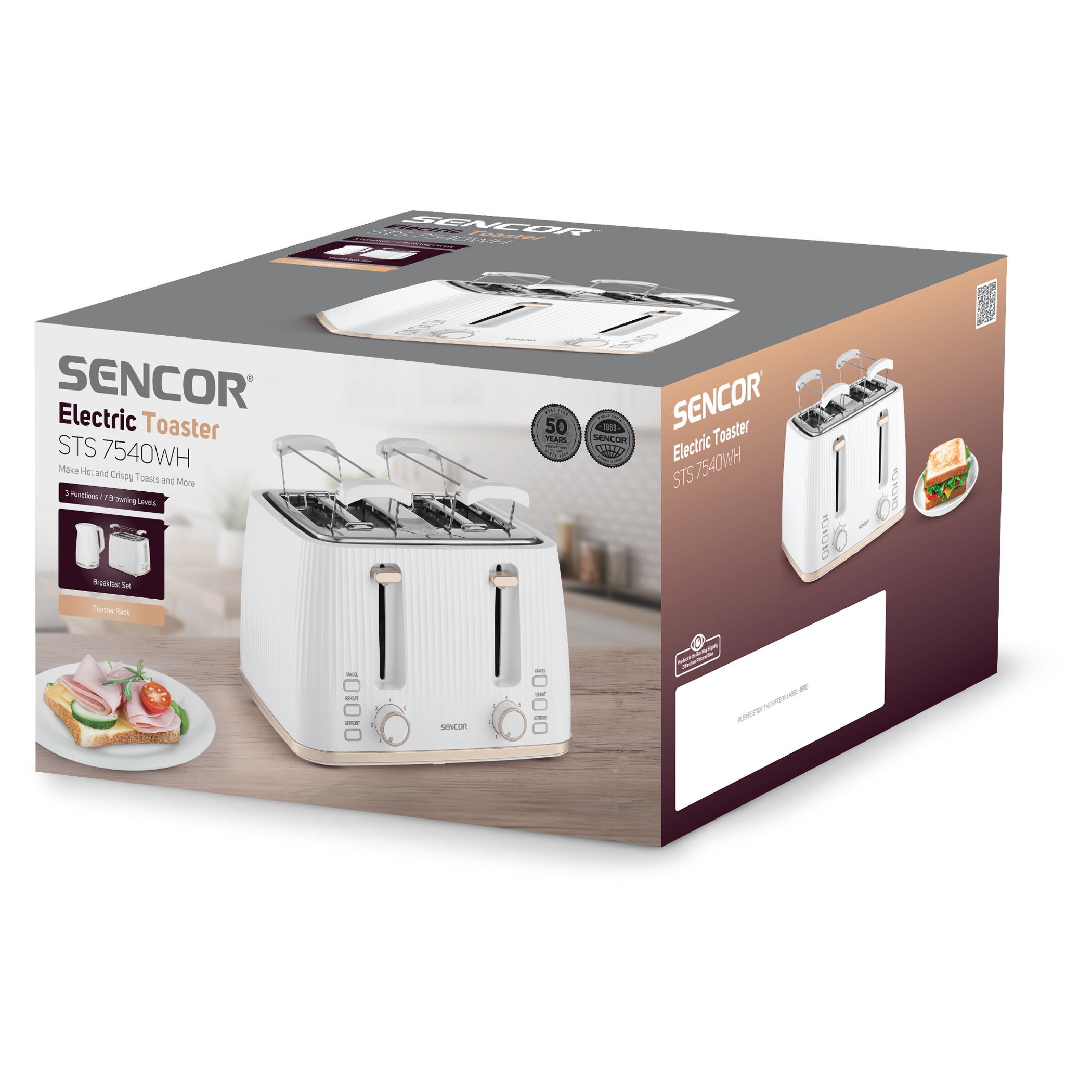 S topinkovačem si snadno připravíte topinky přesně podle vašich preferencí s pomocí 7 úrovní intenzity opékání a 4 opékacím otvorům. Pro opékání různých druhů pečiva můžete využít rozpékací mřížky. Díky 3 funkcím pečivo ohřeje, opeče i rozmrazí. V případě potřeby máte k dispozici funkci okamžitého ukončení provozu.
