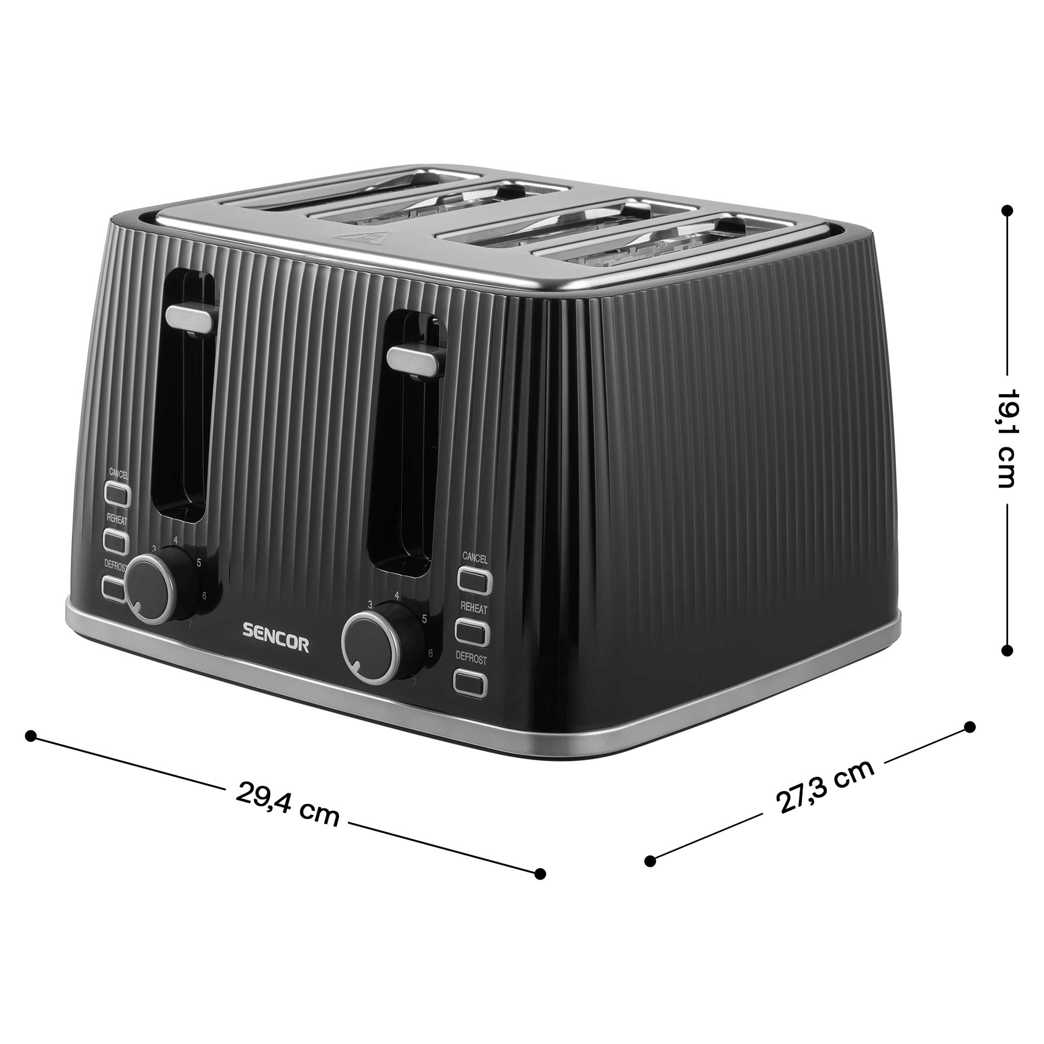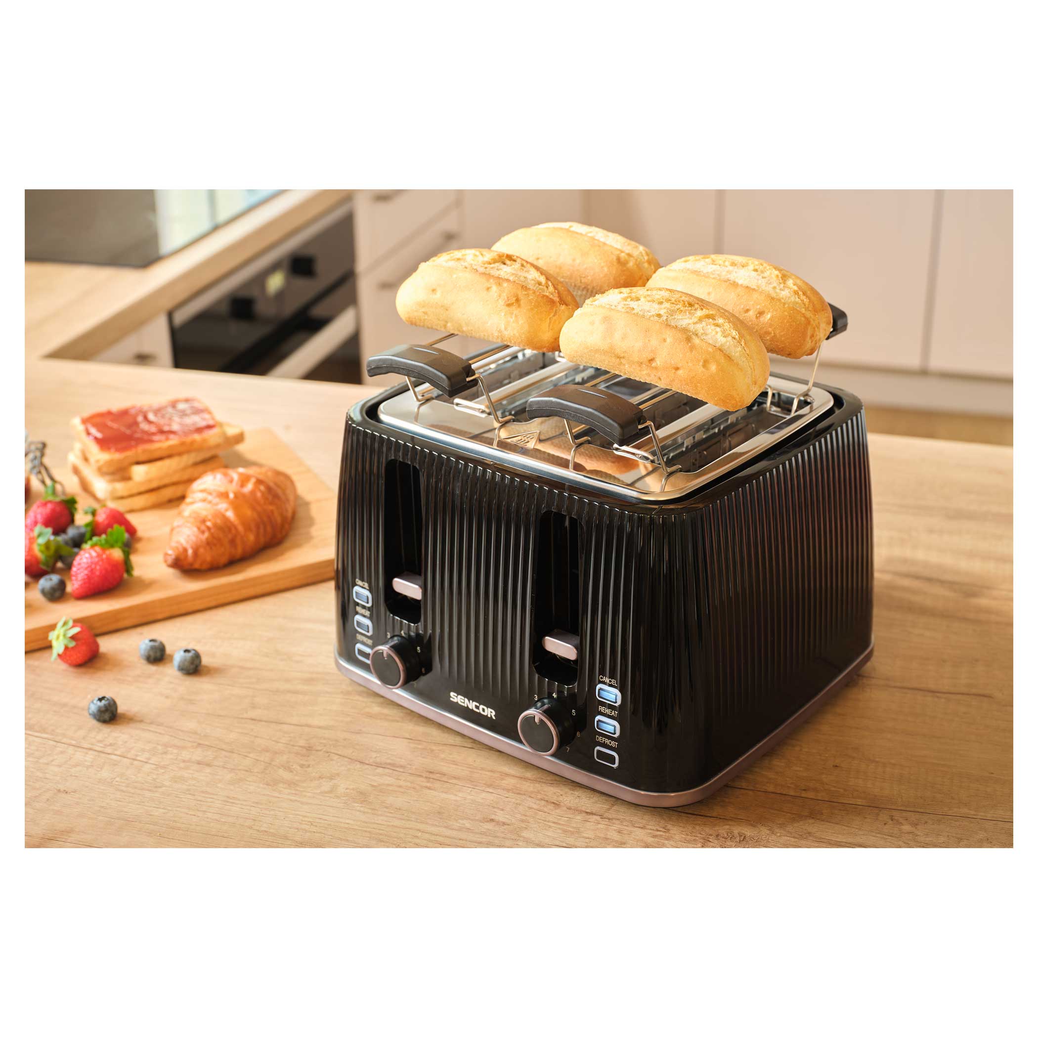 Topinkovač STS 7541BK disponuje 4 opékacími otvory a 7 úrovněmi intenzity opečení pro přípravu topinek tak, jak je máte rádi. S rozpékacími mřížkami můžete opékat i větší pečivo. Díky 3 funkcím si zvolíte, zda chcete pečivo opékat, ohřívat či rozmrazovat, přičemž kdykoli máte možnost využít funkci okamžitého ukončení provozu.
