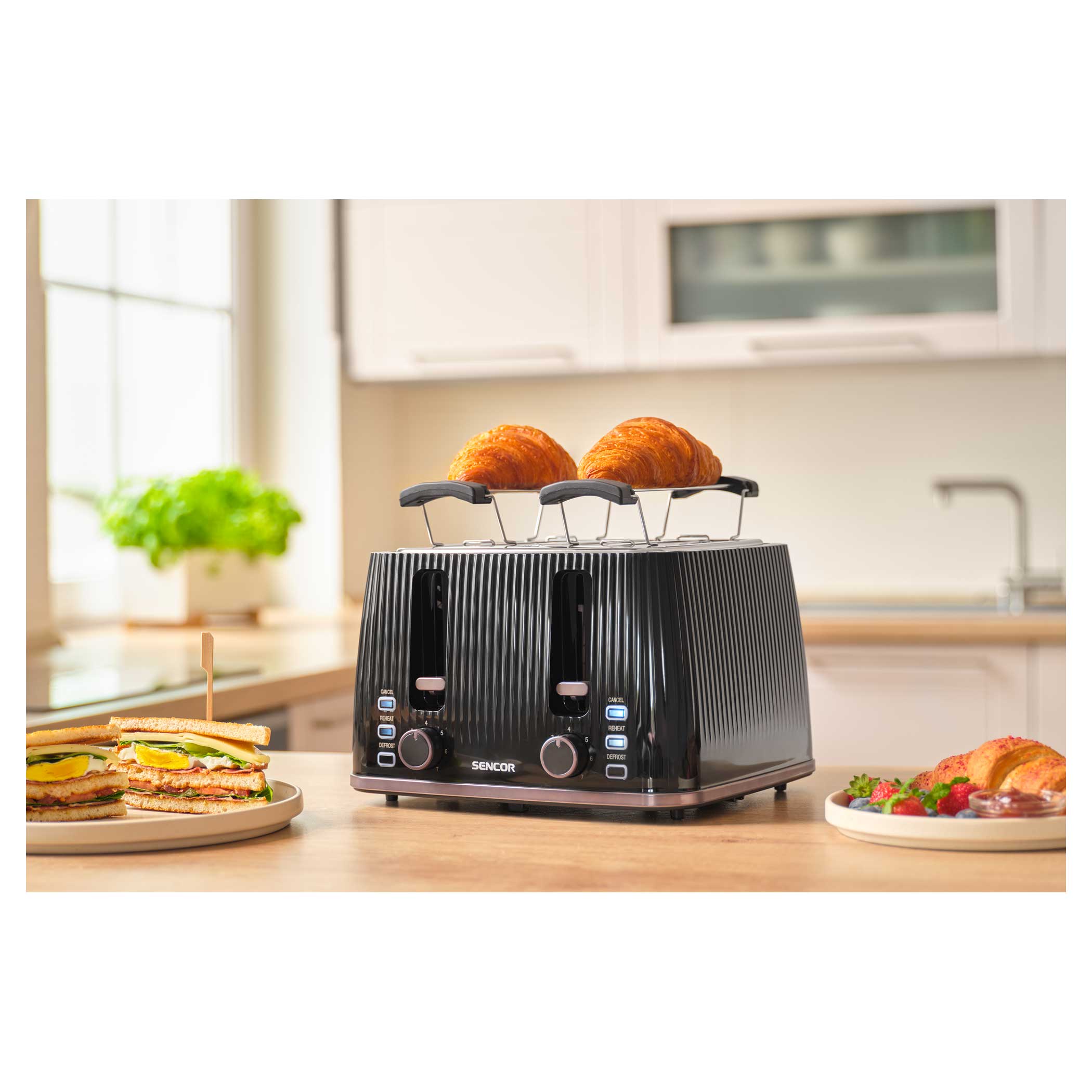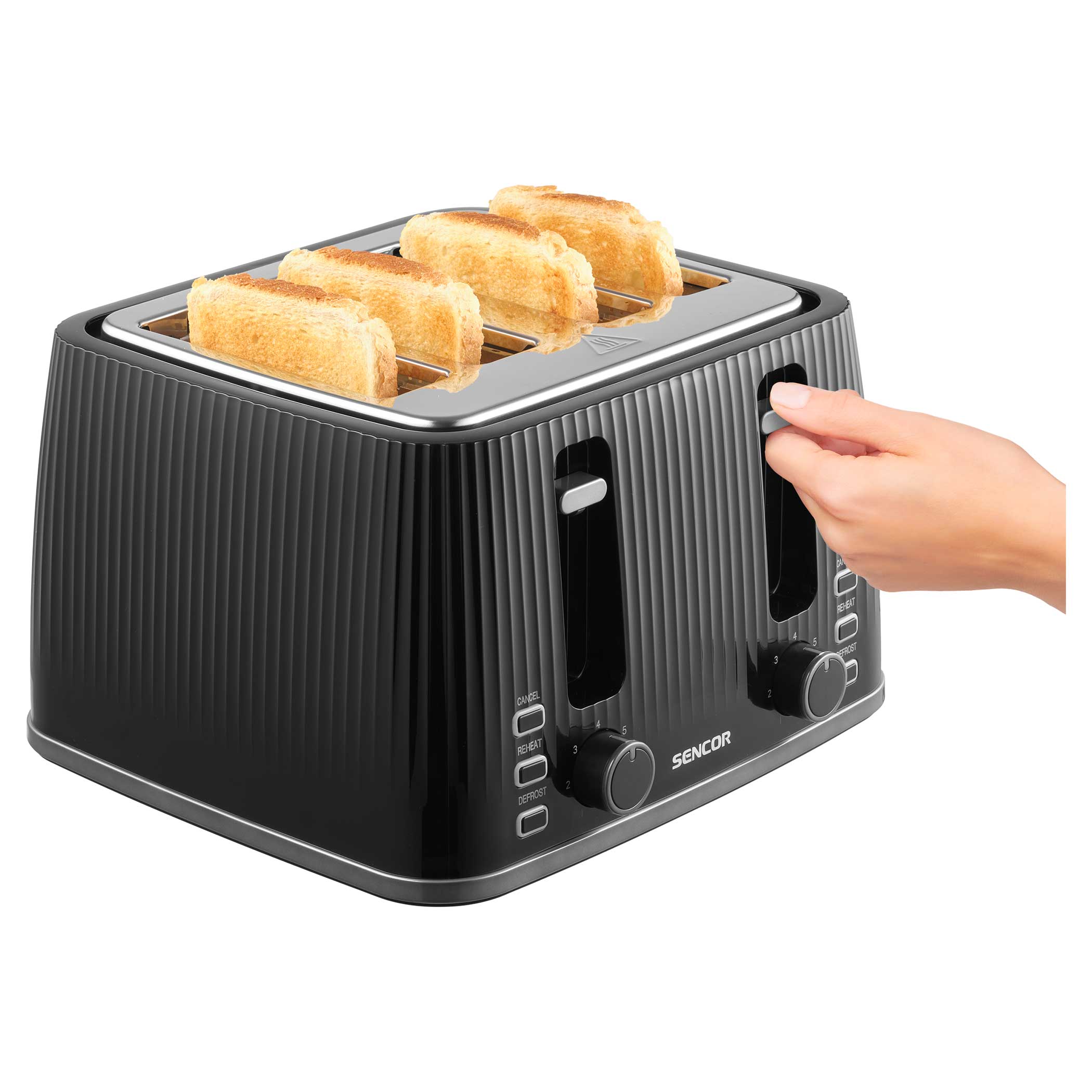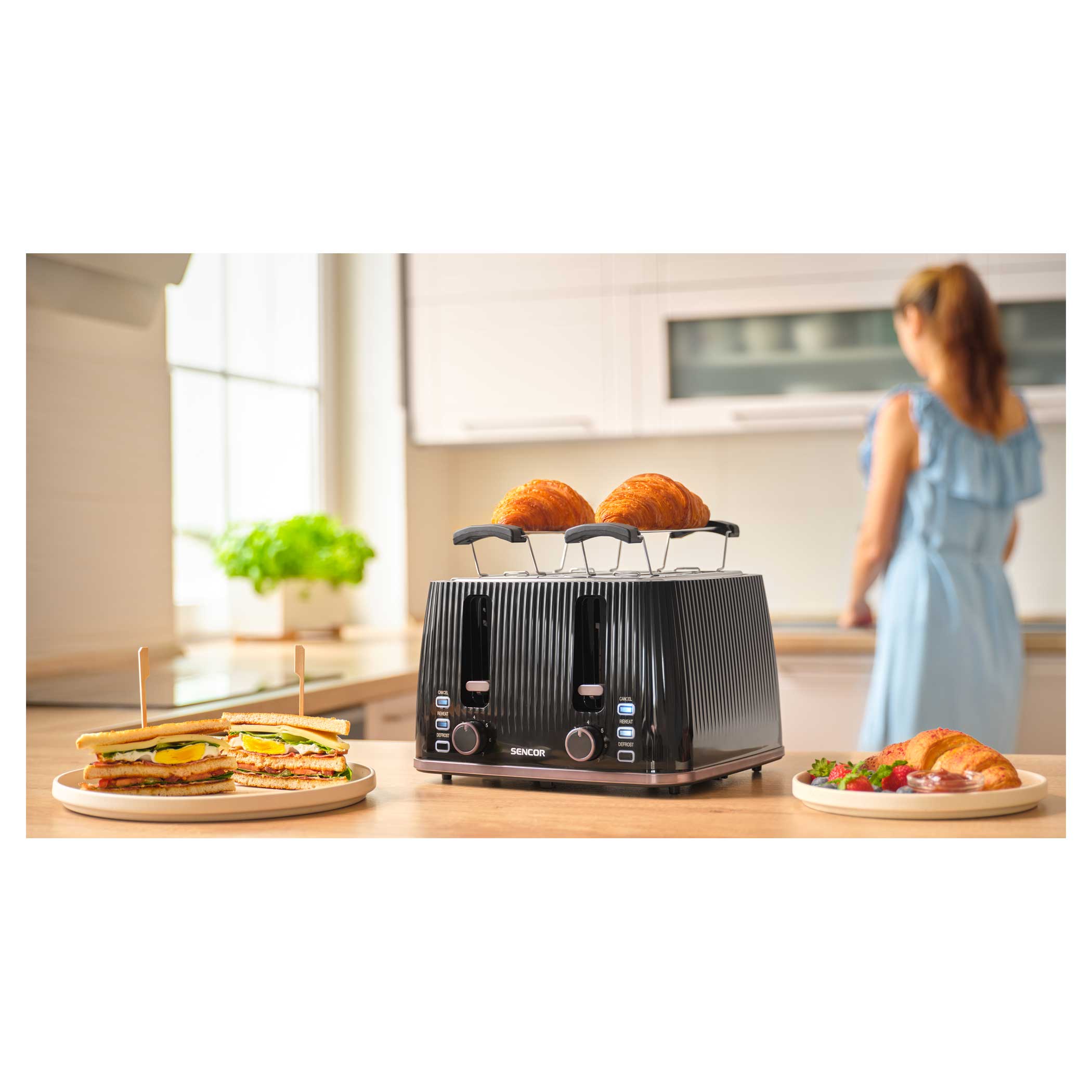 Topinkovač STS 7541BK snadno připraví opečené toasty, rozpečené housky a také rozmrazí pečivo. Zvládne tepelně upravit jakýkoli druh pečiva tak, aby byl voňavý a křupavý jako právě přinesený z pekárny.