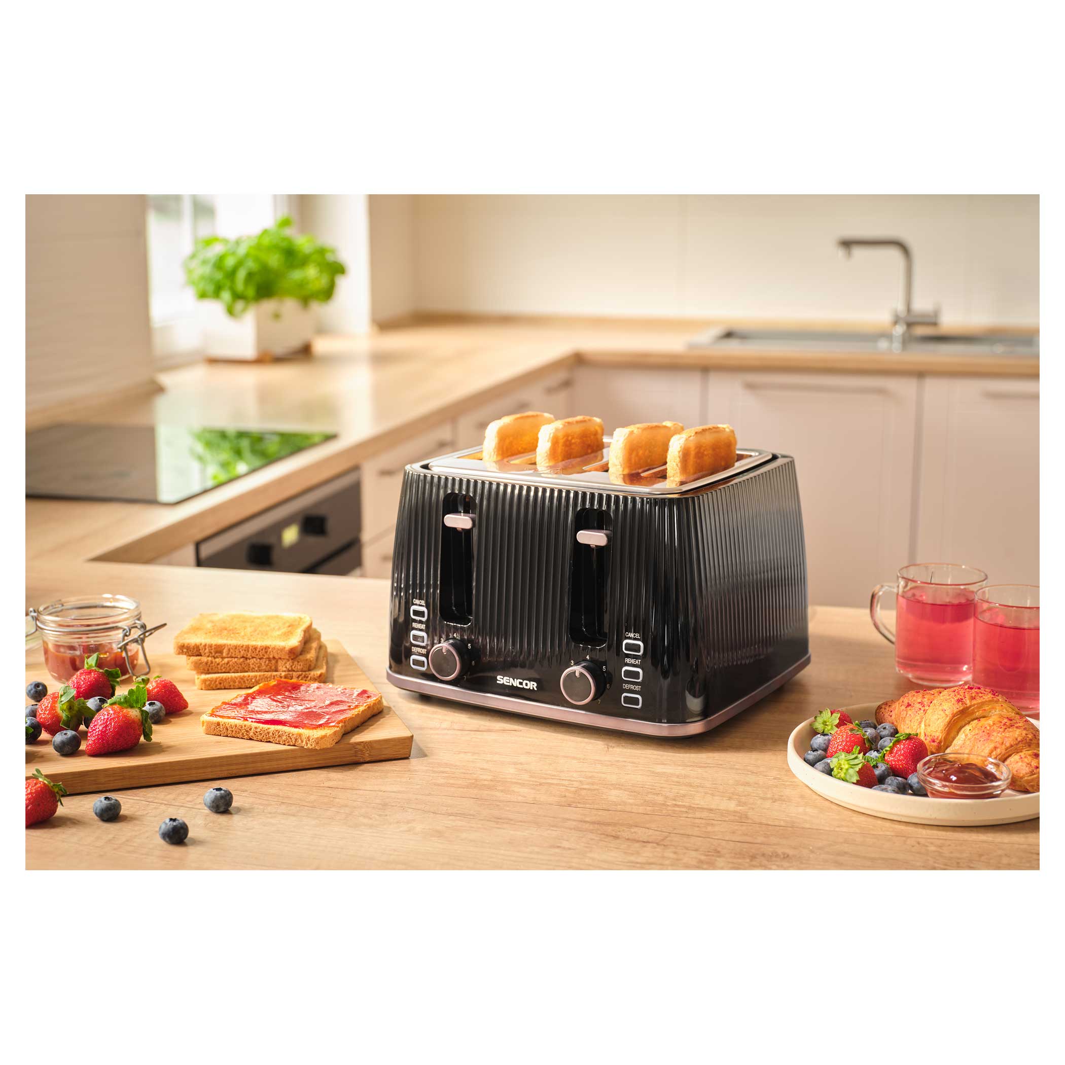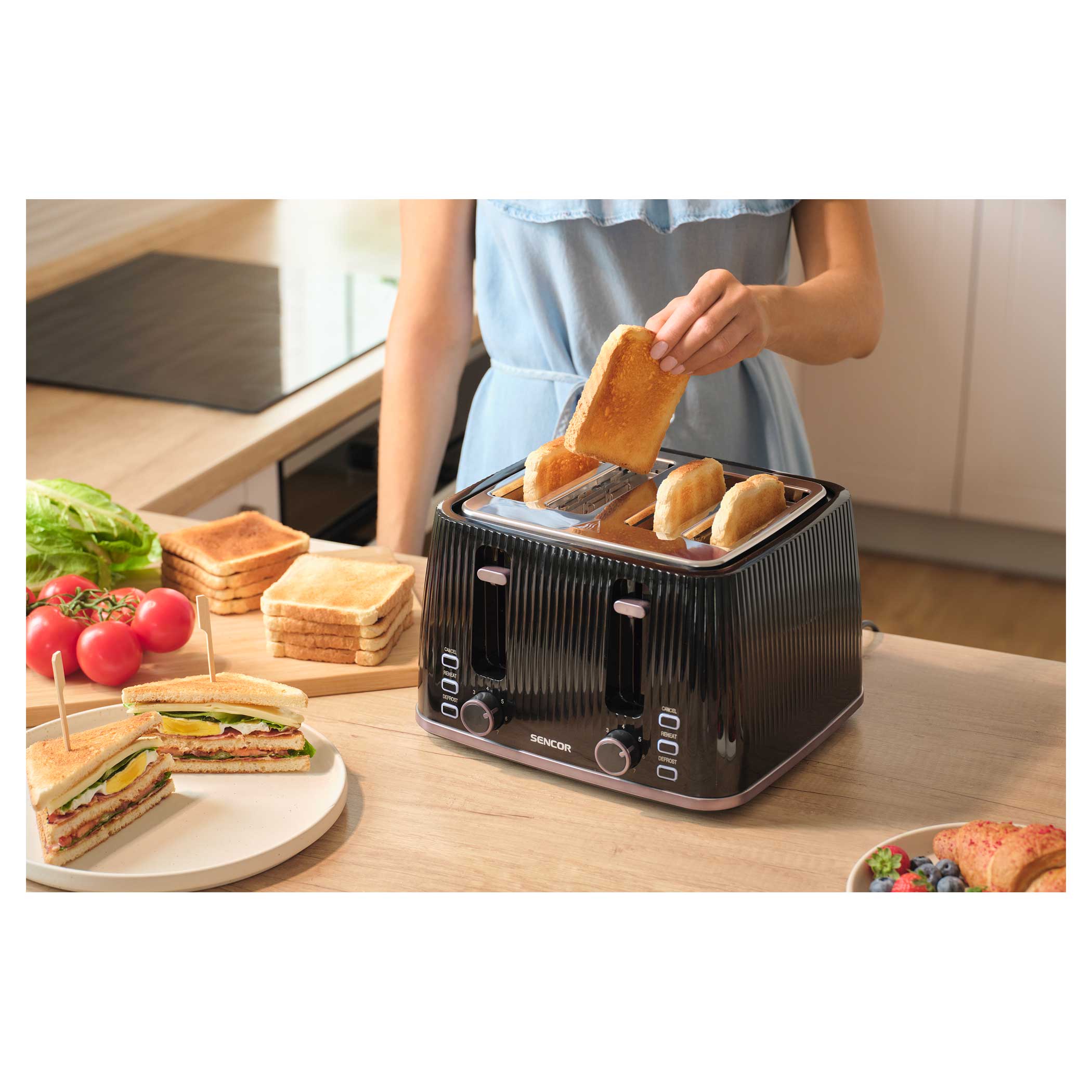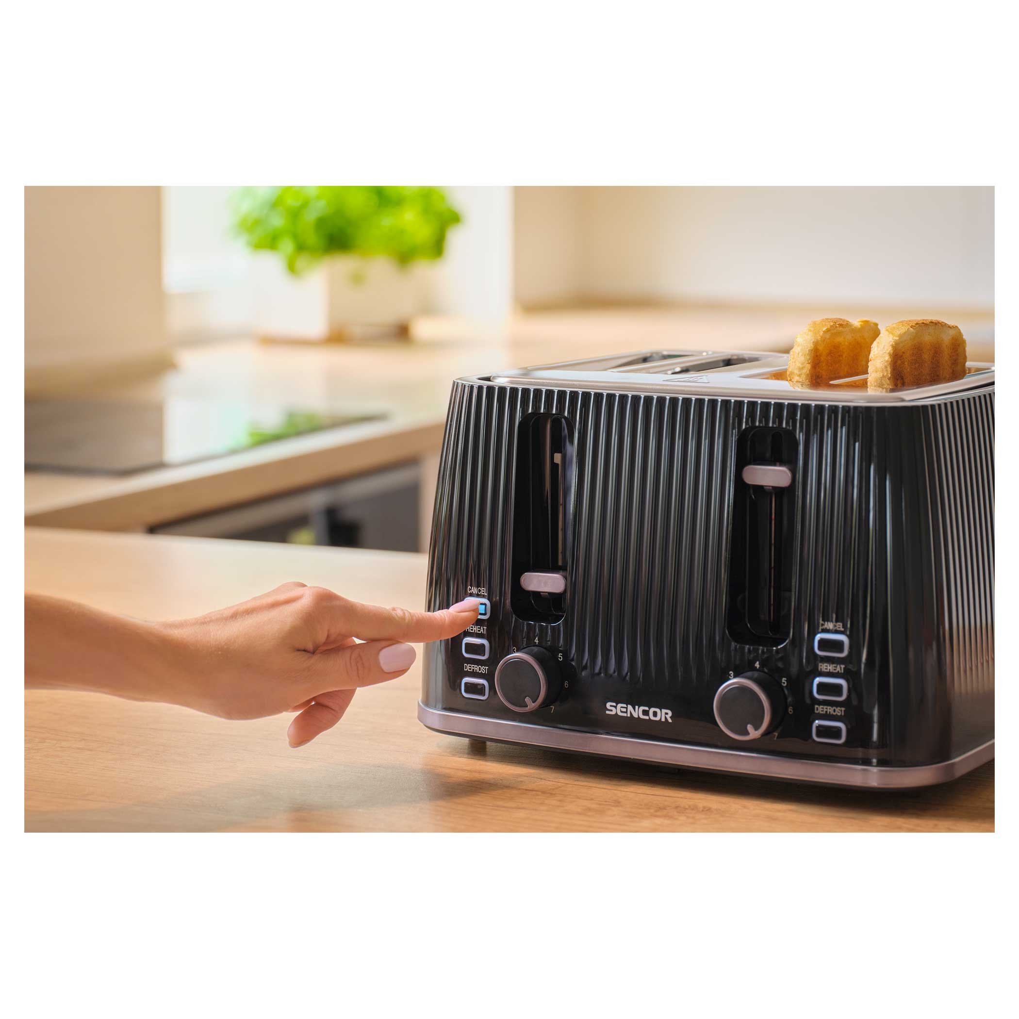 Topinkovač STS 7541BK snadno připraví opečené toasty, rozpečené housky a také rozmrazí pečivo. Zvládne tepelně upravit jakýkoli druh pečiva tak, aby byl voňavý a křupavý jako právě přinesený z pekárny.