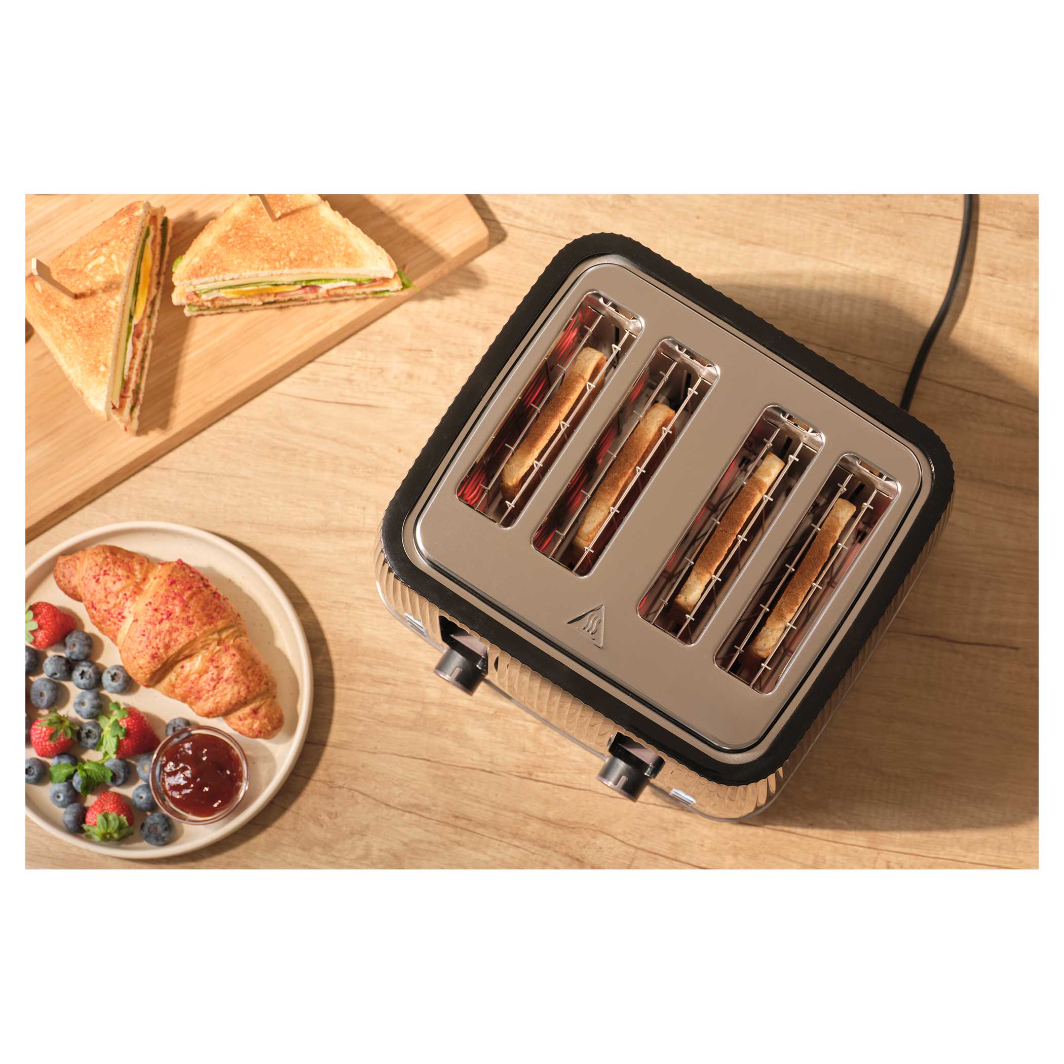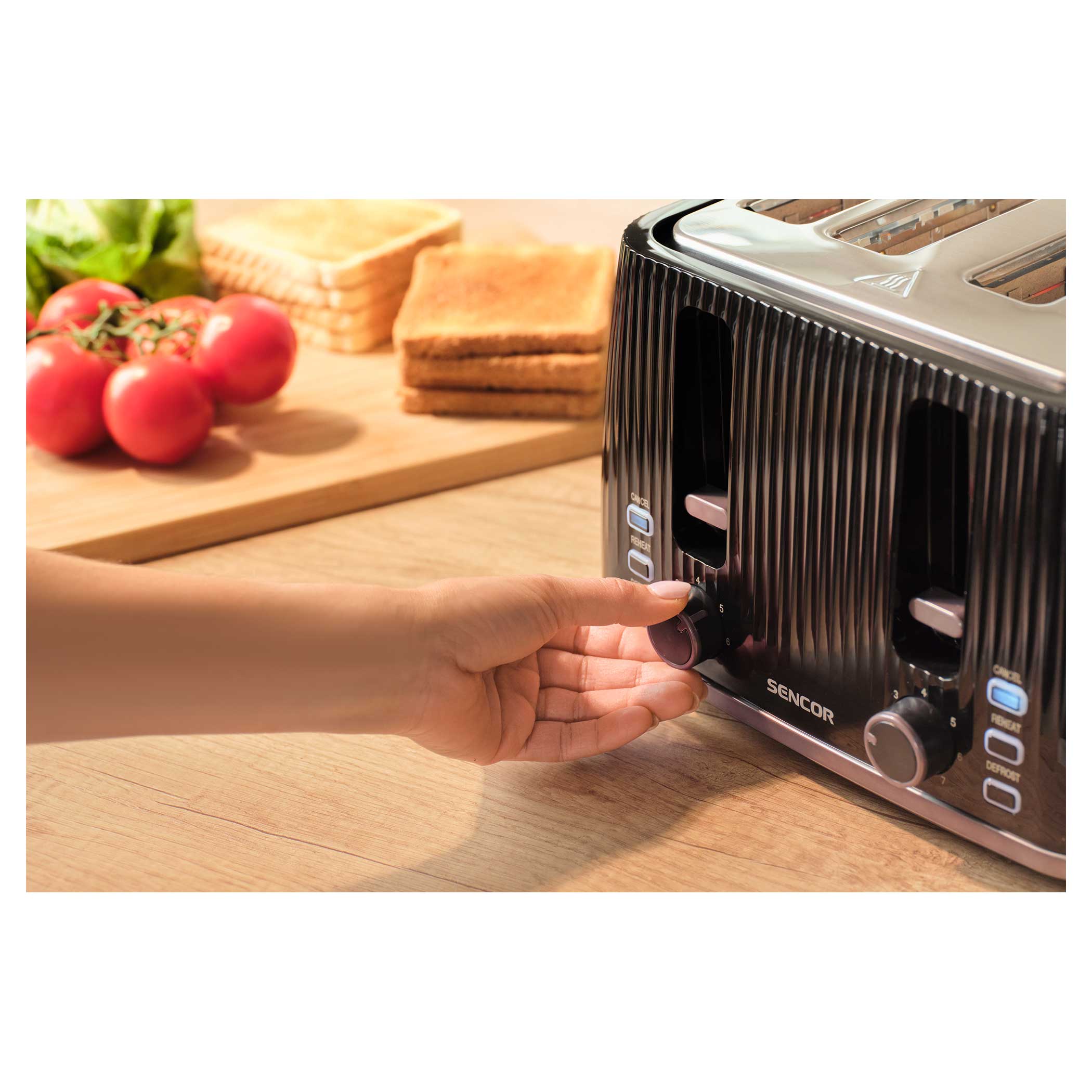 Díky 2 otočným ovladačům můžete pohodlně nastavovat úroveň opékání a připravit si až 4 ks pečiva dohromady.