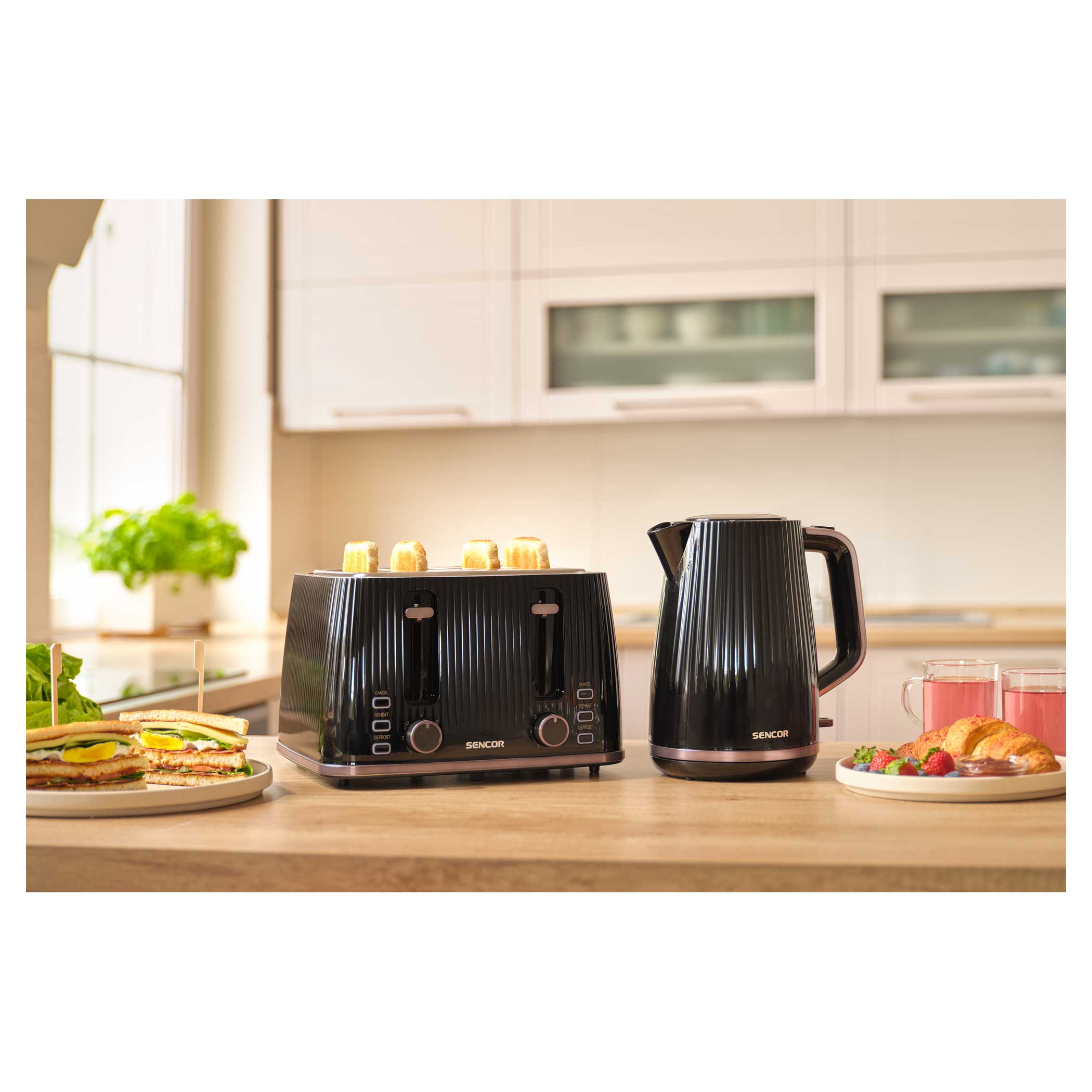 Pokud si chcete vybavit kuchyň spotřebiči v jednotném stylu, je snídaňový set 2 topinkovačů a konvice tím pravým pro vás. Designové spotřebiče mají elegantní vzhled, který se hodí do každého moderního interiéru.