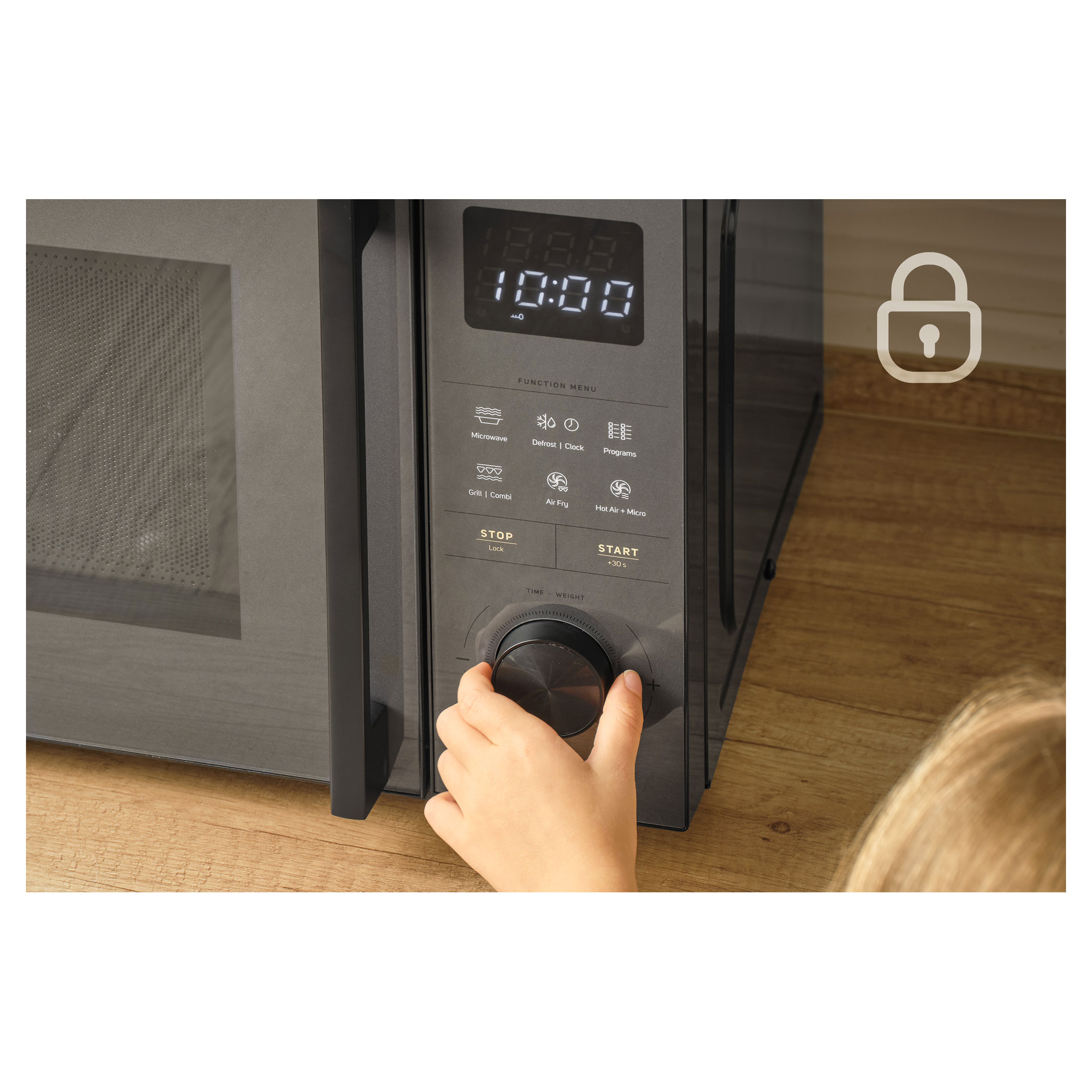 Nechtěnému spuštění či ovládání mikrovlnné trouby dětmi zabráníte aktivováním dětské pojistky, která zablokuje všechny ovládací prvky trouby.