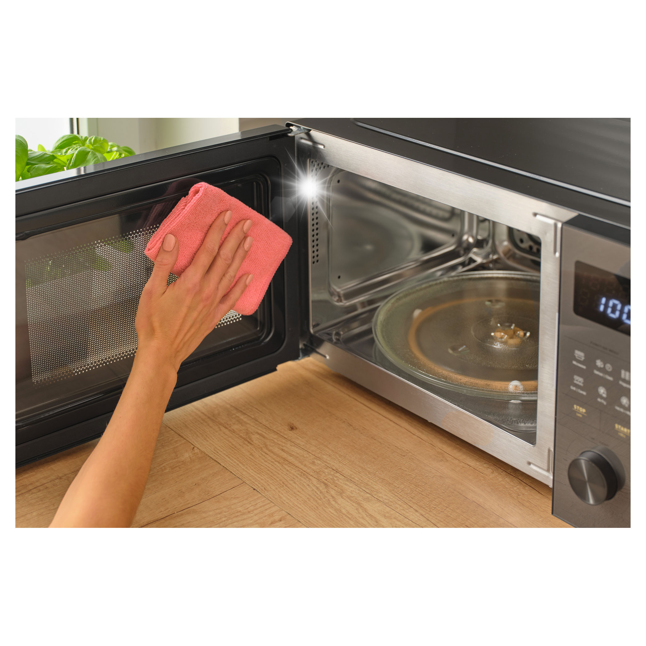 LED osvětlení vám zajistí přehled o stavu připravovaného pokrmu. Světlo se automaticky zhasne po ukončení provozu nebo po 10 minutách od otevření dvířek v případě, že byste je zapomněli zavřít.