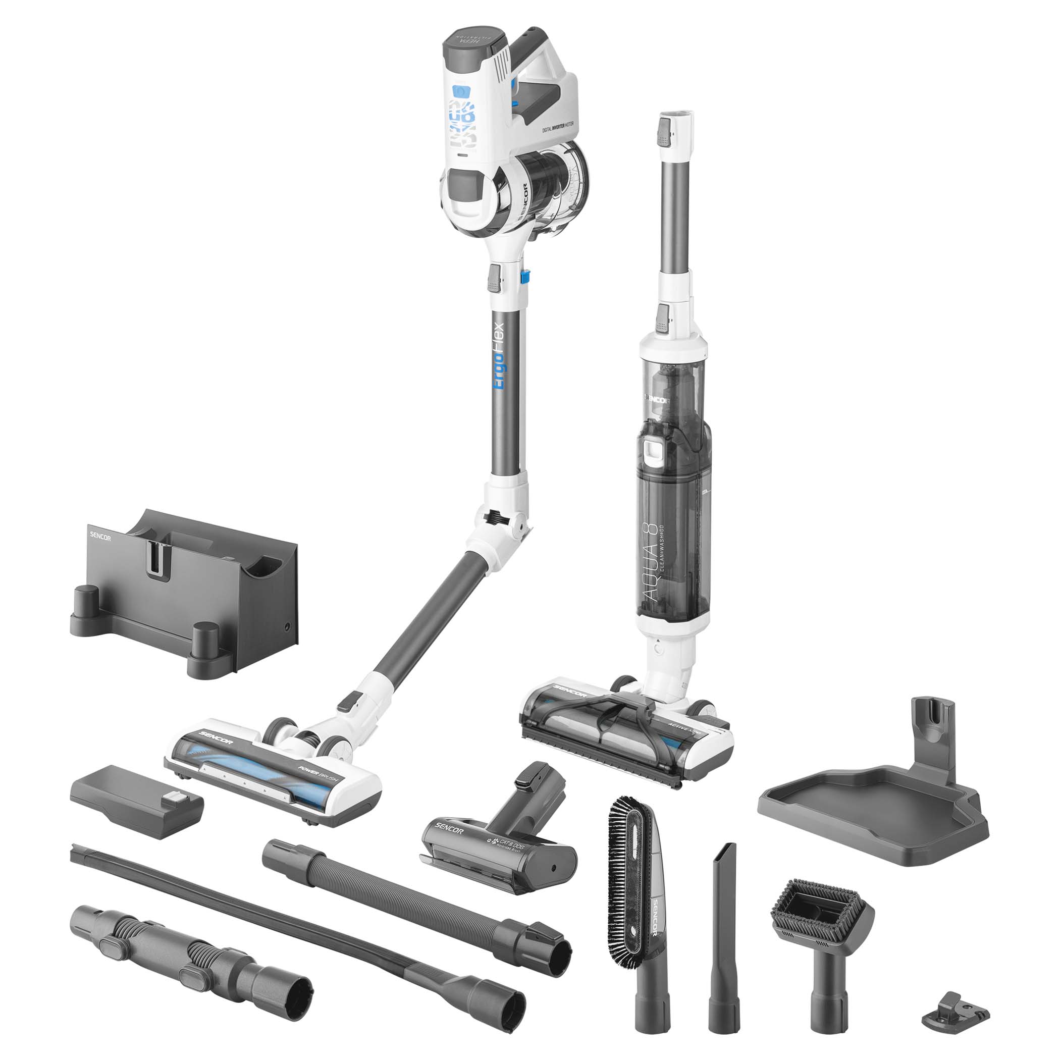 Prvním přístrojem je všestranný tyčový vysavač ERGO FLEX s nejrůznějšími nástavci, jaké si jen umíte představit. Druhým je pak revolučním pomocníkem při mytí podlah, který obstará každodenní vytírání. Když se na podlahu rozleje polévka nebo káva, není to vůbec žádný problém. Systém AQUA8 nepořádek prostě vysaje a uklidí. Majitelé domácích mazlíčků ocení motorizovaný kartáč na ruční jednotku Cat&Dog Mini, s nímž si hravě poradí s chlupy na čalouněném nábytku. Vysavač nabízí perfektní ovladatelnost a manévrovatelnost díky 180° otočné hlavici, nízké hmotnosti i lehké trubici.