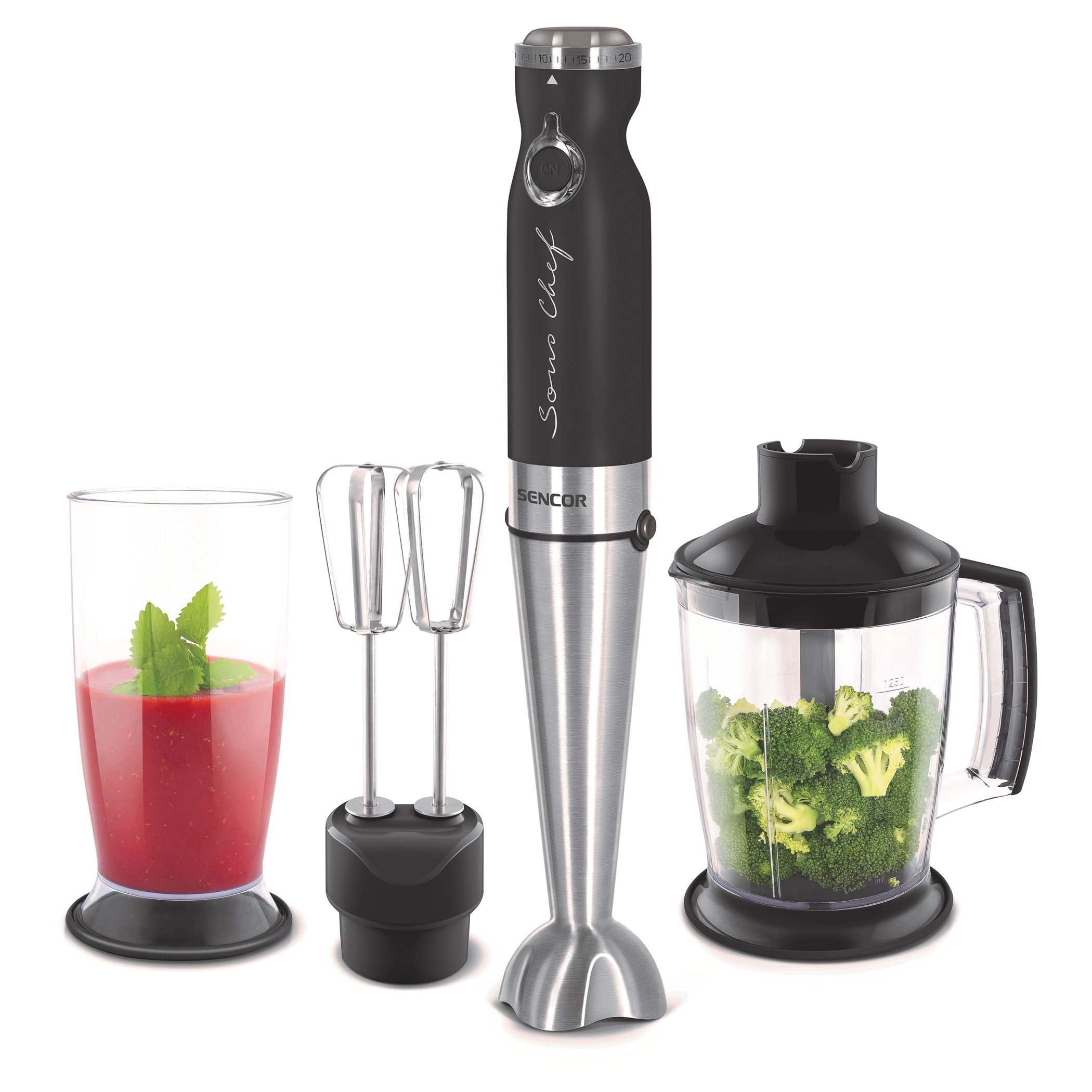 - Nerezový nástavec použitelný i pro mixování horkých pokrmů
